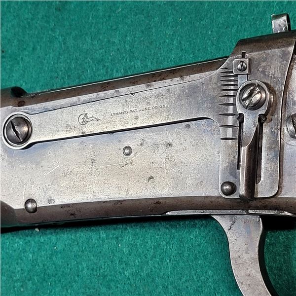 The Lyman 21 (Climbing Lyman) rear sight is complete and may be original to this rifle. Underneath the sight is the original blueing.