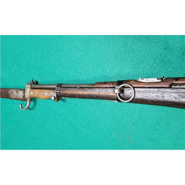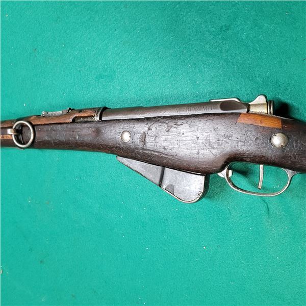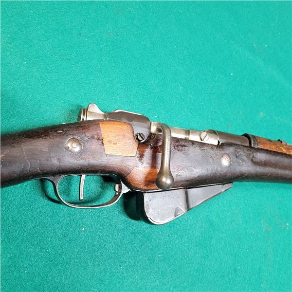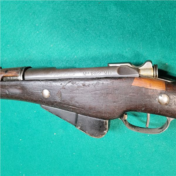 The Carbine was chambered in the 8mm Lebel and used by the French Army from 1890"s to WWII. The barrel is 18" Long.