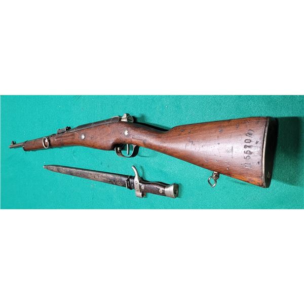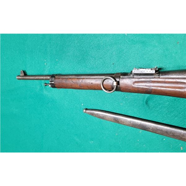 The Carbine was chambered in the 8mm Lebel and used by the French Army from 1890"s to WWII. The barrel is 18" Long.