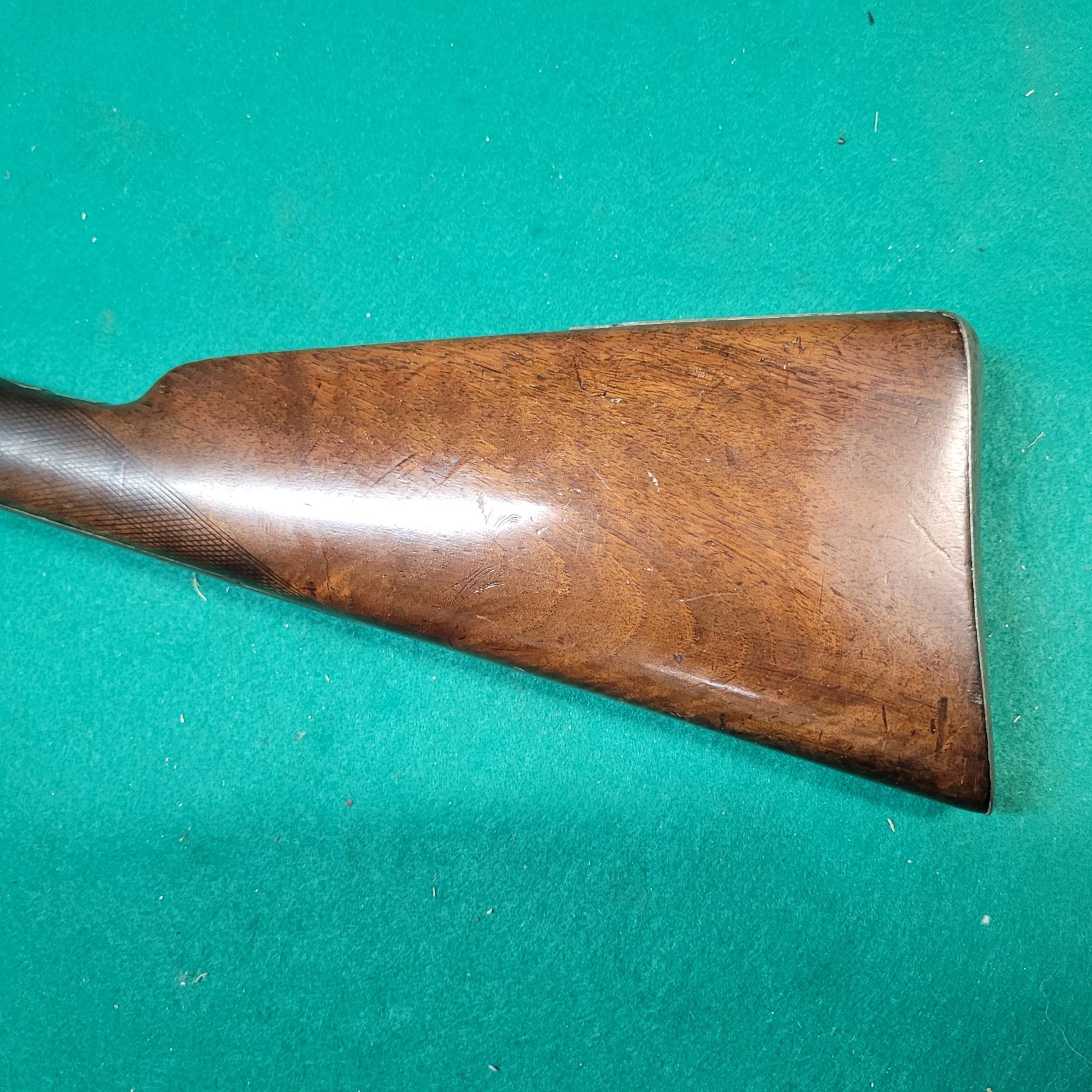 Walnut Stock is in good shape with NO cracks. Wood is worn around the metal.