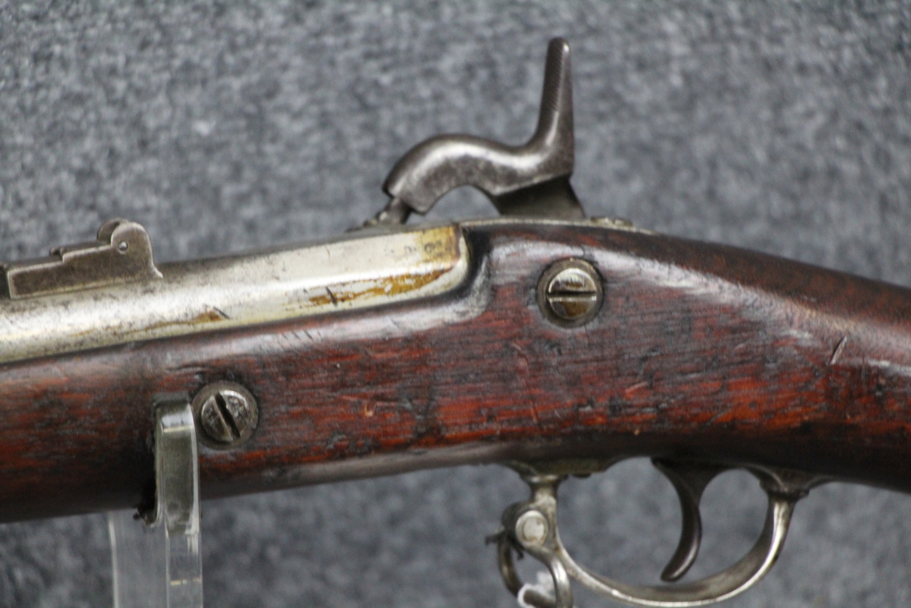 No rust. Lots of patina. Lock works. Appears issue complete. Bore plug.