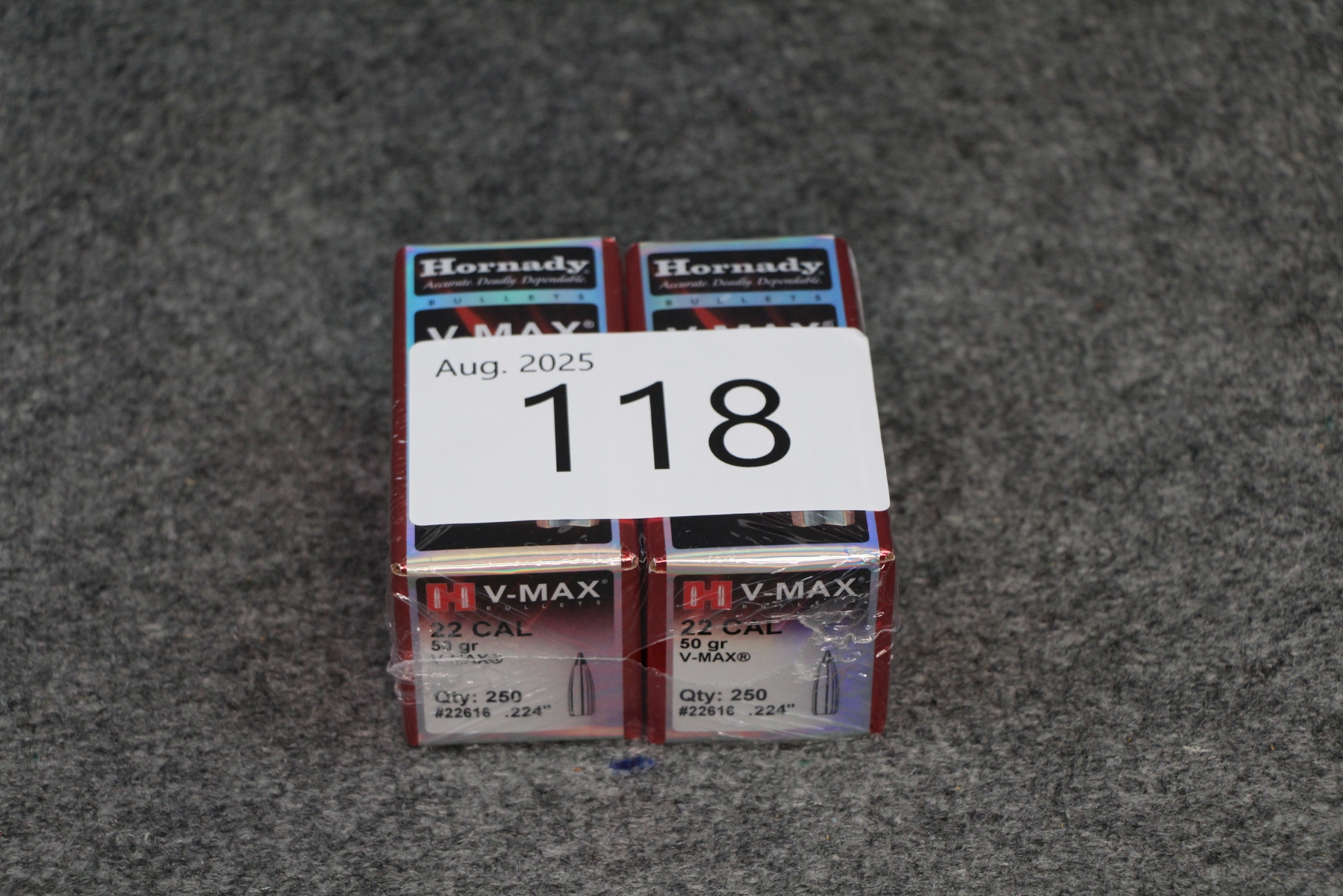 2 boxes x 250 Hornady VMax 50 gr.