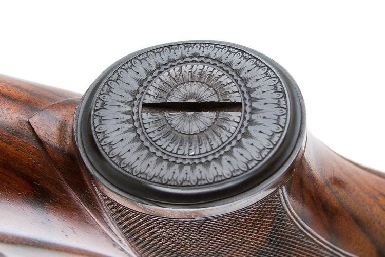 • Custom trapdoor grip cap, artistically engraved with a rosette pattern—every detail carefully considered.