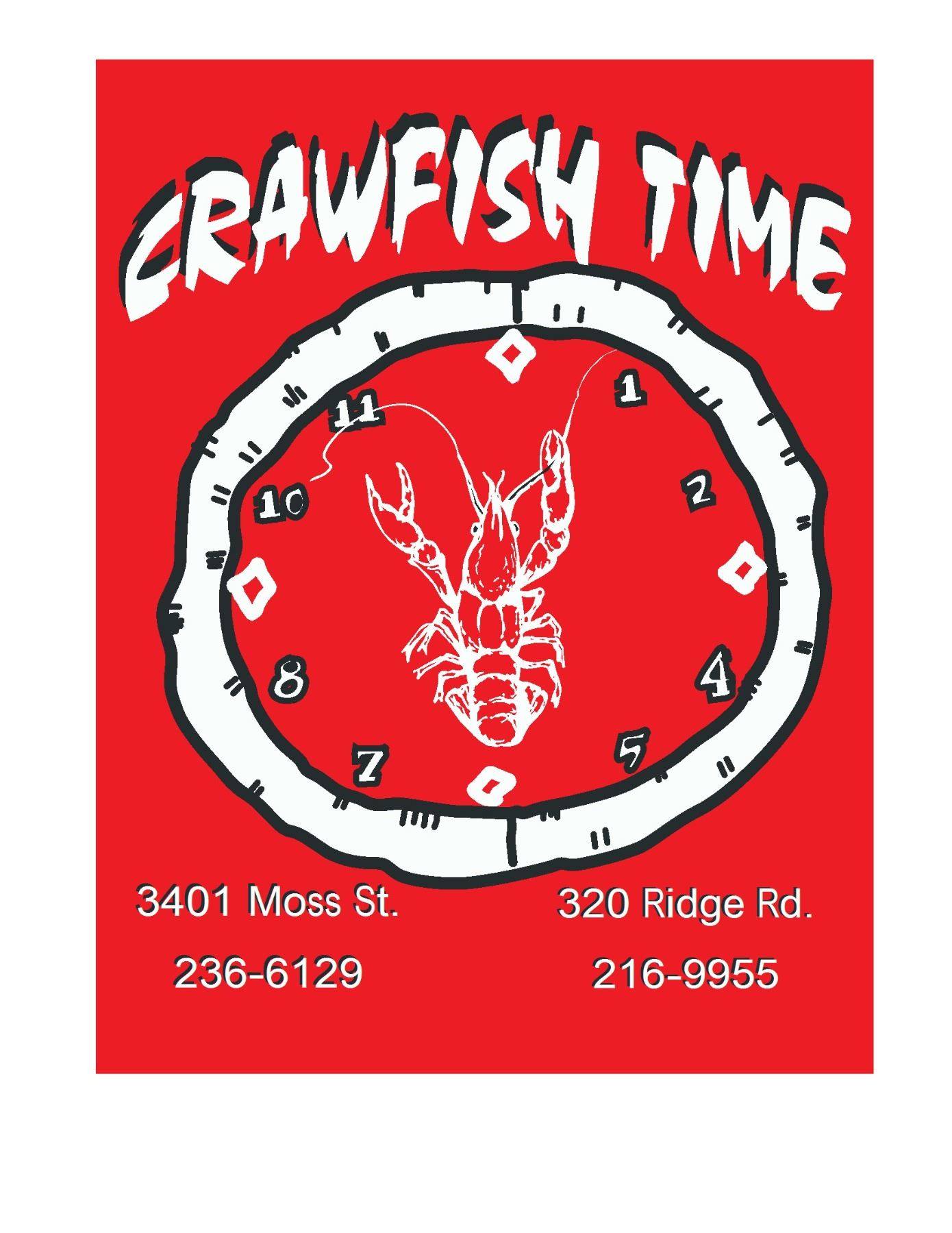 Gather your friends, family, or customers and co-workers for a fully catered crawfish boil. Dates to be agreed upon and at a location of your choice. Crawfish Time on Ridge and Moss and David Meagher will show up, set up, boil crawfish with your favorite veggies, serve them up and all you have to do is enjoy yourself. Drink are not included. When: After Easter 2026 and before May 31, 2026