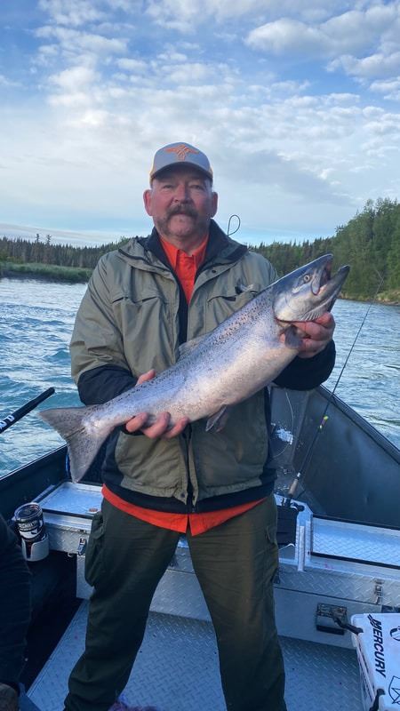 This trip is for Two Anglers and includes 7 days and 6 nights of great fishing on the world famous Kenai River where you will catch an abundance of Salmon. You can also book excursions such as ocean fishing out of Seward or Homer for Halibut, Ling Cod, Sea Bass, Yellow Eye and wildlife viewing. Fly-out excursions to Kustatan River, Wolverine or Crescent Lakes, which have great Bear viewing, can be booked for you at an additional fee. Relax each evening at the lodge’s covered outdoor fire pit or from the elevated deck overlooking the river. Each Angler will enjoy an all-inclusive fishing trip with Chef prepared delectable cuisine. This awesome fishing trip also includes professional guides, all fishing tackle, round trip transportation to and from Kenai Airport, as well as the processing, vacuum sealing and freezing of your catch to take home, along with insulated boxes for airplanes.