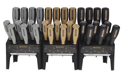 Experience unmatched convenience and organization in your workspace with the Wheeler 30 Piece Hex/Torx Benchtop Screwdriver Set. Engineered to be an all-in-one tool assortment, this comprehensive collection contains 10 SAE Hex, 10 Metric Hex and 10 Torx screwdrivers to cover a wide range of common fasteners, guaranteeing you have the right tool for the job. Features include color-coded handles and markings offering quick identification of each screwdriver type and size, ensuring you spend less time searching for the right tool. Textured, rubber over-molded handles fit comfortably in the hand, increasing grip while reducing hand strain. The black phosphate-coated shafts protect against rust and corrosion, giving you peace of mind that your tools will be long-lasting and look great on your bench for years to come. The sturdy benchtop stand ensures that your tools stay organized, preventing tool loss and time spent looking for misplaced tools. The versatile 3-piece modular stand not only keeps the tools organized but also detaches for ultimate portability.