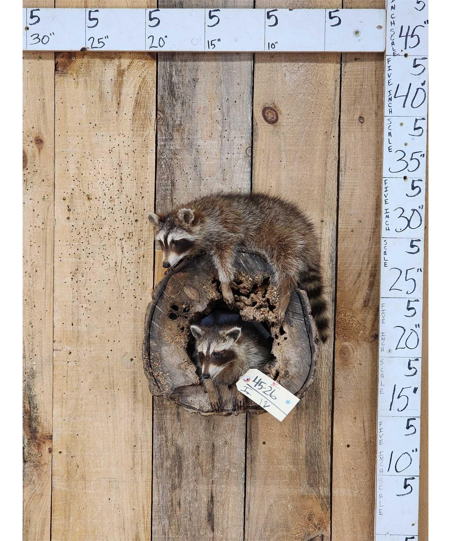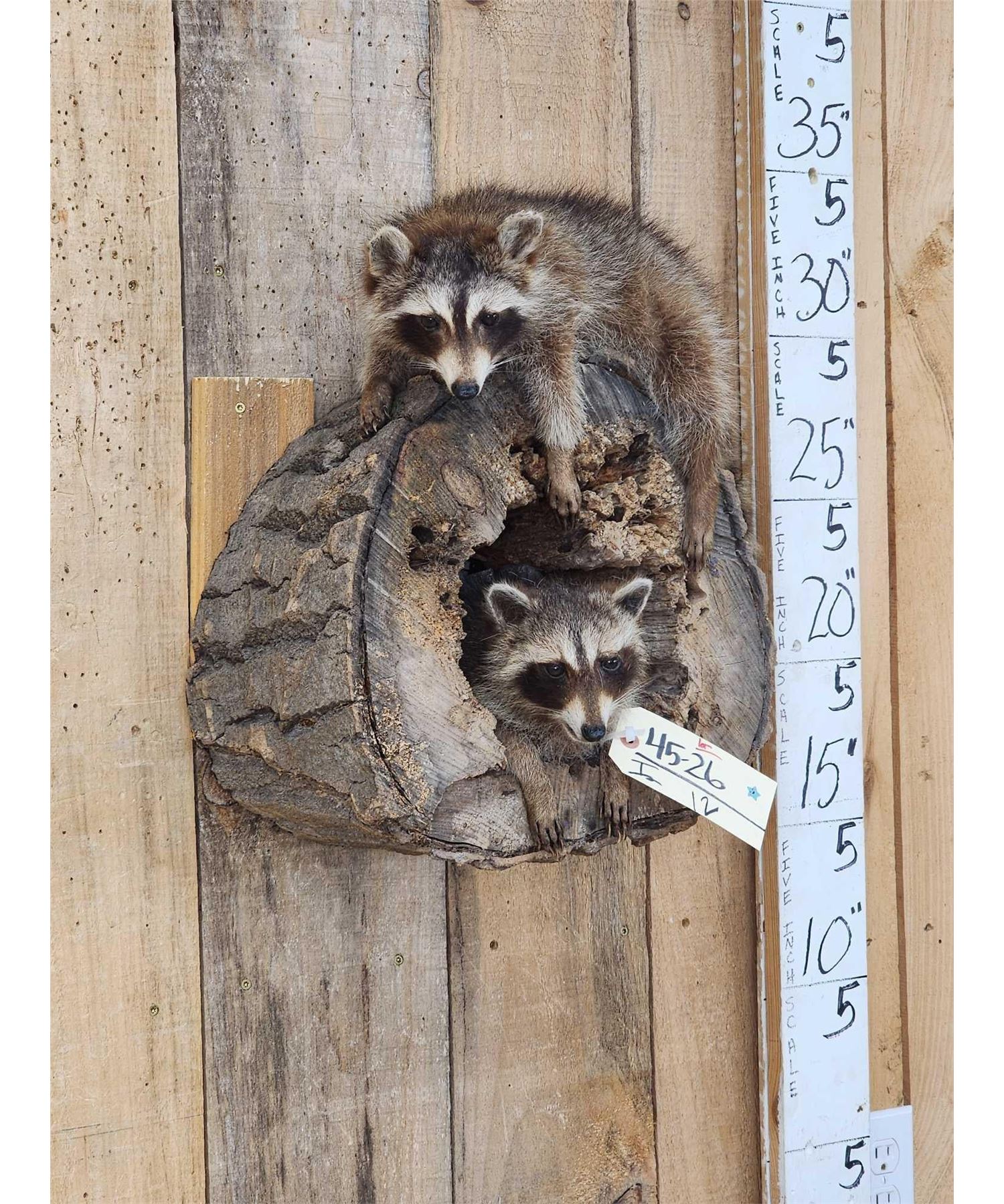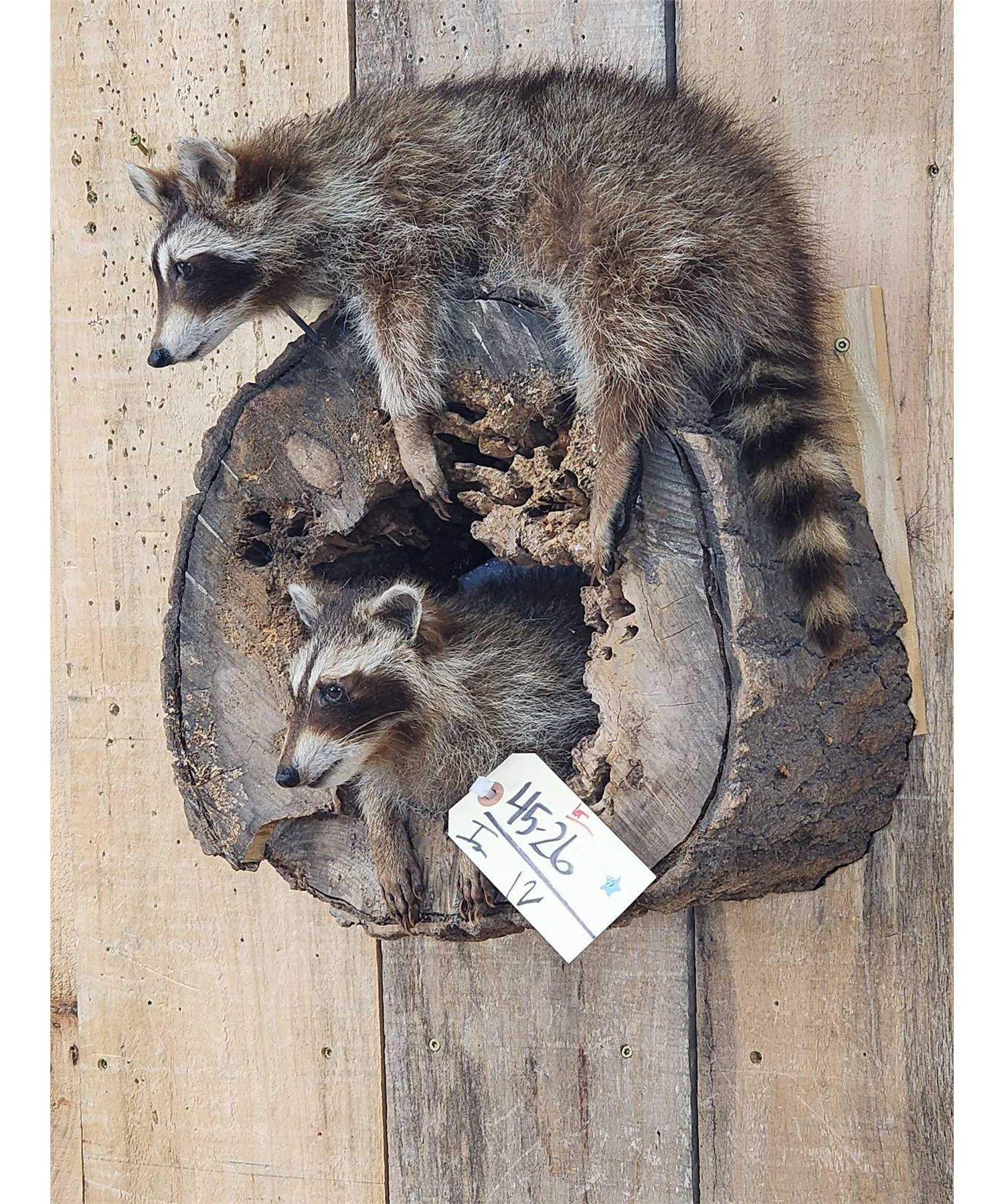 Lot 12 2 Baby Raccoons Playing On A Log Full Body Taxidermy Mount