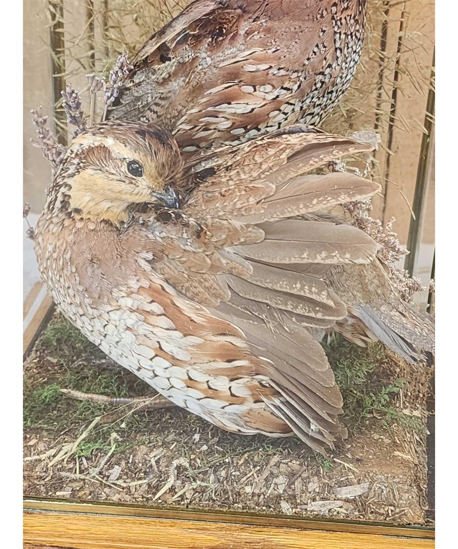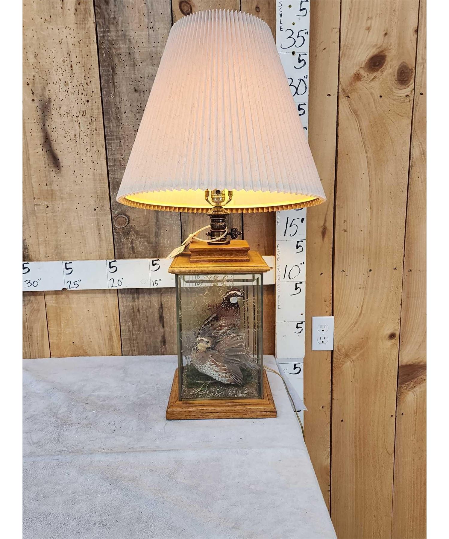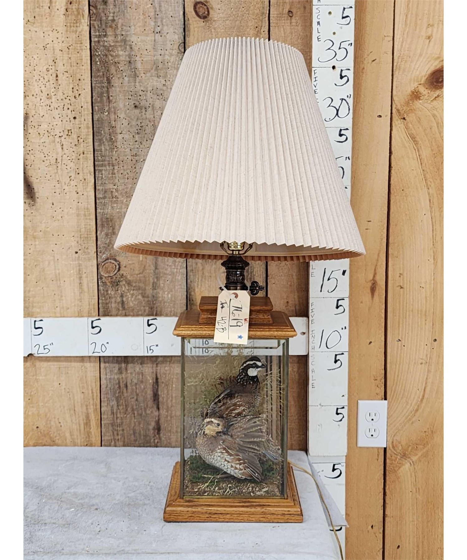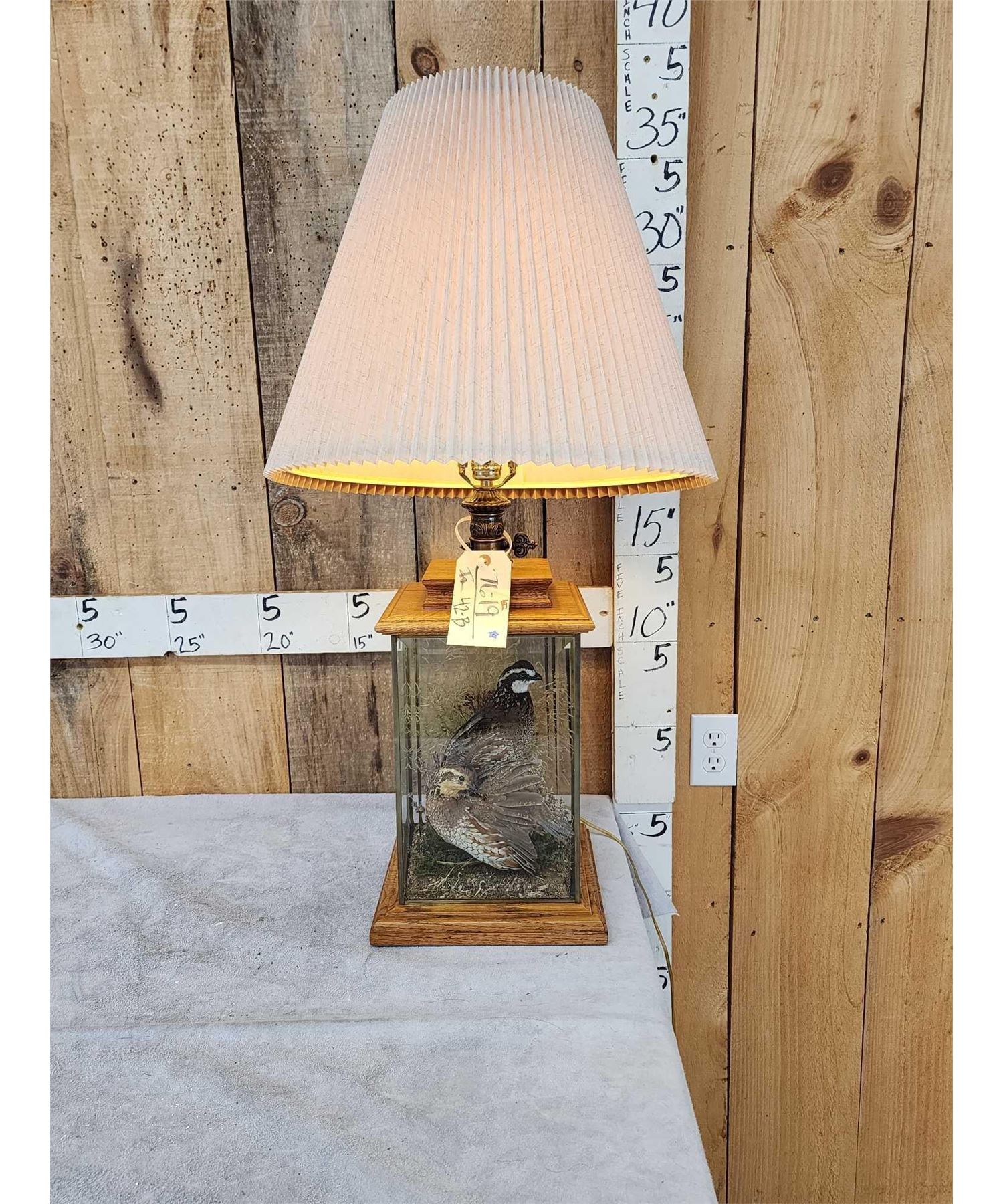 Lot 42B Male & Female Quail In A Table Top Lamp Bird Taxidermy