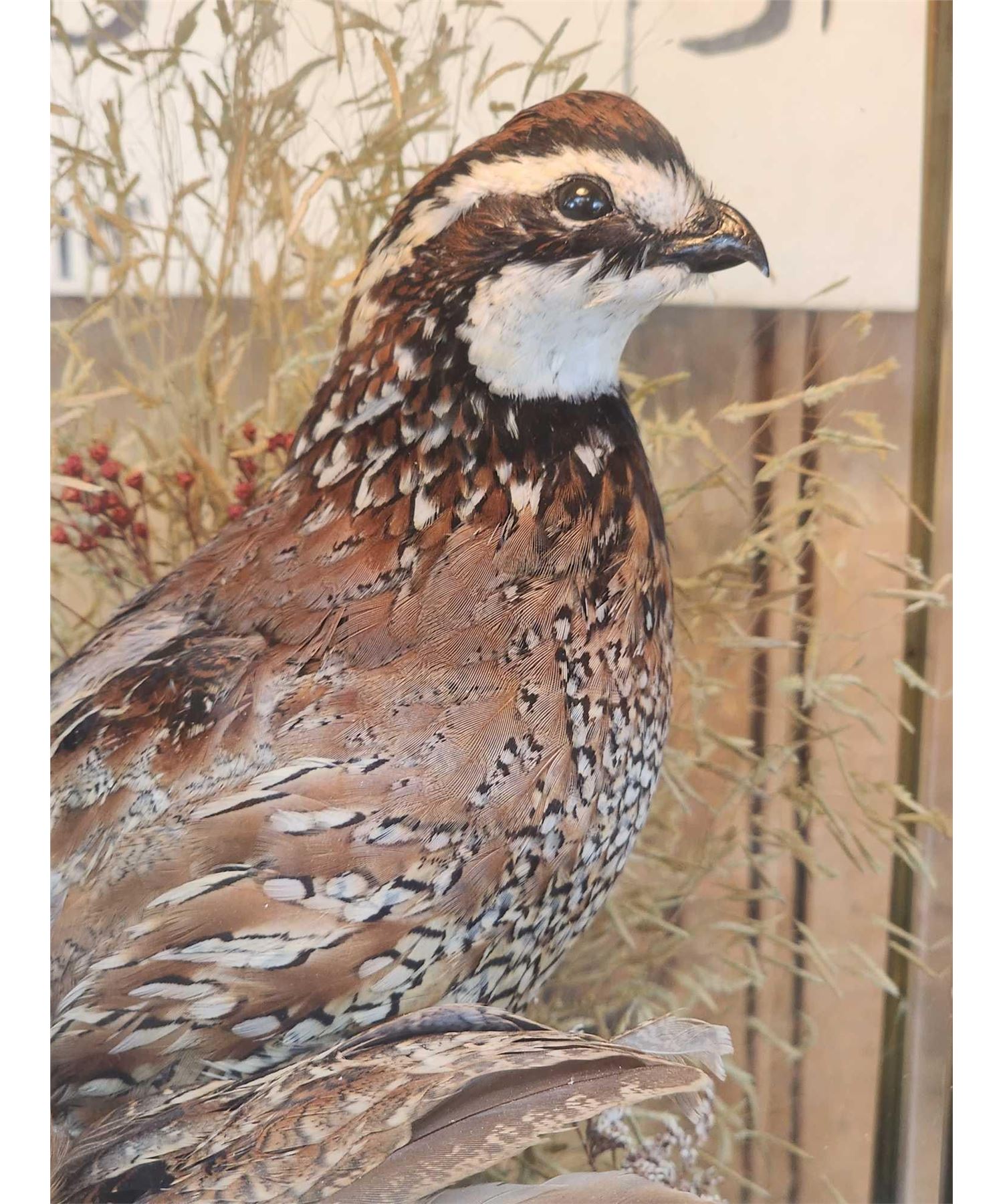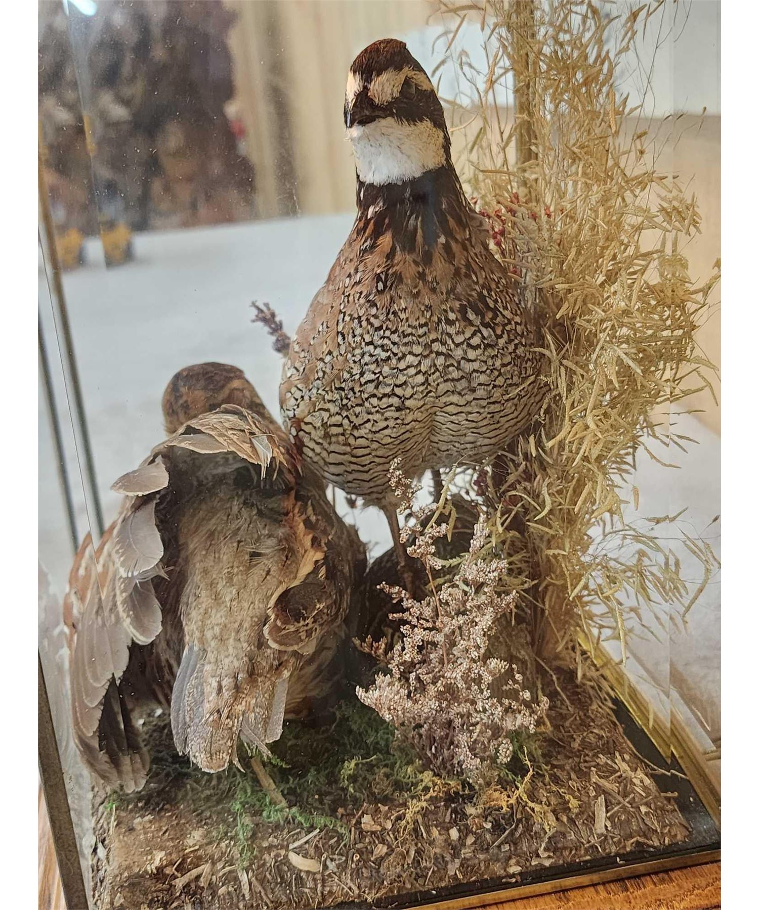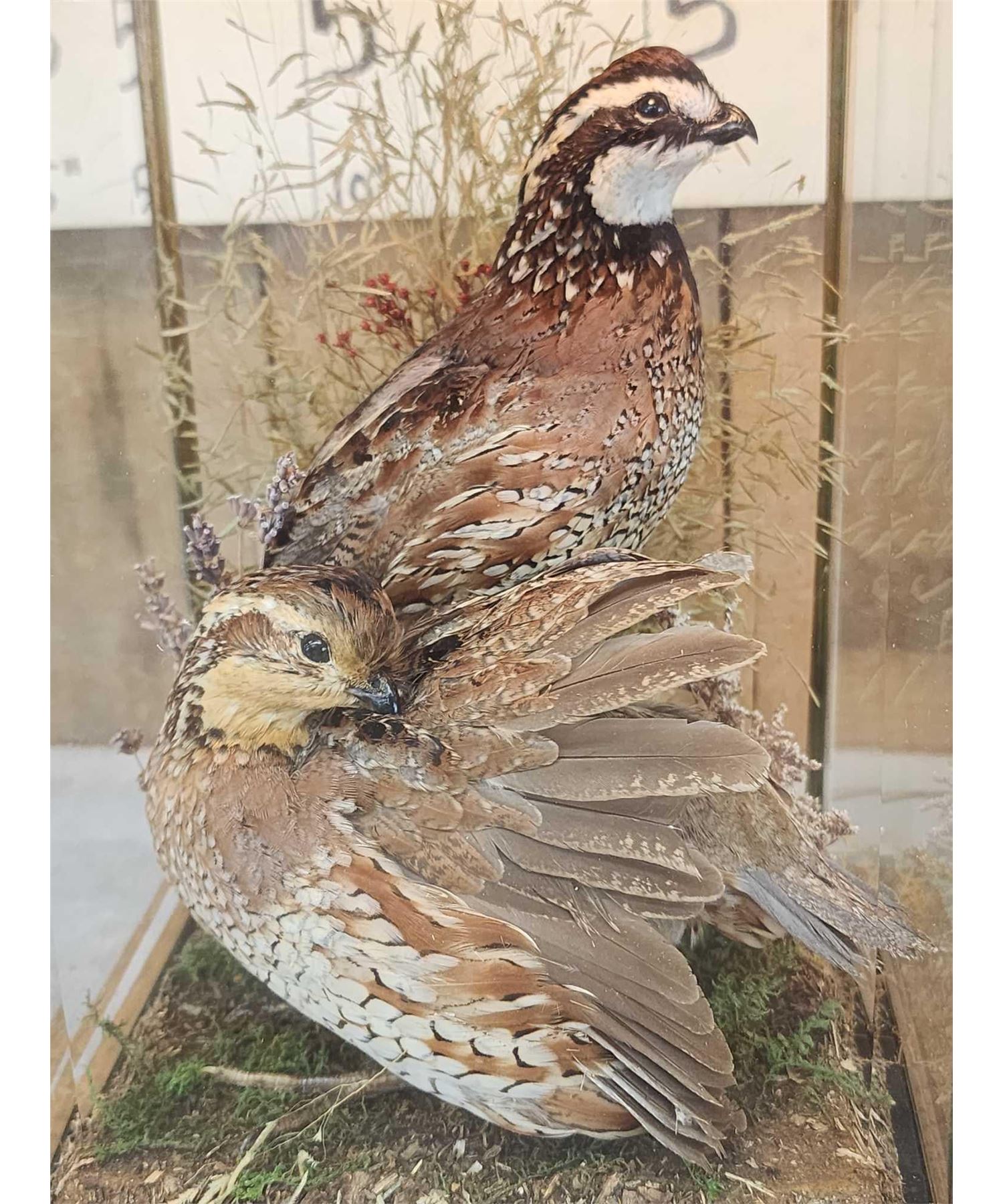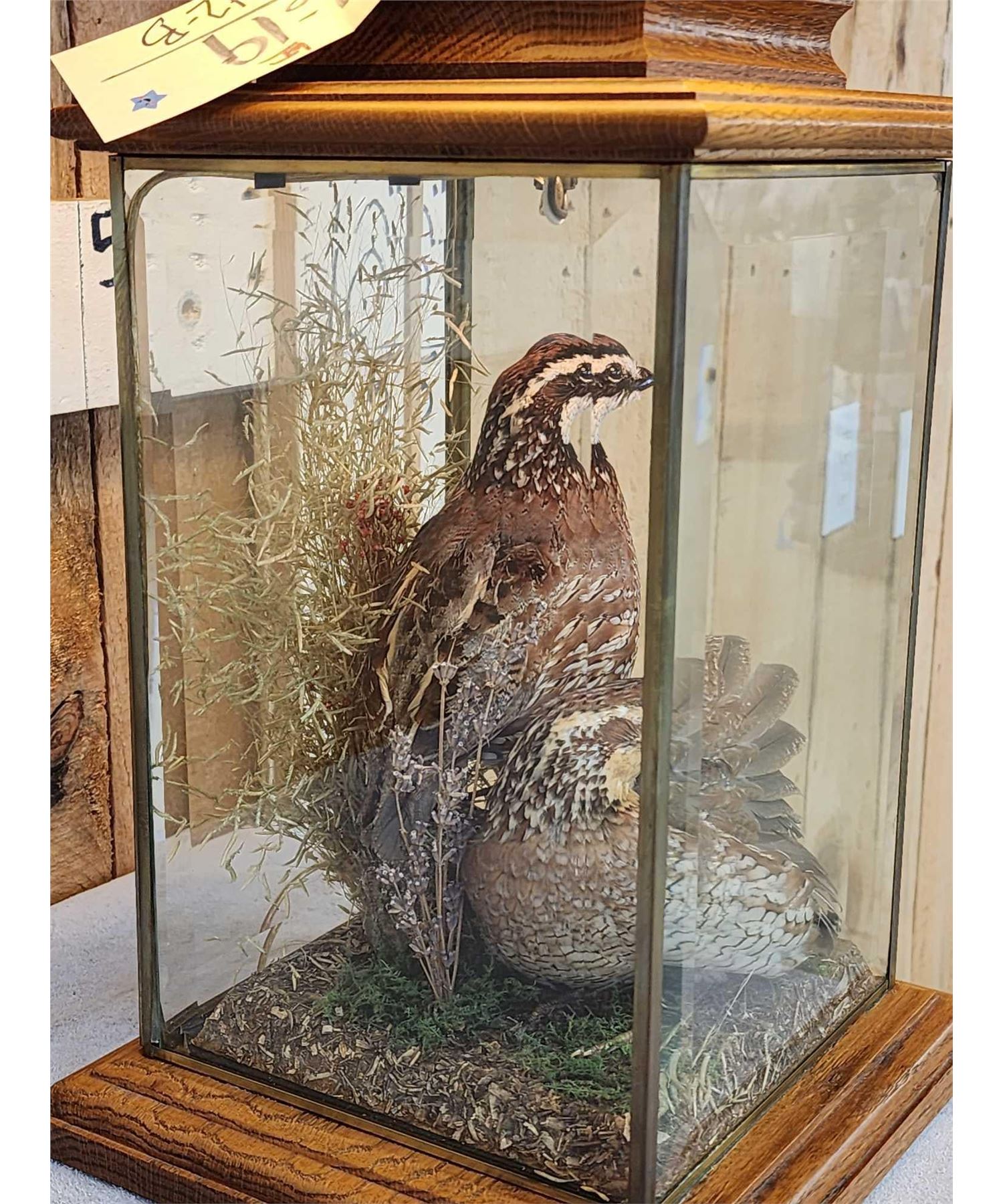 Lot 42B Male & Female Quail In A Table Top Lamp Bird Taxidermy