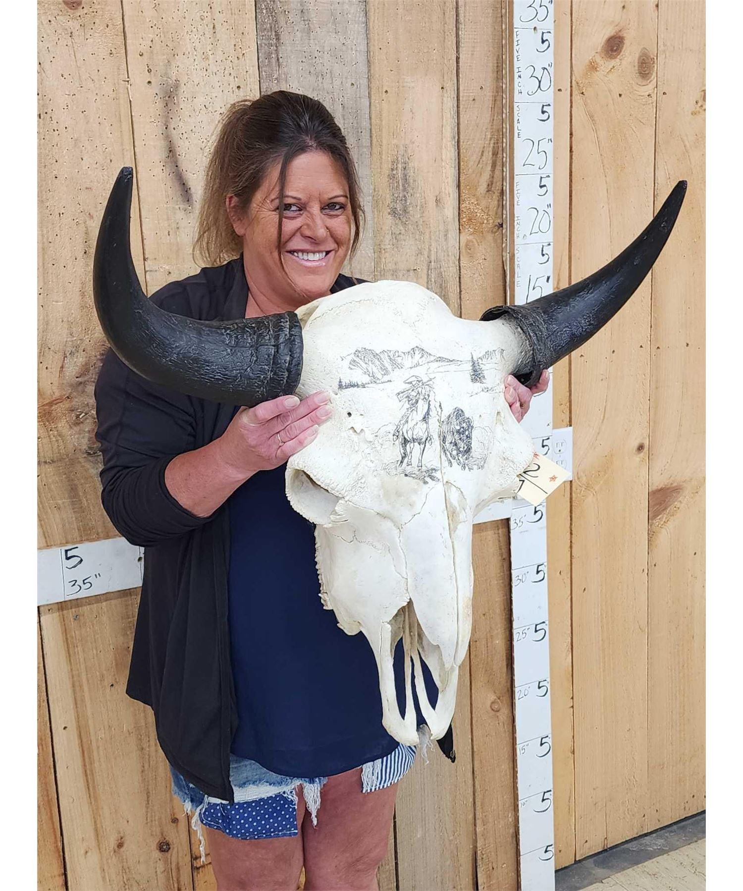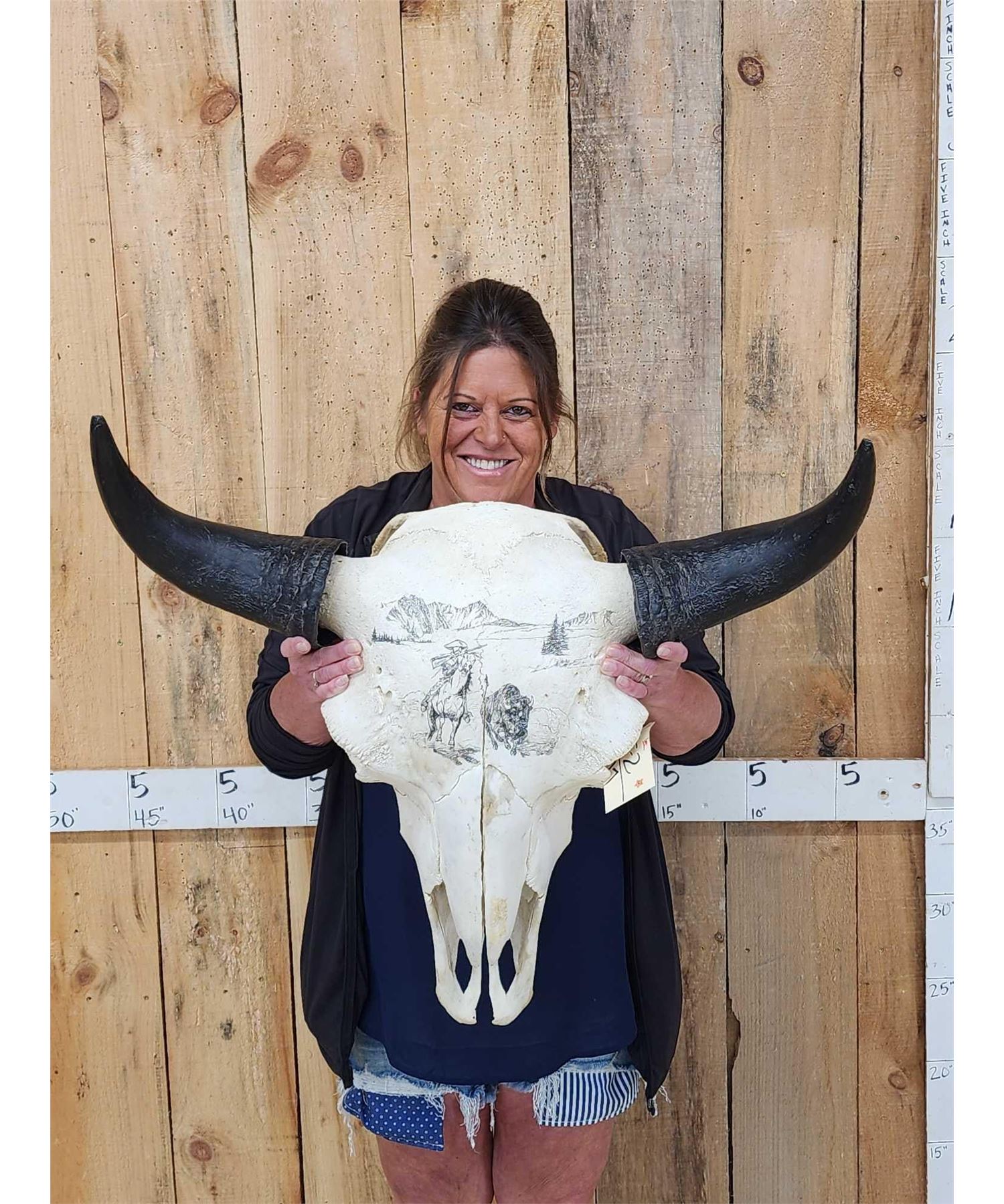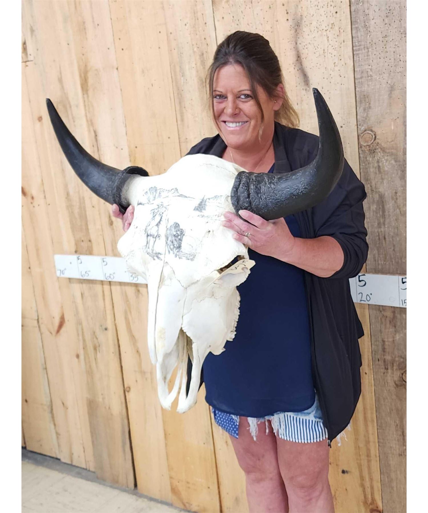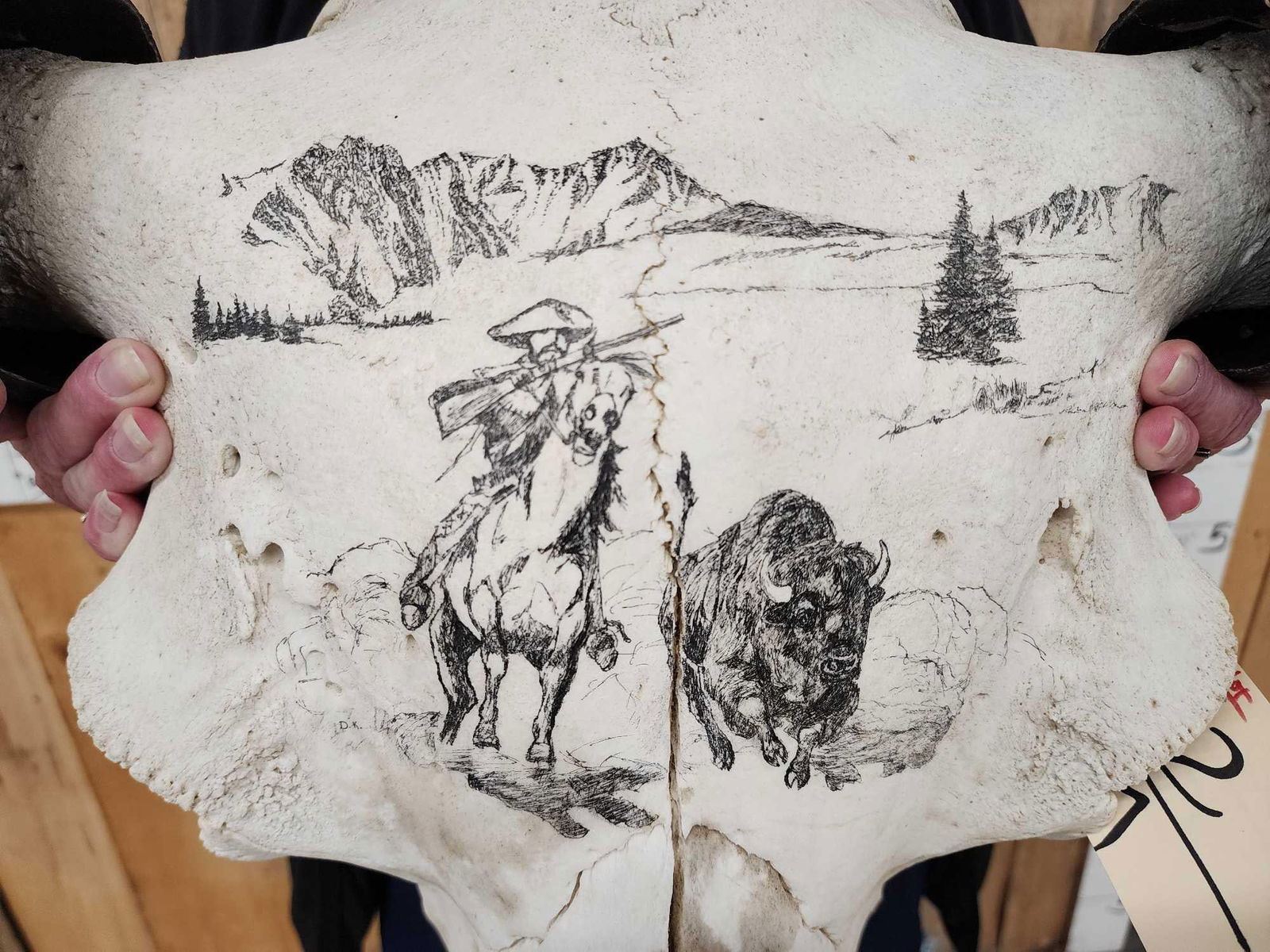 Lot 77 Scrimshawed American Bison Buffalo Skull Taxidermy