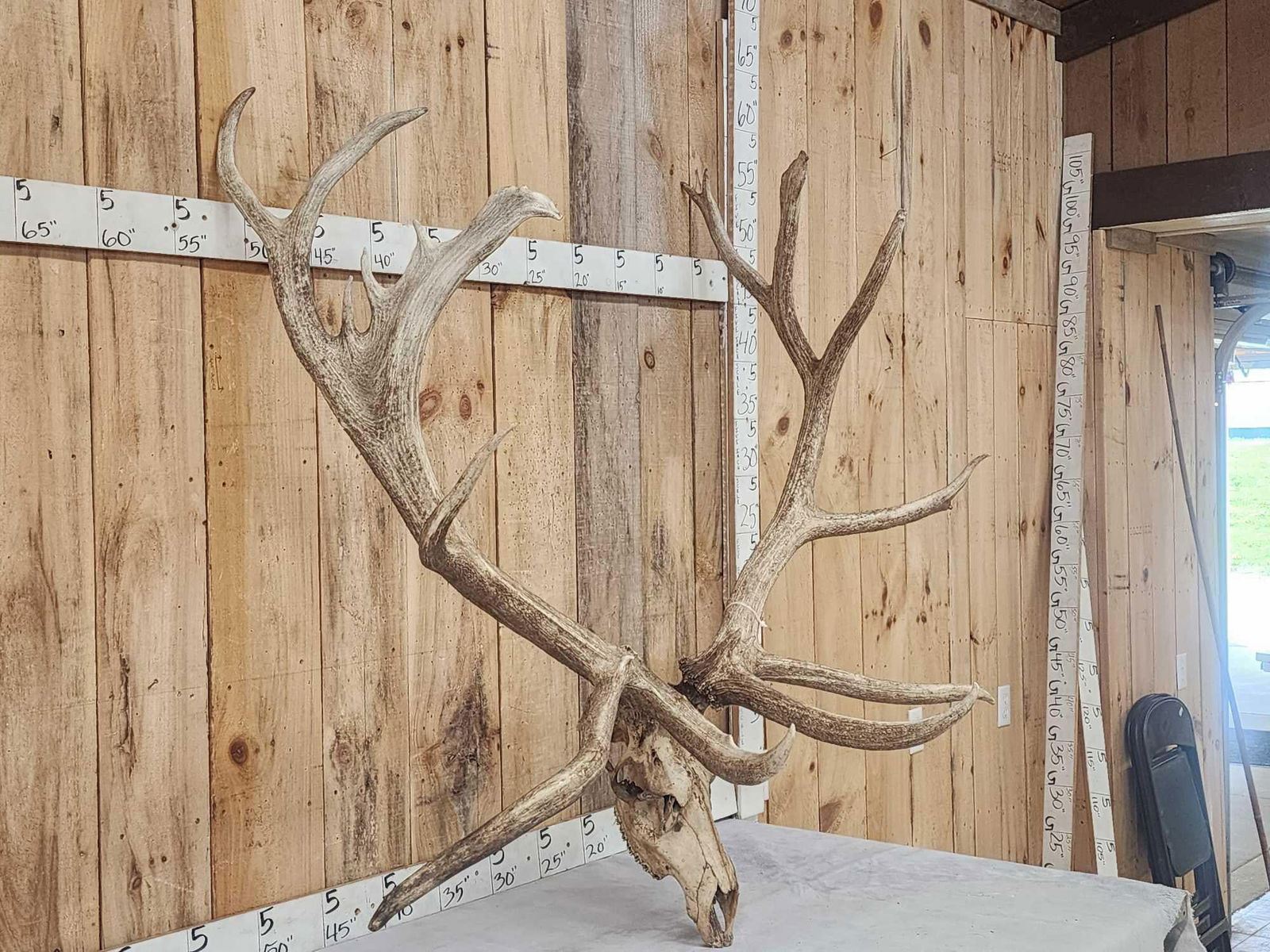 Lot 25E GIANT 470 Class Nontypical Elk Antler On Skull