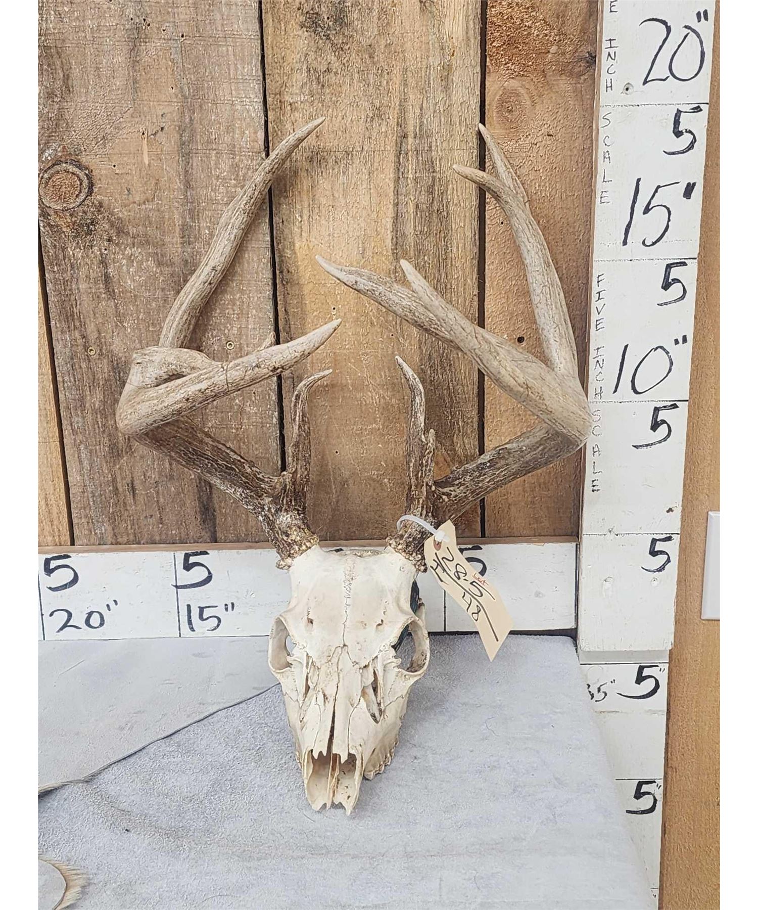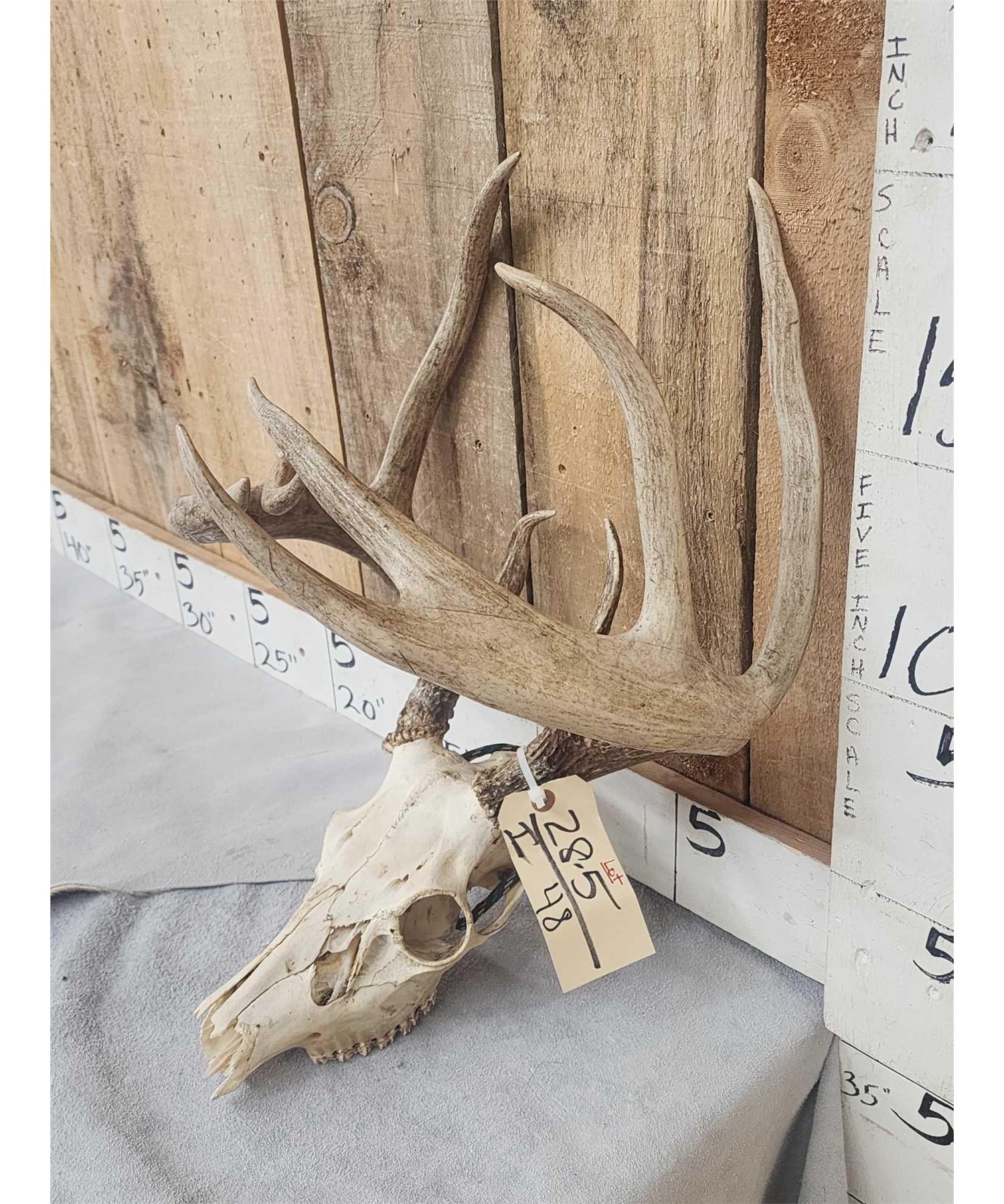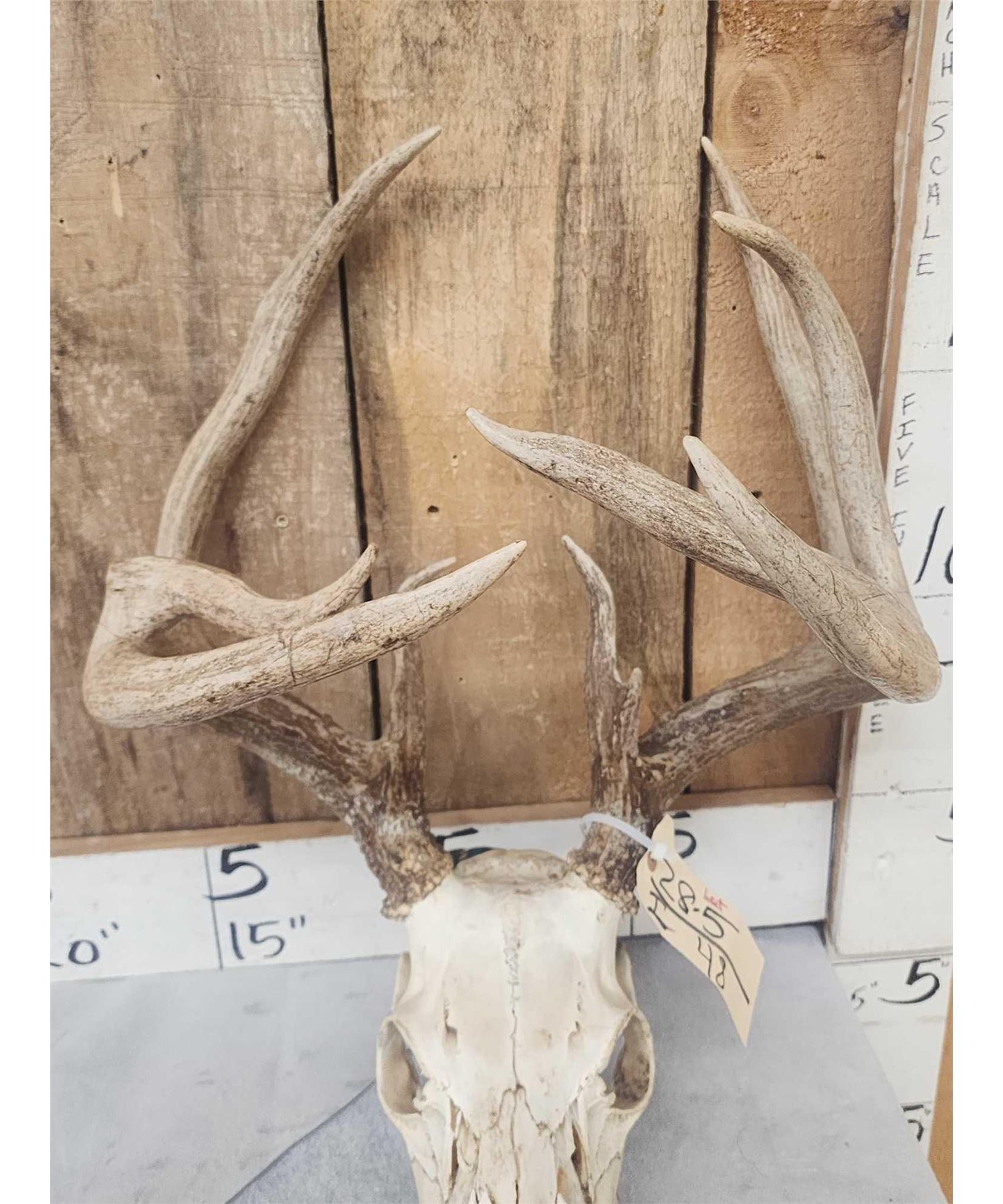 28.5 One of the coolest freaks you will run acrossWill gross score around 148" with bent g3 on his right side the g4 on the left crossing the main beam good color very unique piece!
