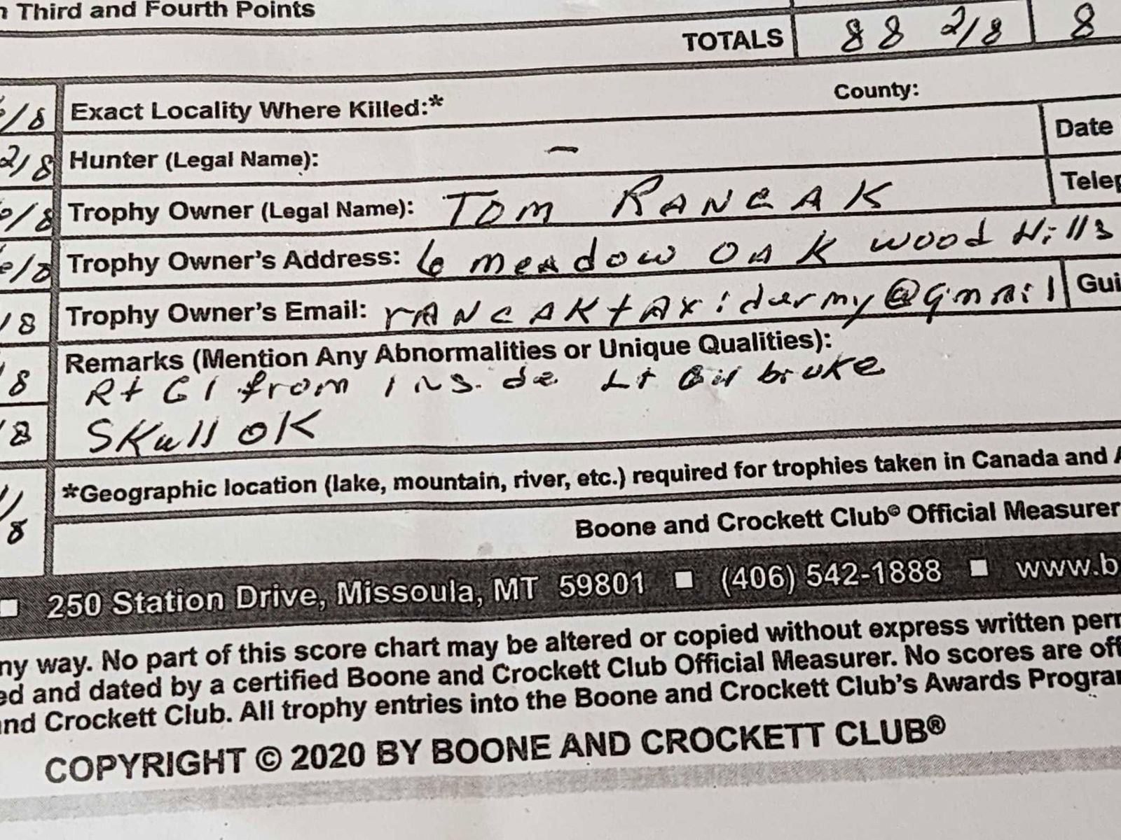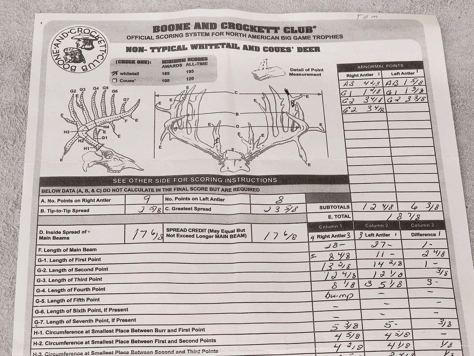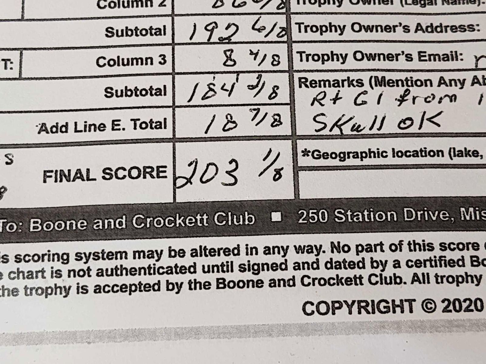 81.9 Officially scored in the book final net score 203 1/8" gross 211 5/8" previously mounted