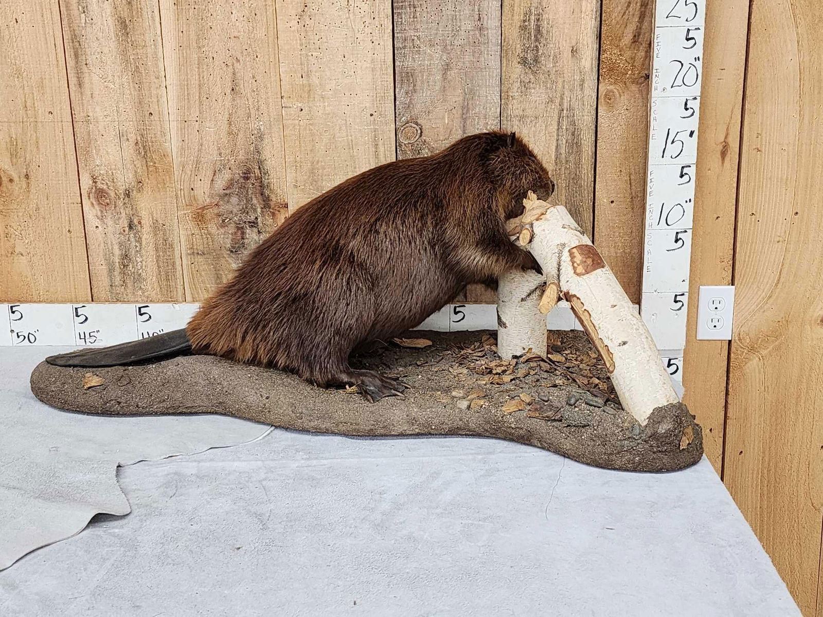 Lot 26A Beaver Chewing On A Log Full Body Taxidermy Mount