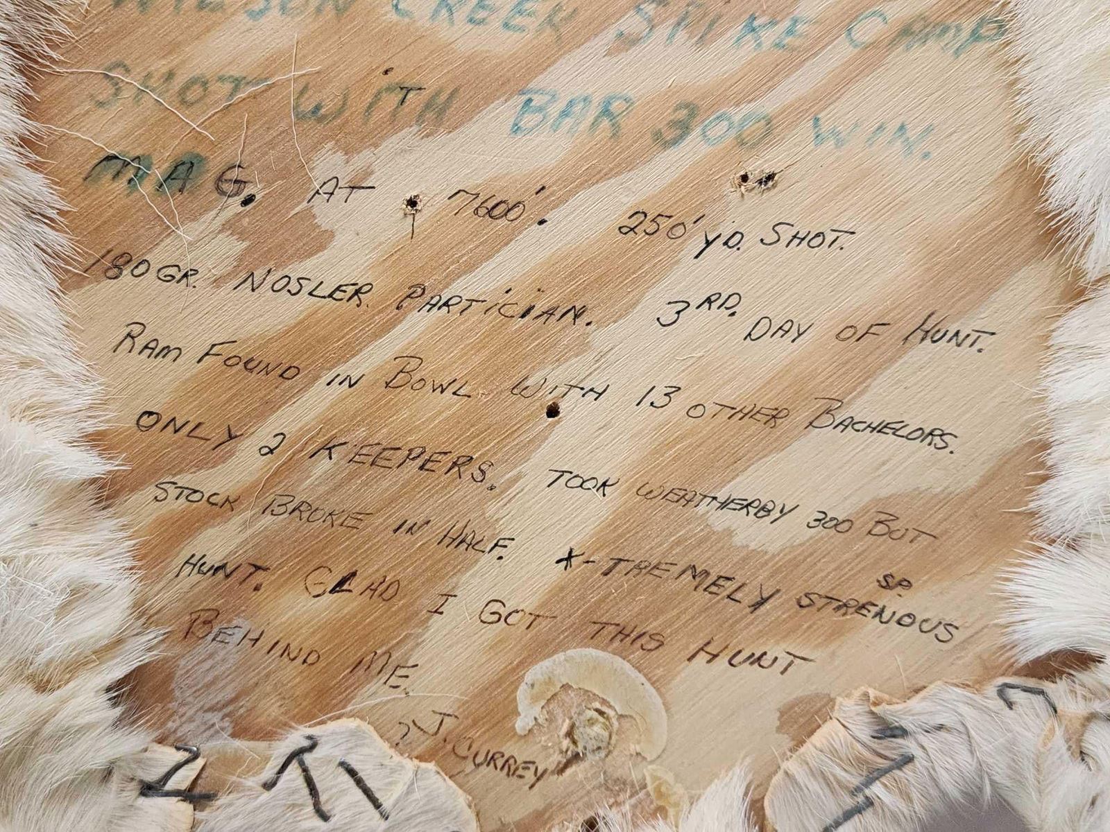 75.10 Nicely done mount 33 1/2 33" horns full story of the hunt written on the back of the mount