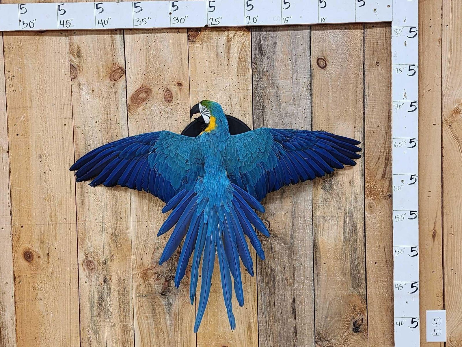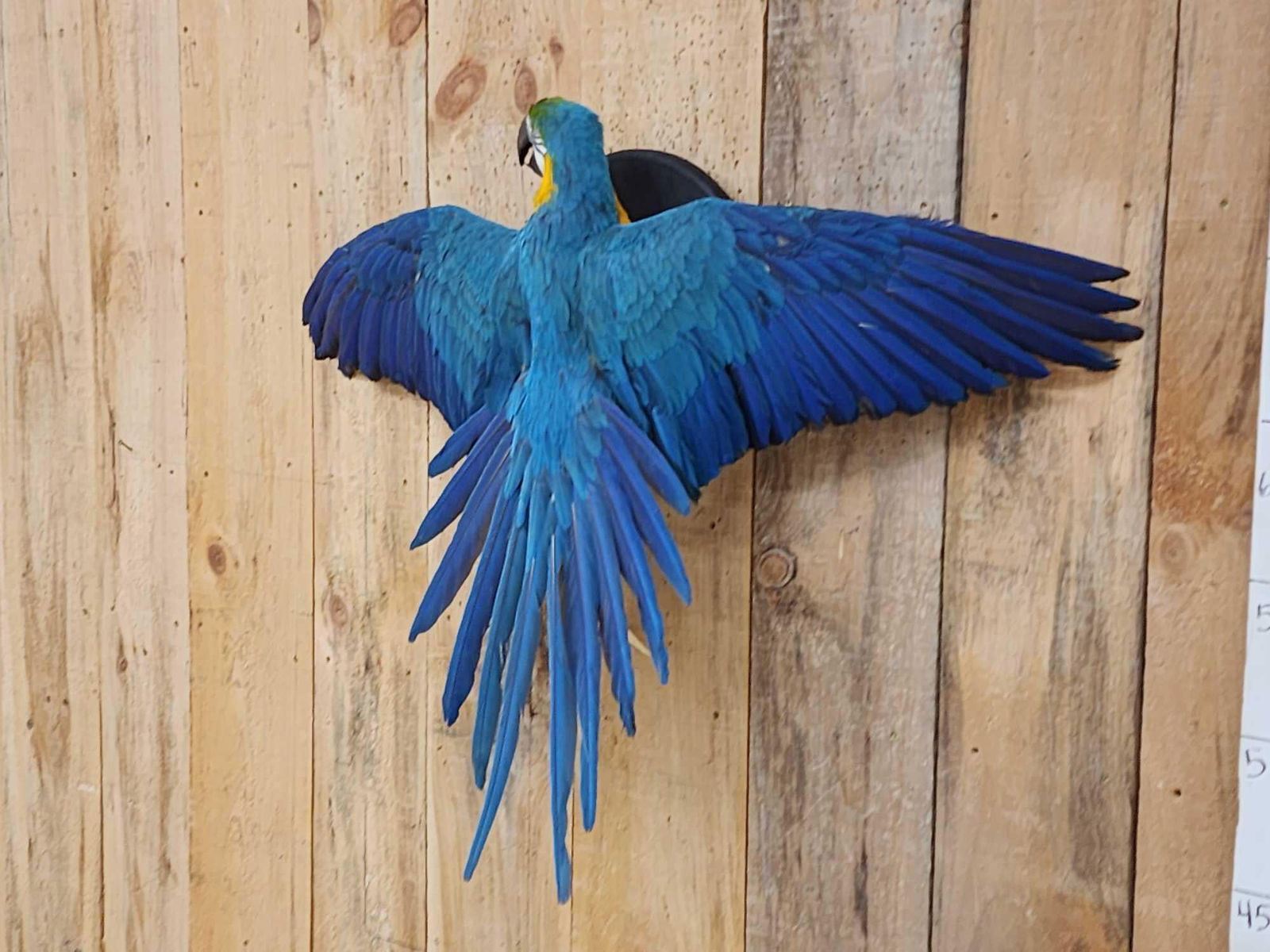 Lot 35 Spectacular Blue & Yellow Macaw In Flight Bird Taxidermy
