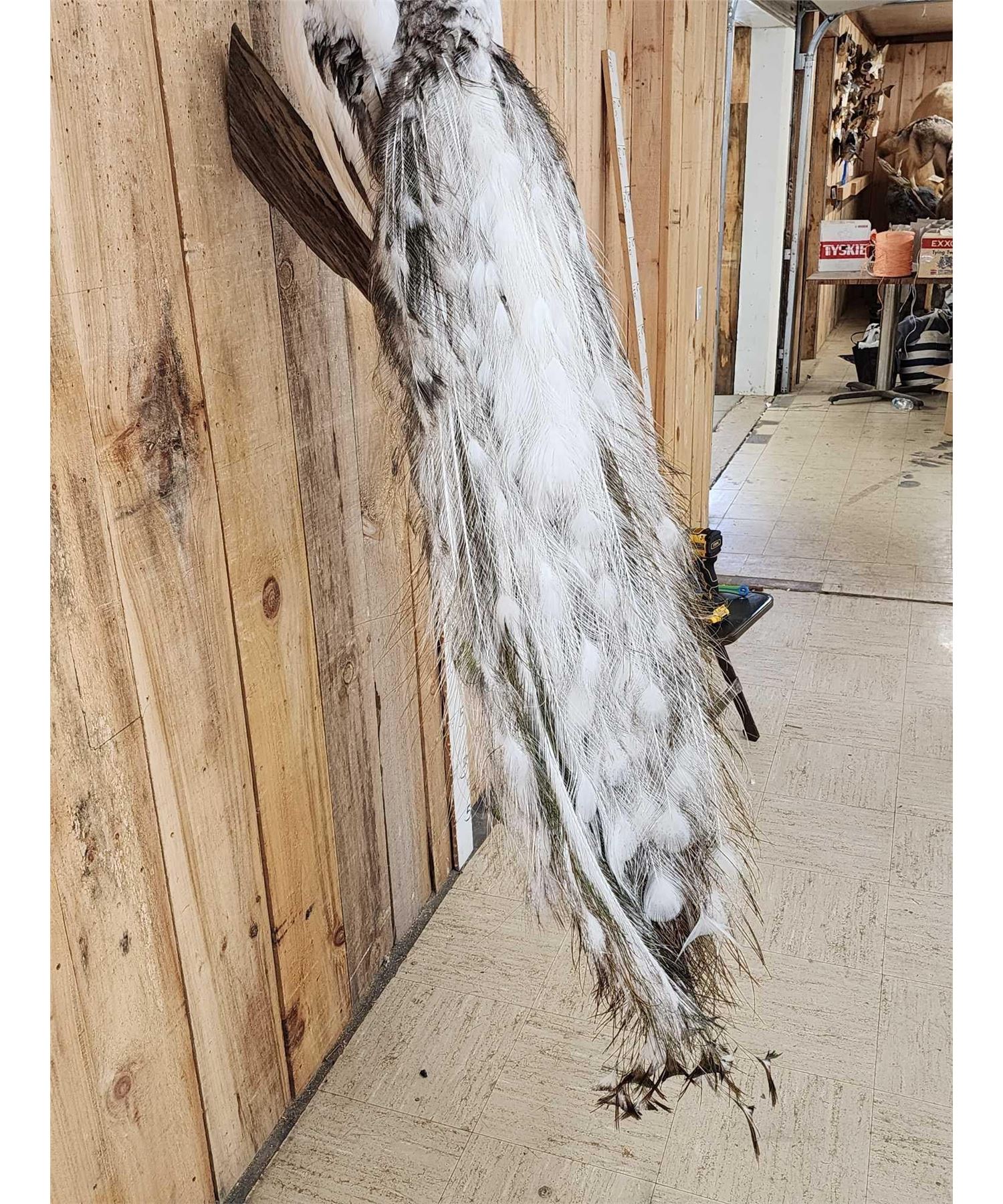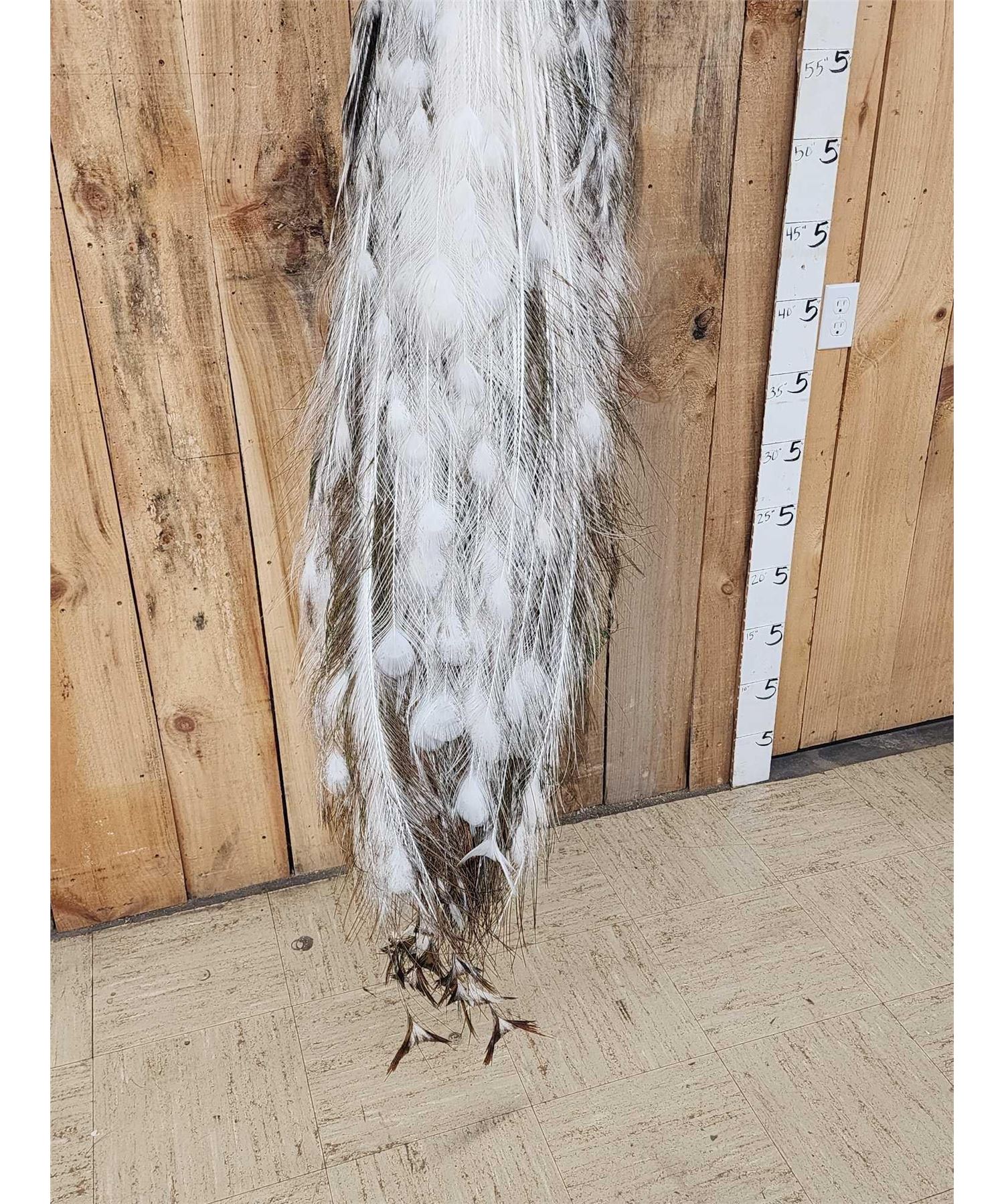 1.37 Brand new mount Awesome colors cleverly crafted magnetic detachable tail feathers for easy shipping or transport the tail feathers or train os about 56" long overall dimensions about 76" tall x 18" wide x 36" out from the wall