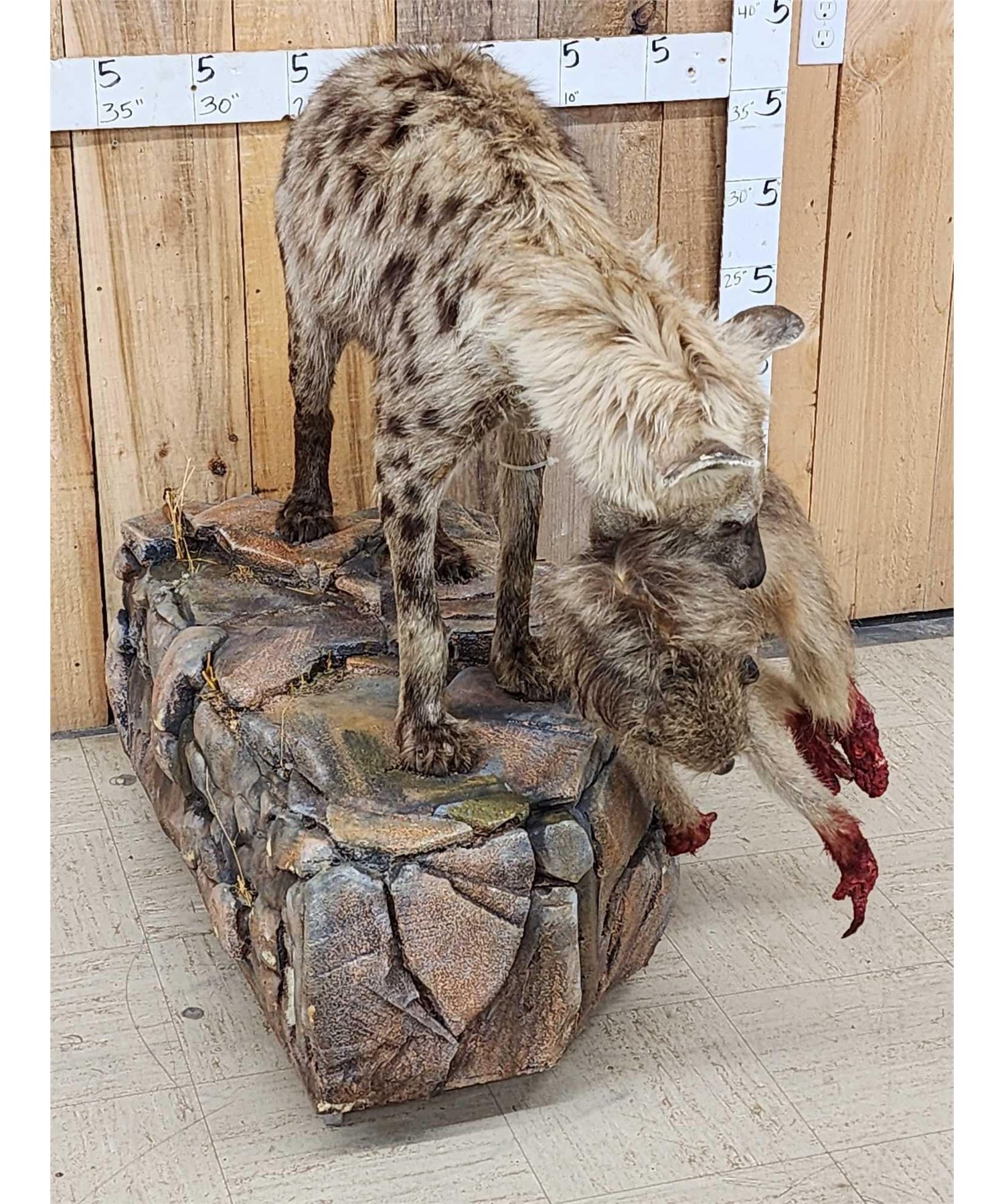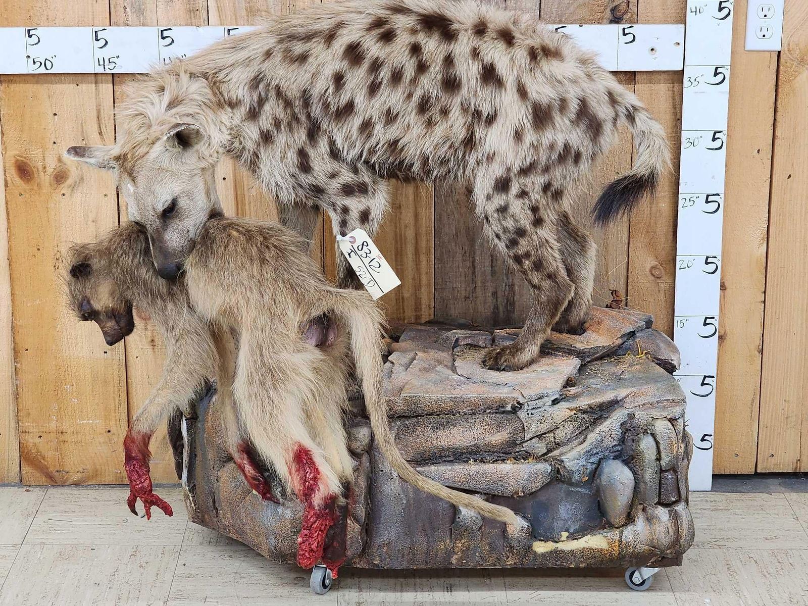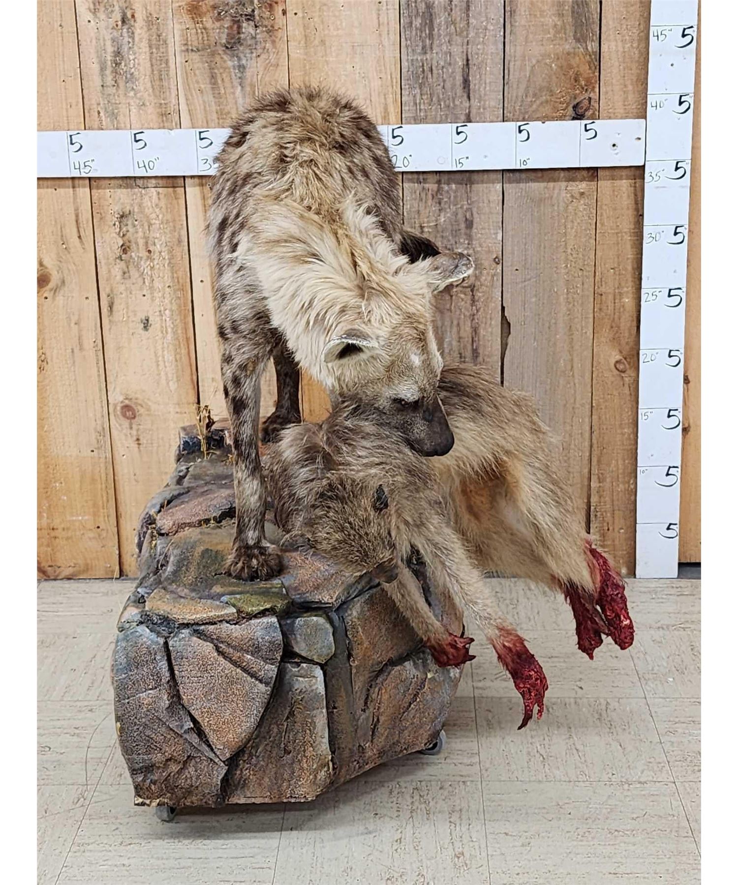 83.12 Very pronounced markings on the Hyena accurate depiction of the harsh reality of nature on roll around base