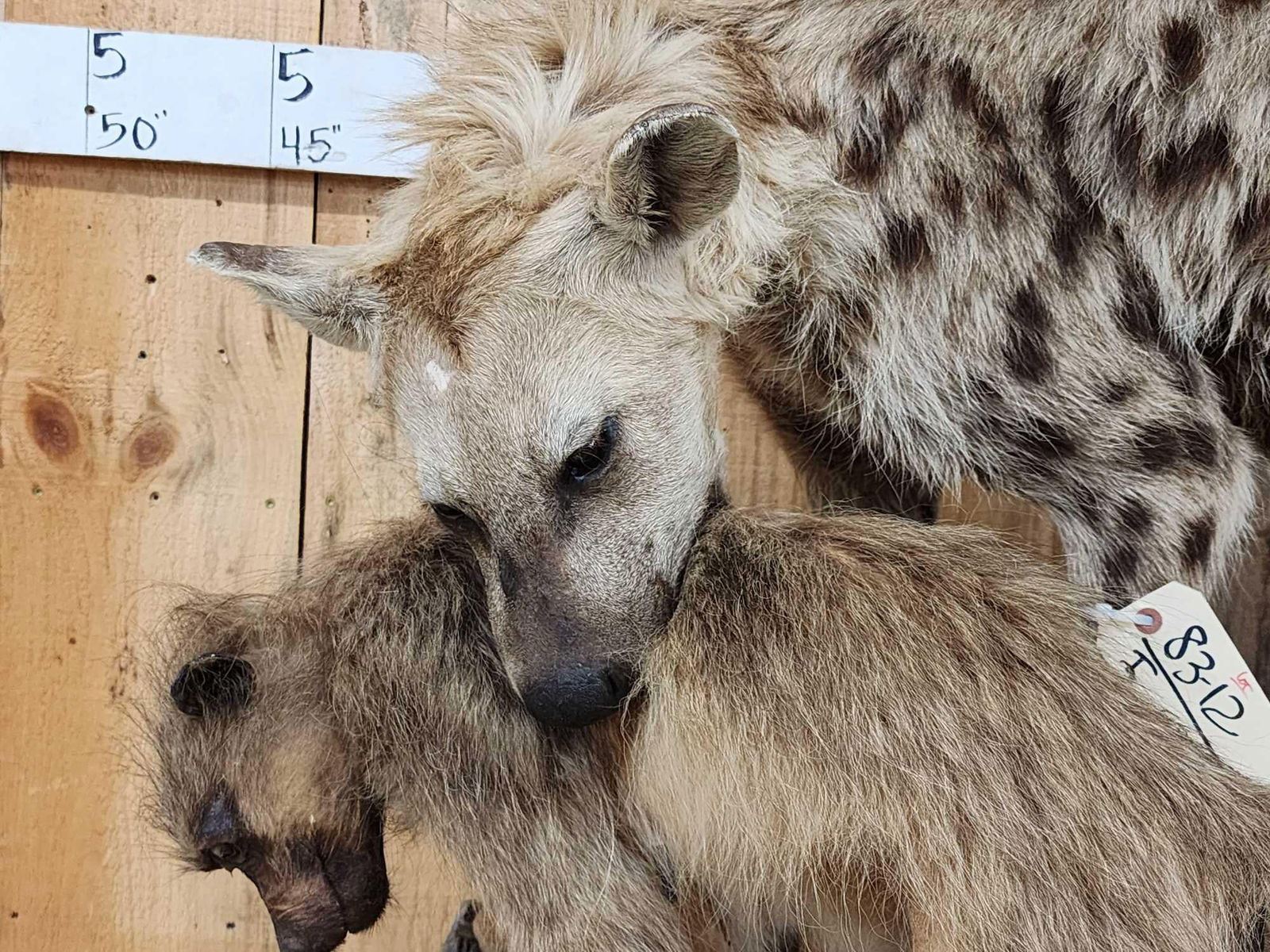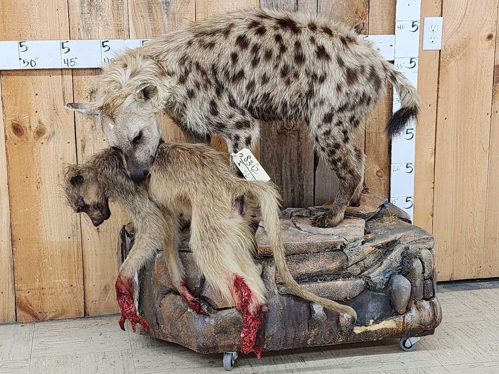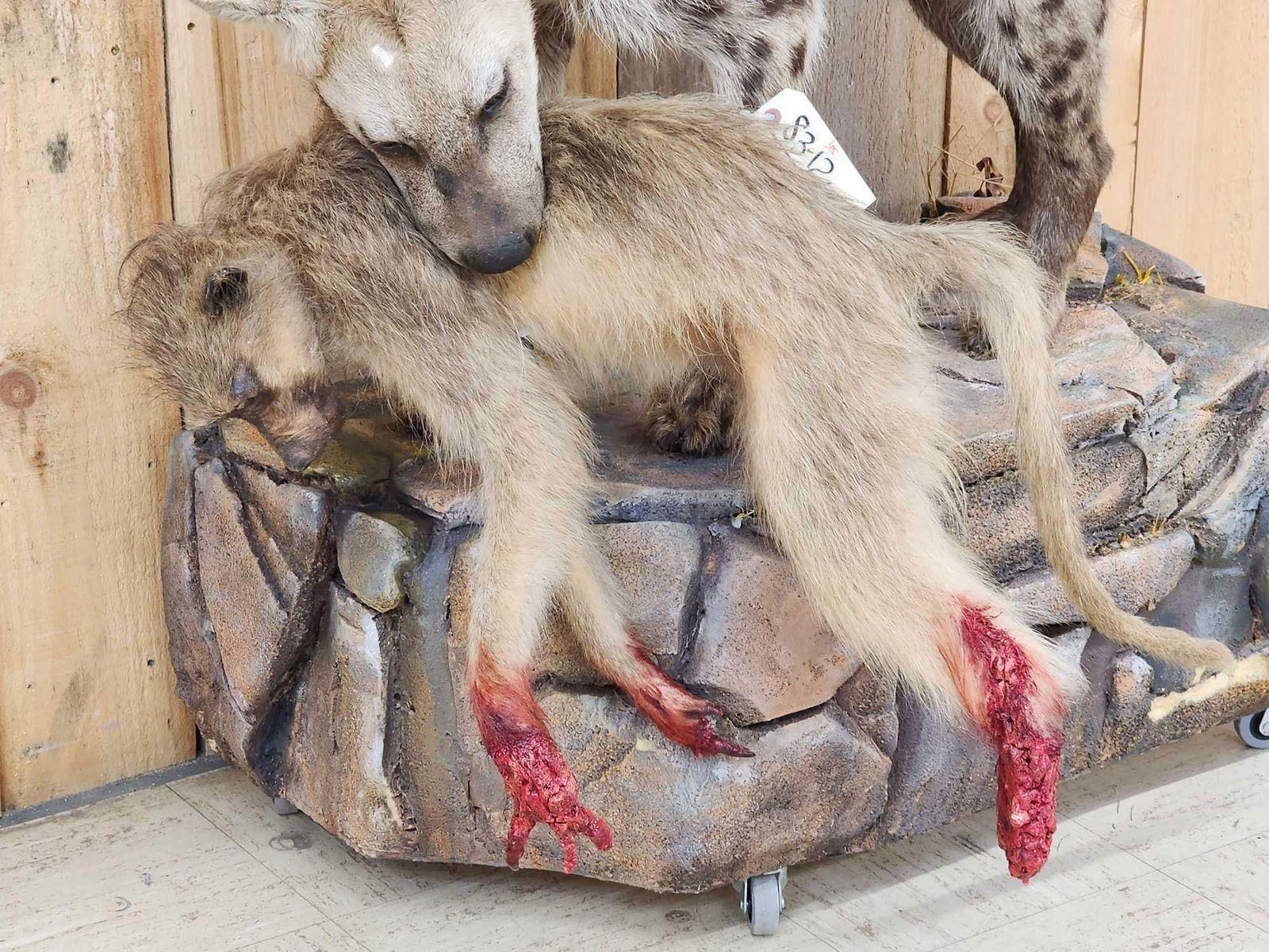 Lot 52D African Spotted Hyena Eating A Baboon Full Body Taxidermy Mount