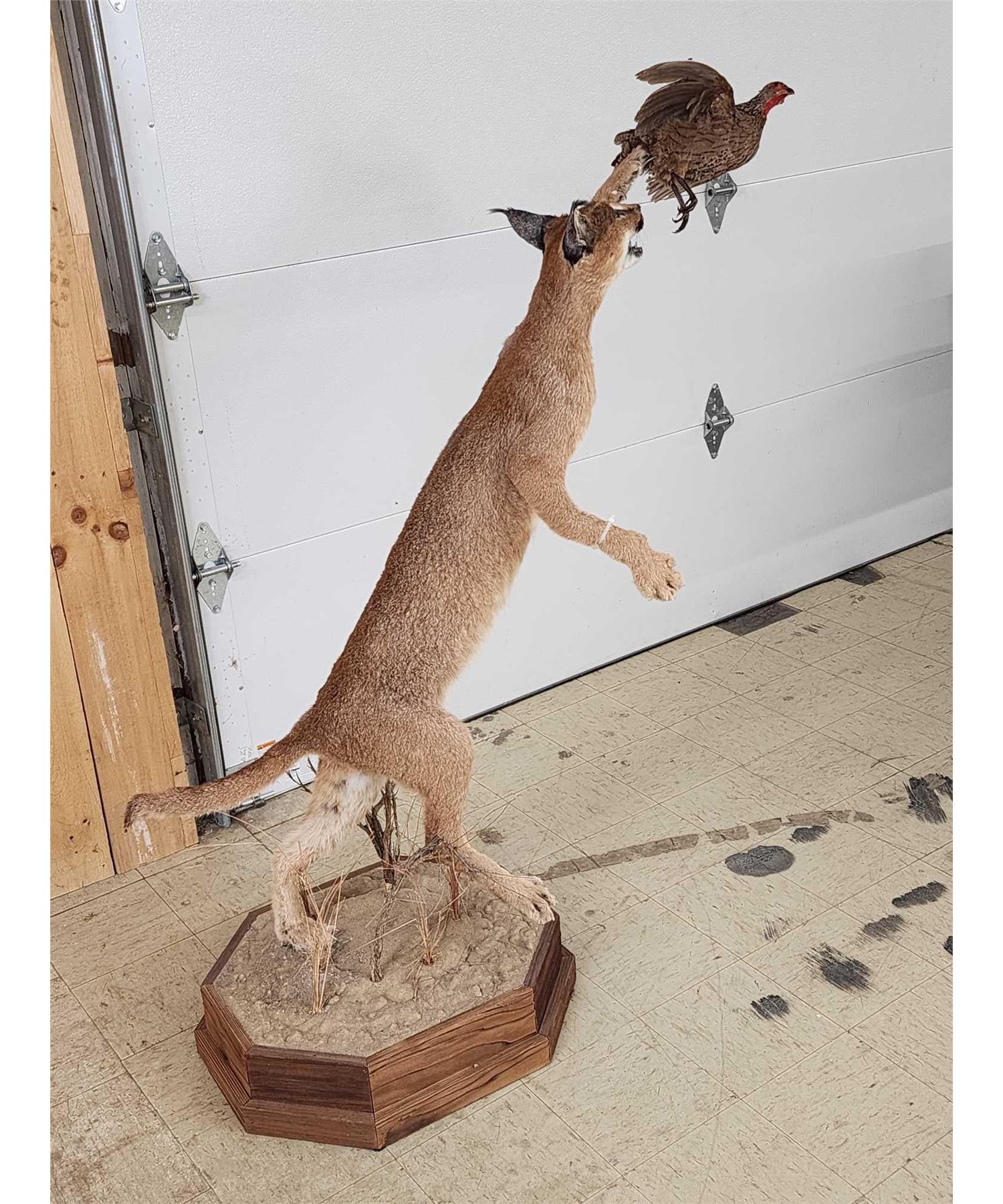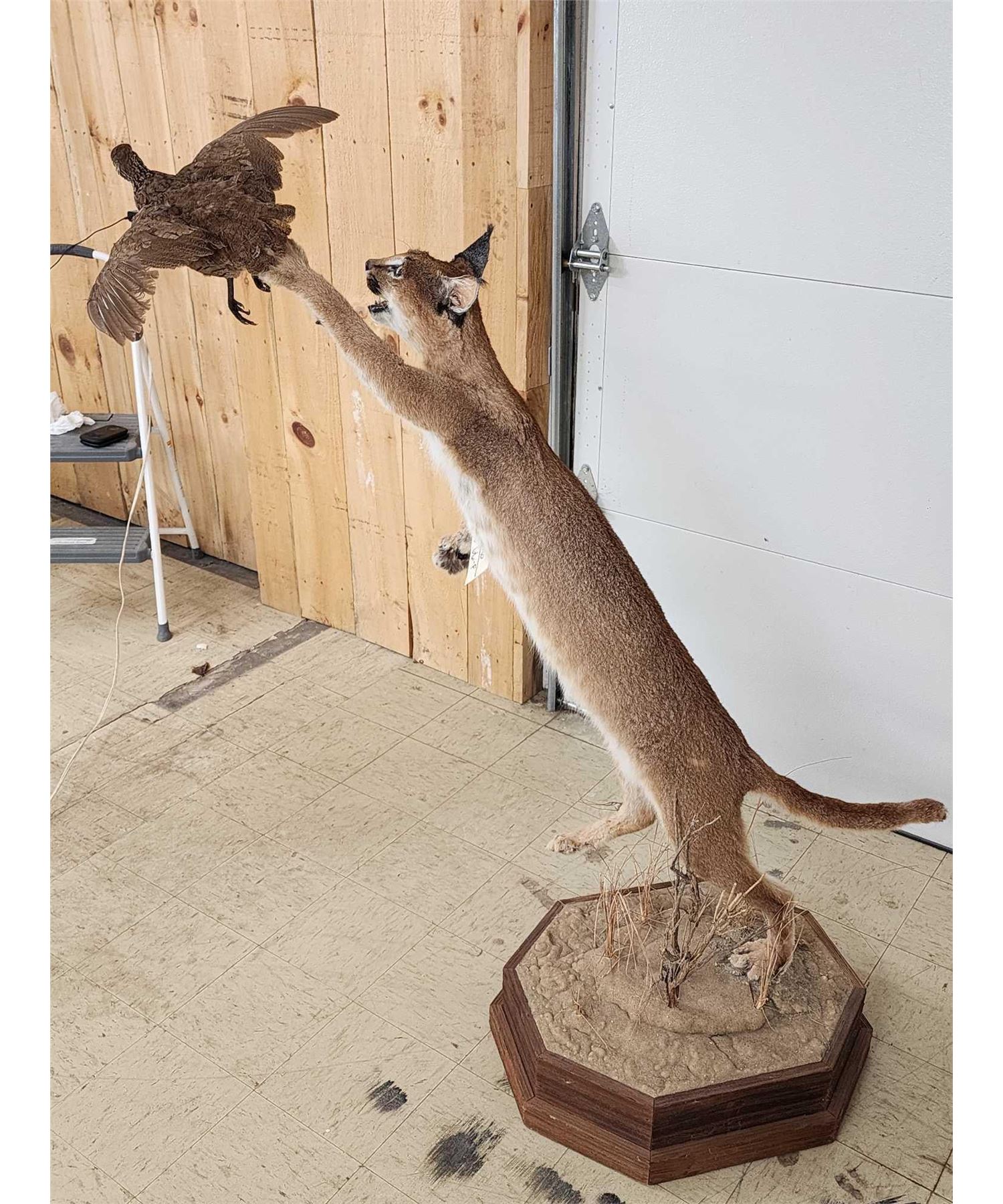 Lot 66F African Caracal Cat Leaping For A Bird Taxidermy Mount