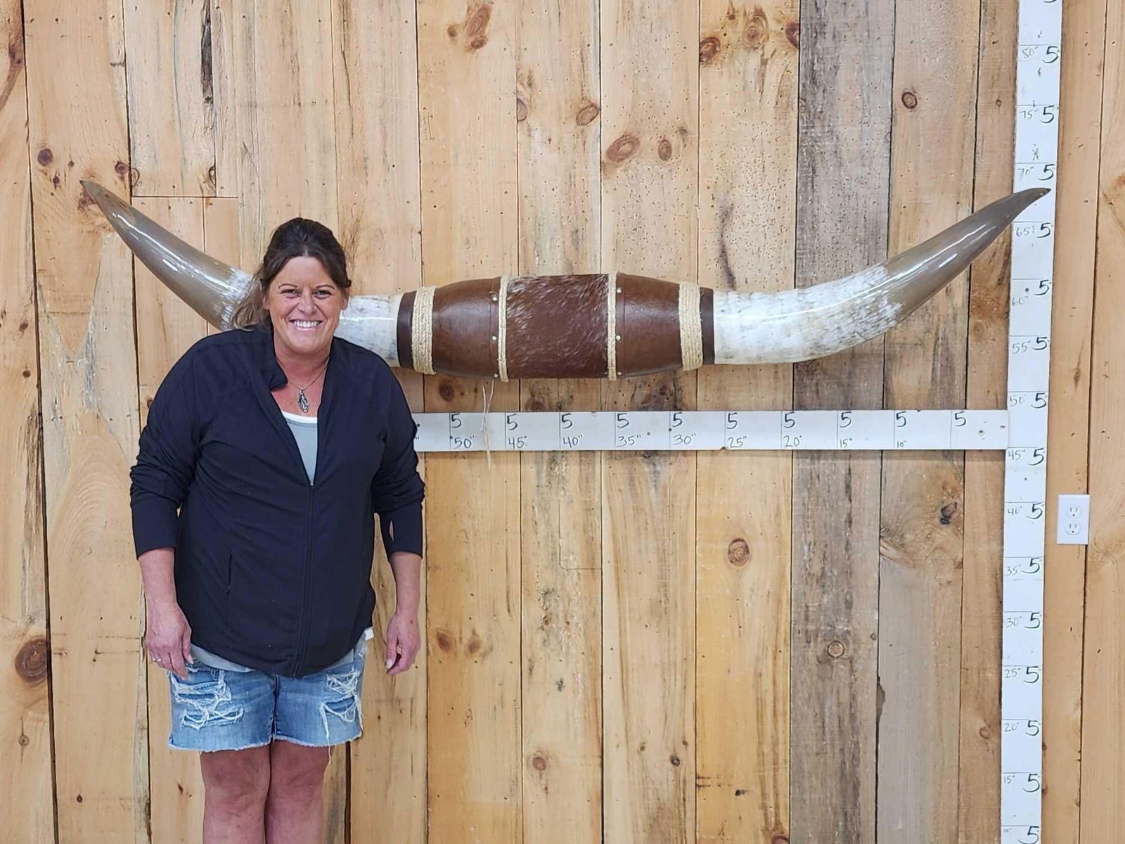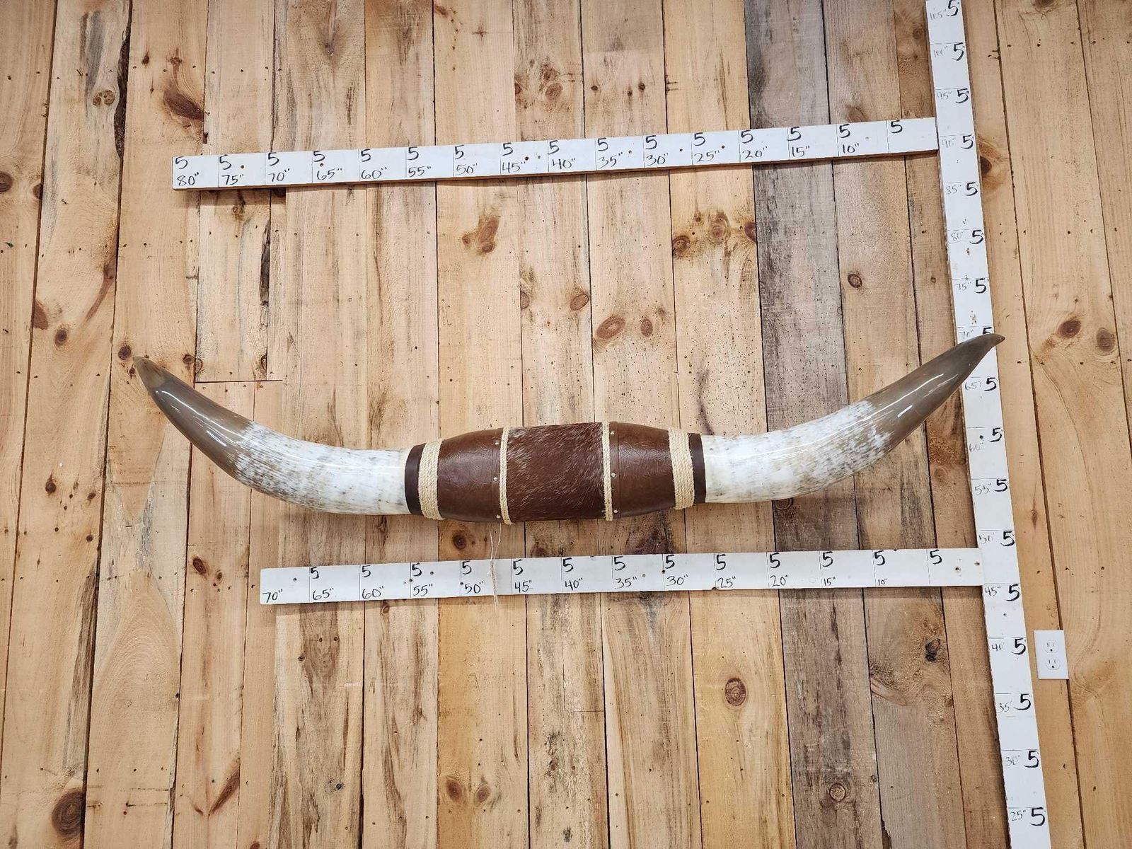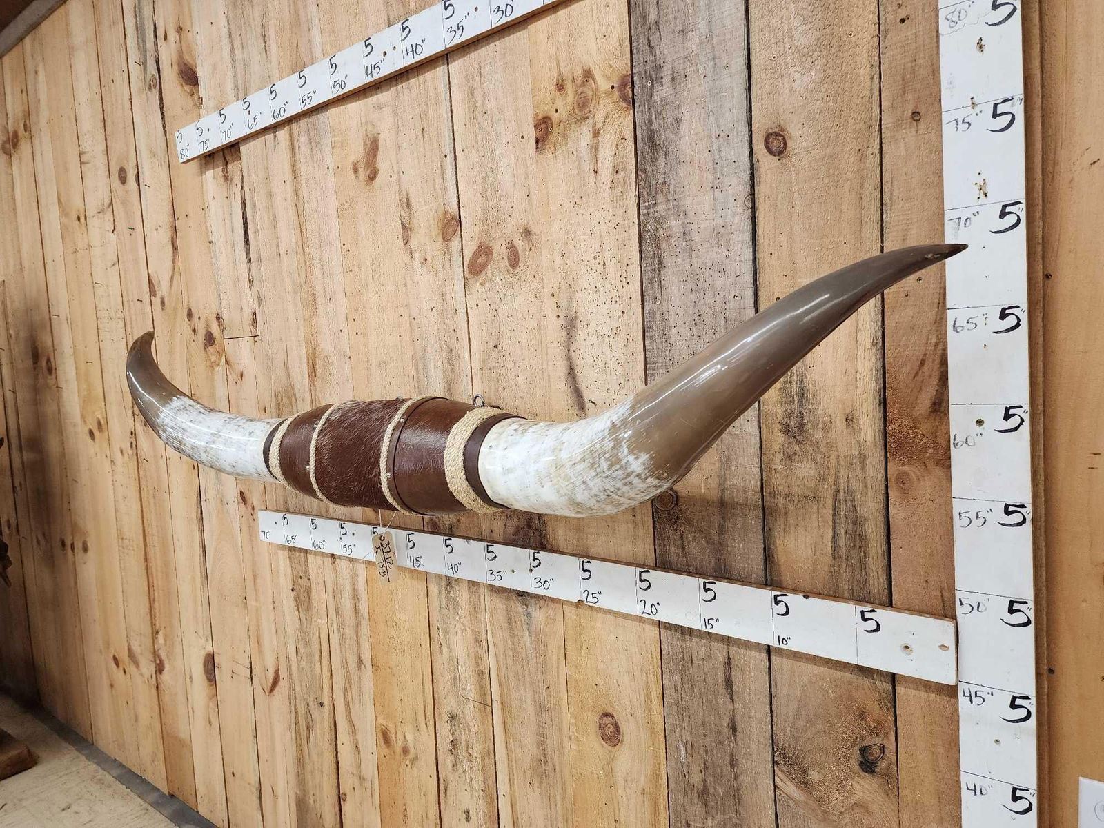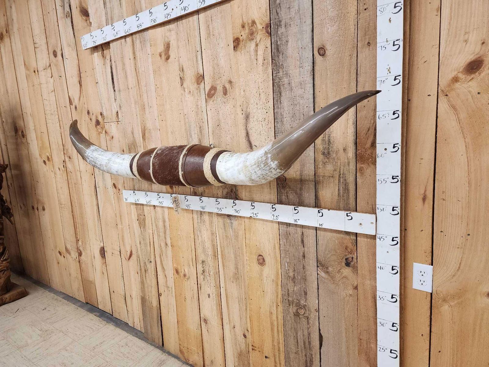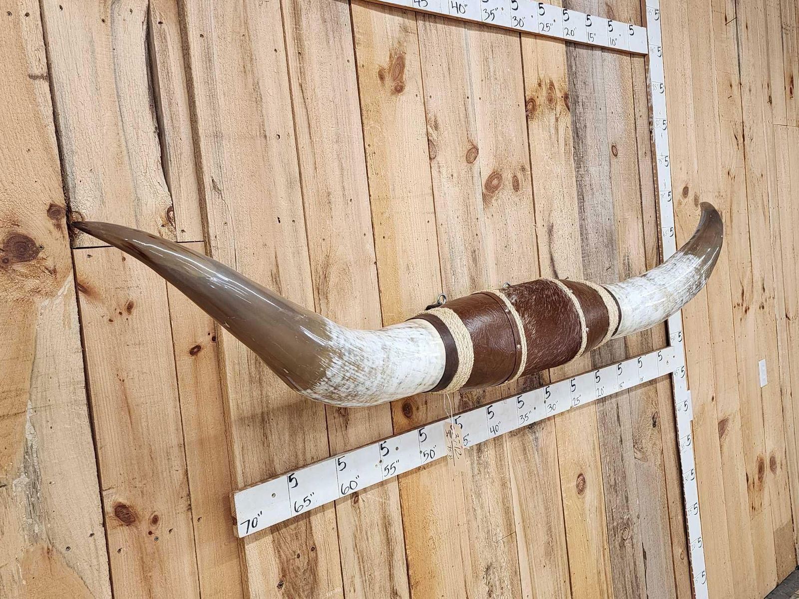 37.12 GORGEOUS piece with an impressive 82 1/2" tip to tip horn spread polished to a high sheen brand new mount!Great focal point for any western themed space !