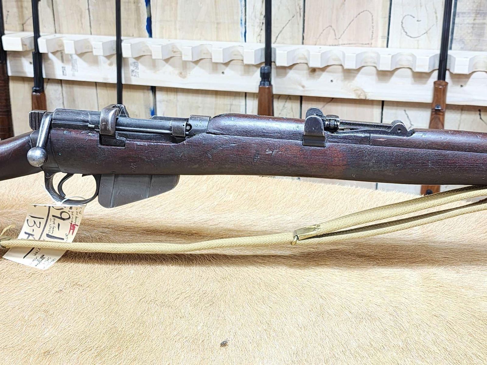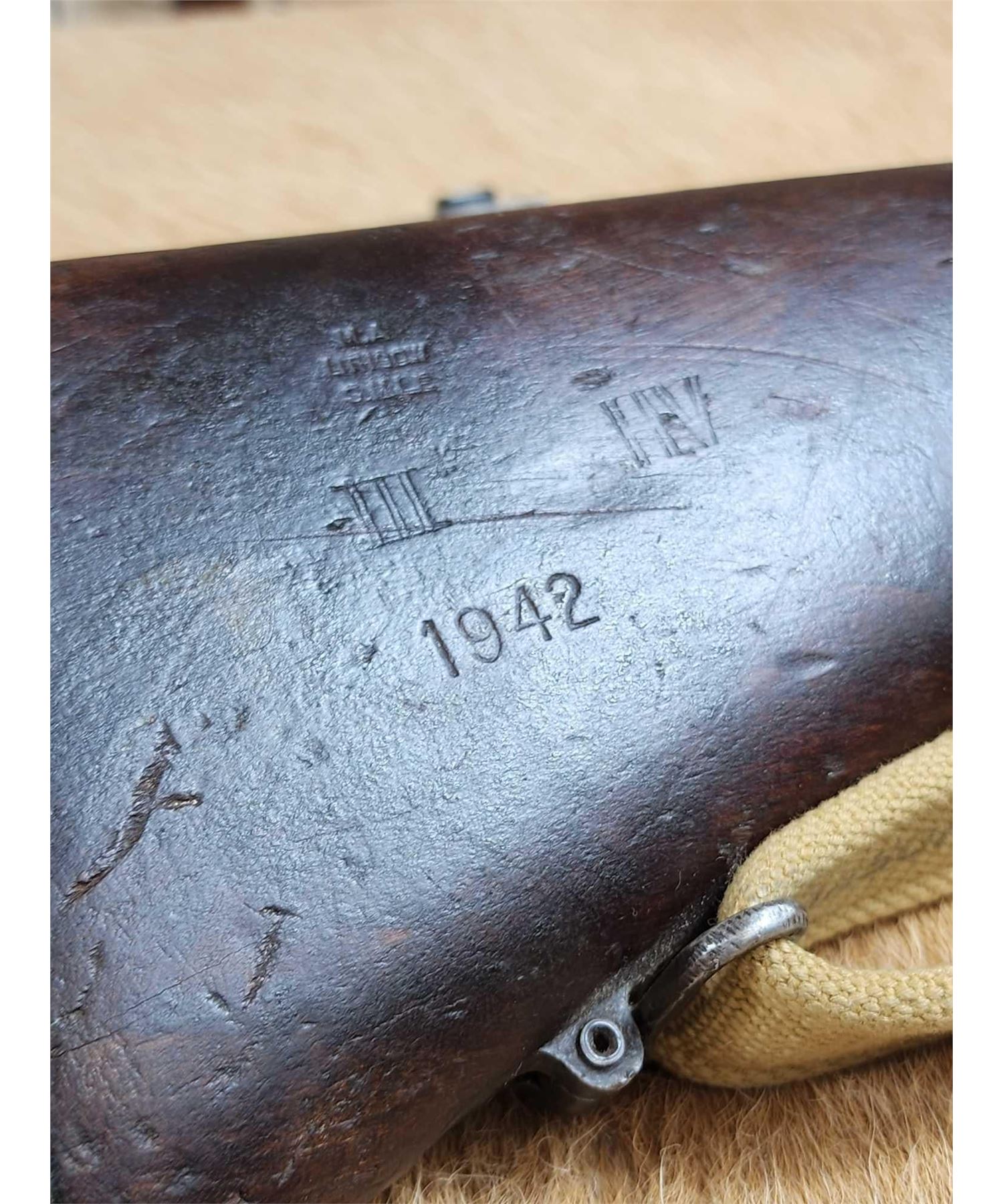 59.1 Mfg 1942 original bolt matching numbers on bolt receiver correct Hugh Carson Co. Ltd sling several markings on stock shiny bore good rifling crisp action overall nice historic gun SN C87899