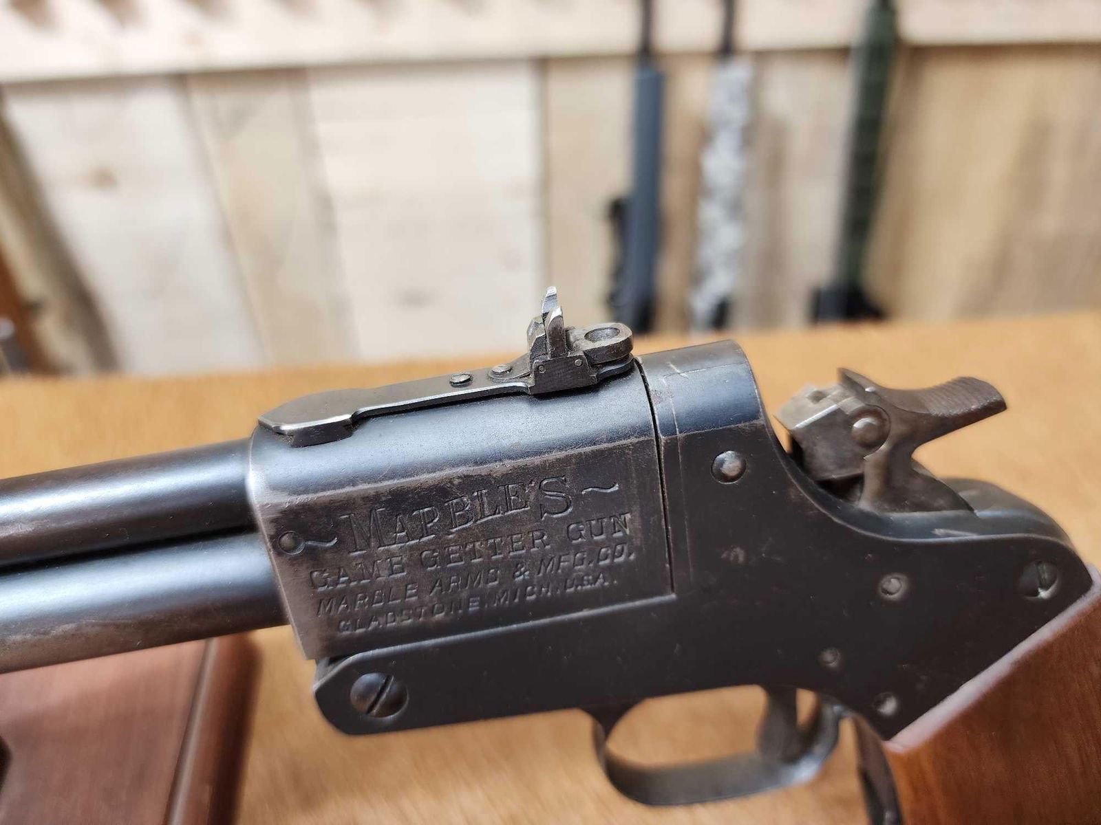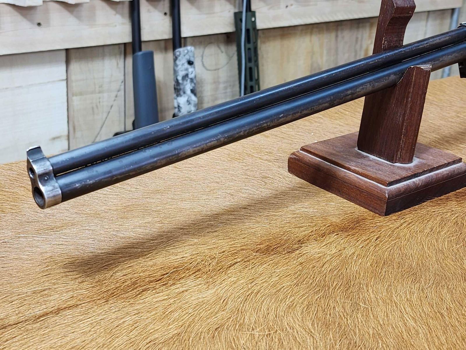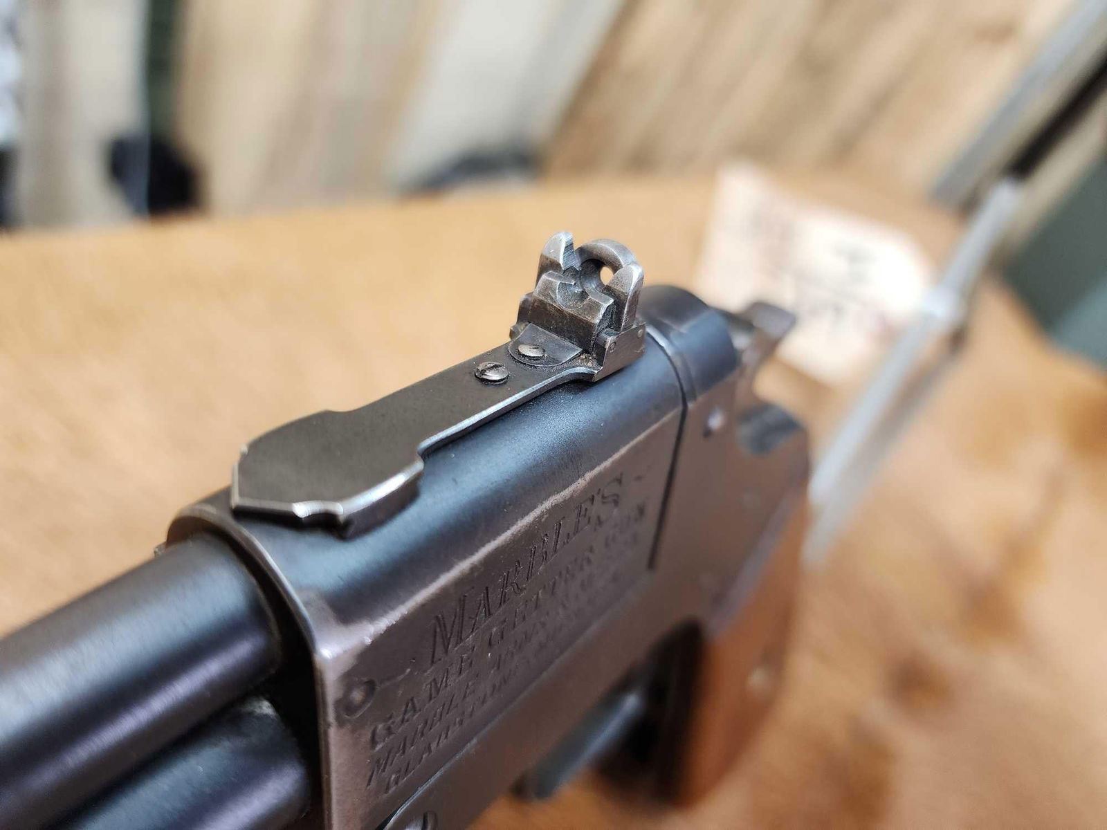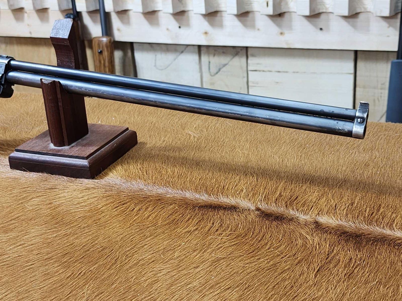 69.2 Rare vintage gun flip up rear peep sight 18" barrel good rifling shiny bore in both barrels locks up tight crisp action folding stock repaired SN 12286