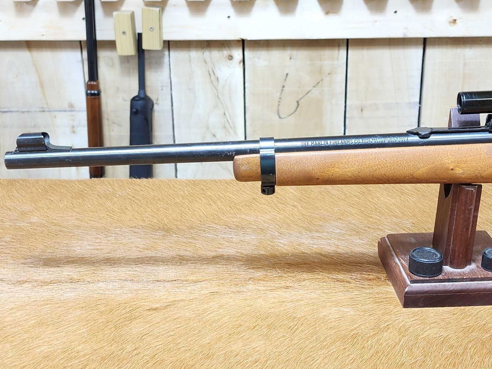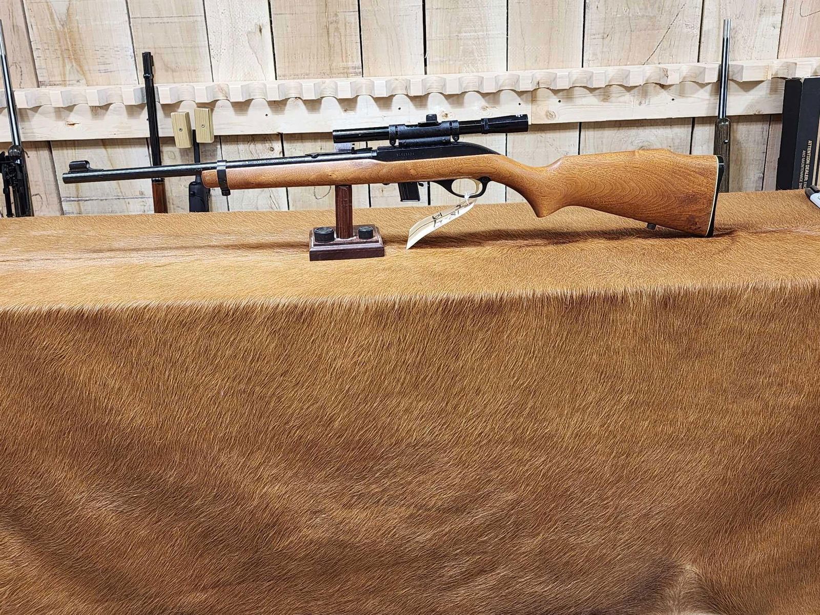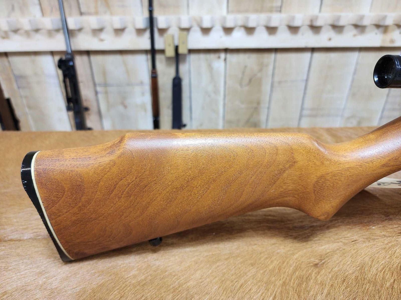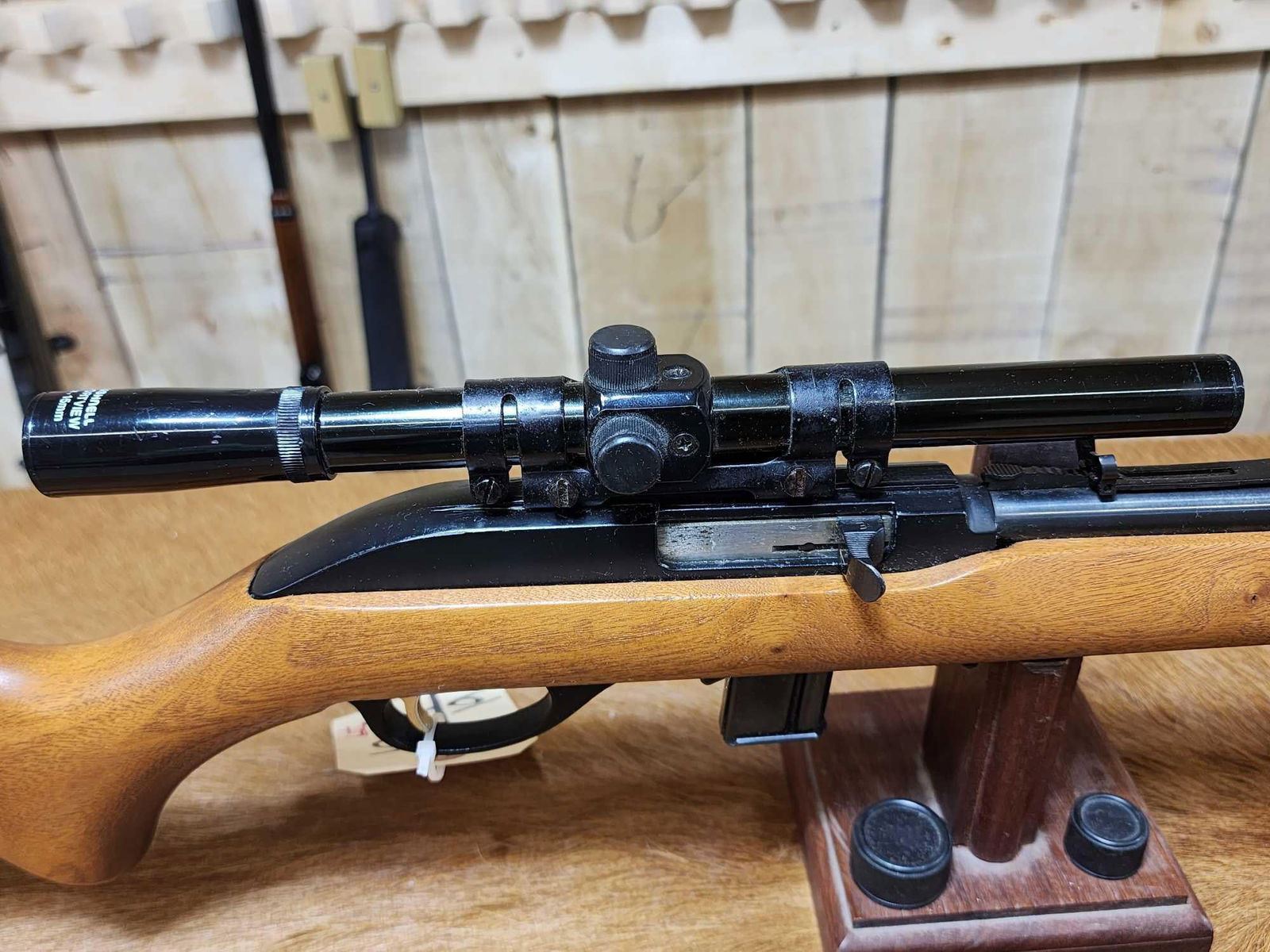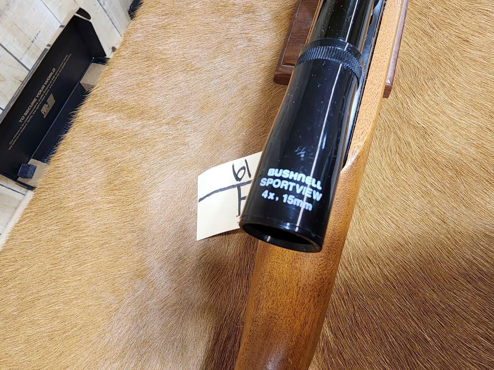 18.4. 22 LR only 18 inch barrel small rust freckles. Bushell Sportview 4x 15mm scope with end caps.SN 21523534