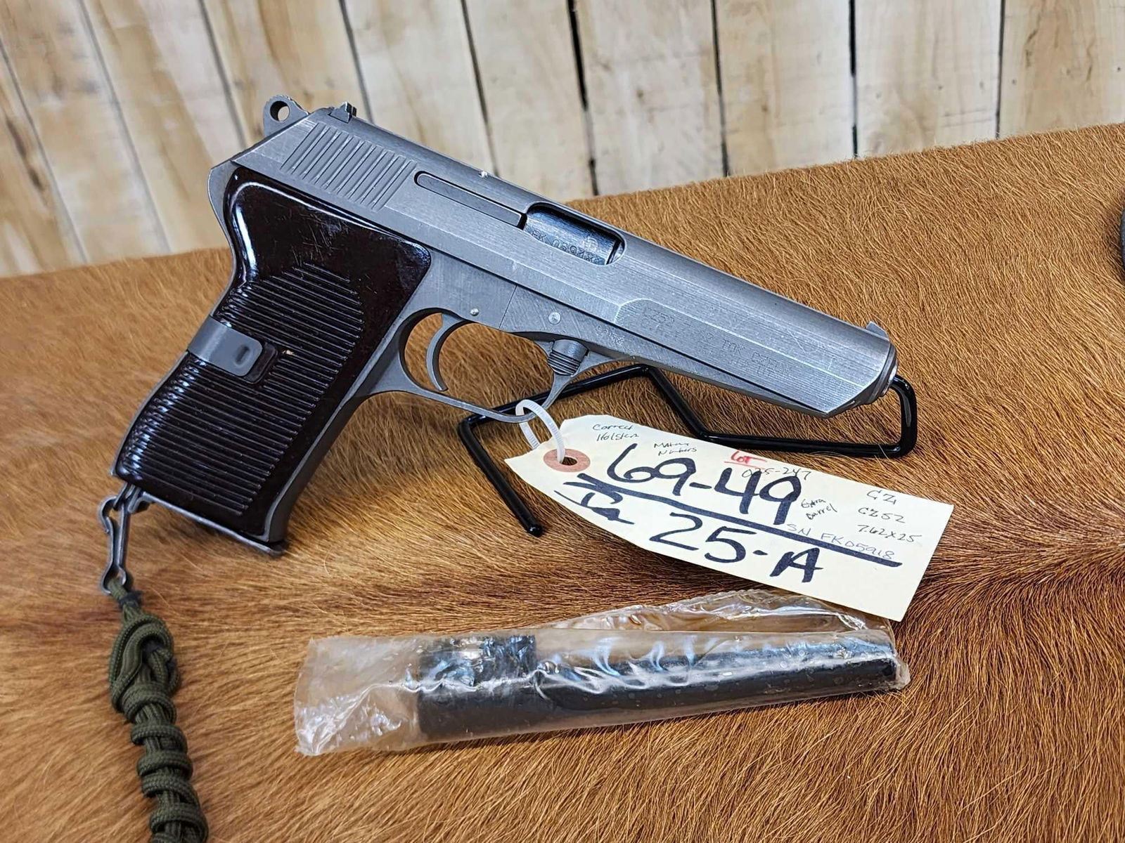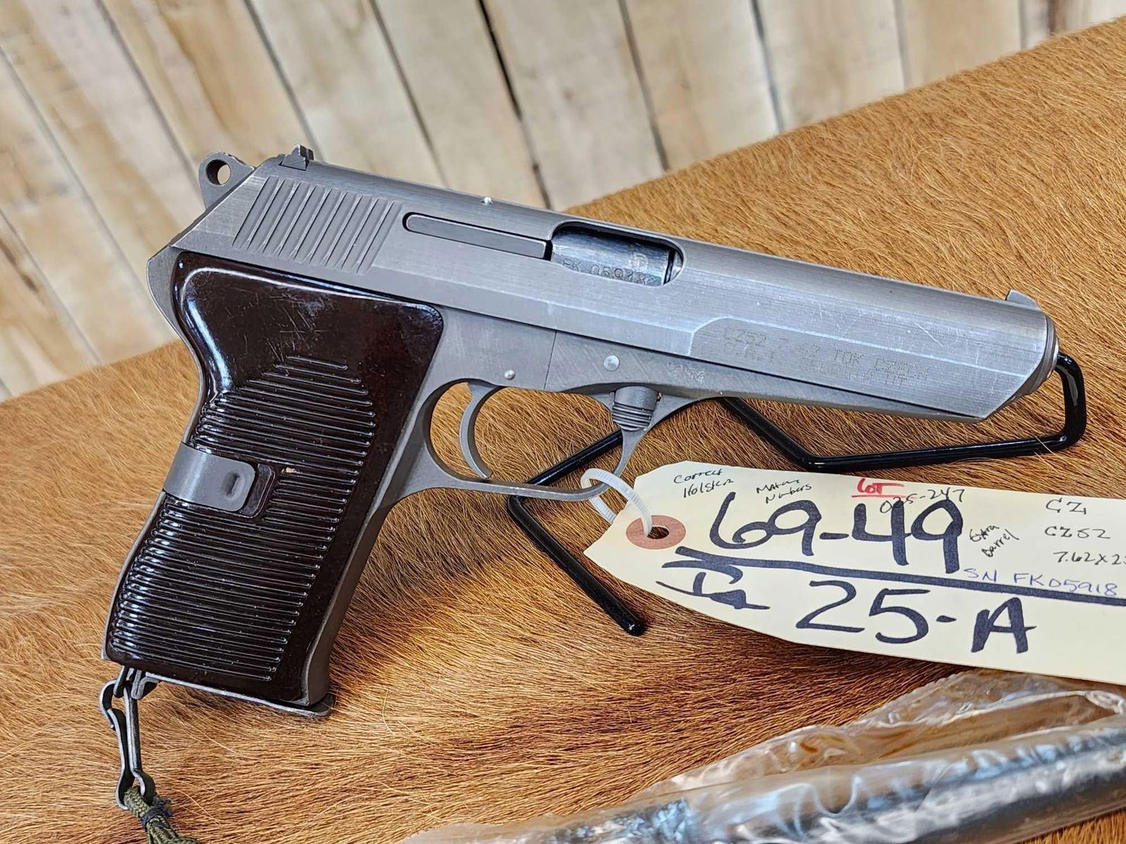 Lot 25A Vintage CZ52 7.62x25 Tokarev Semi Auto Pistol