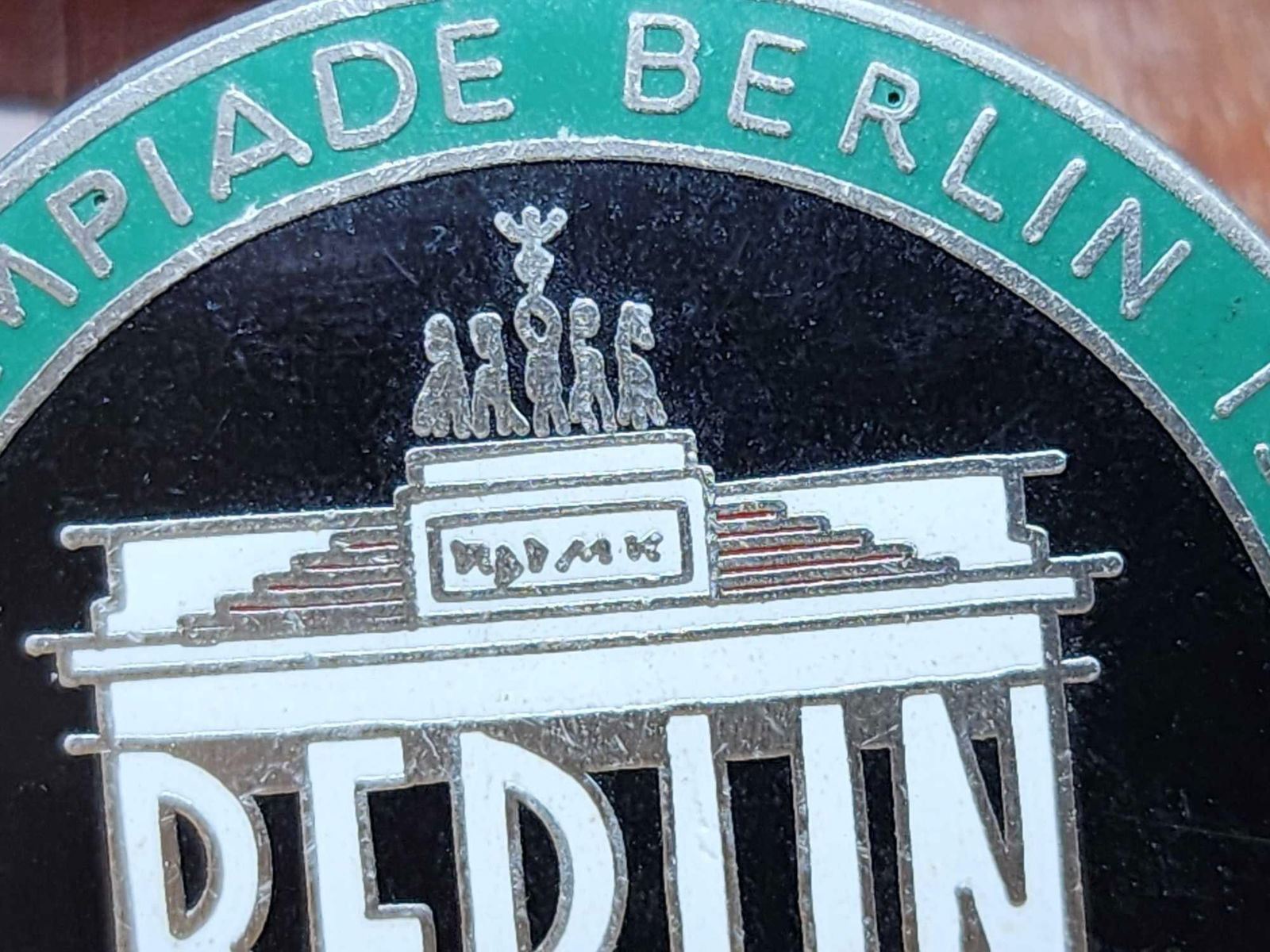 59.11 One of 5 German Olympic badges on this auction that have been in the families possession for over 50 years great condition makers mark on back front is enamel or porcelain finish