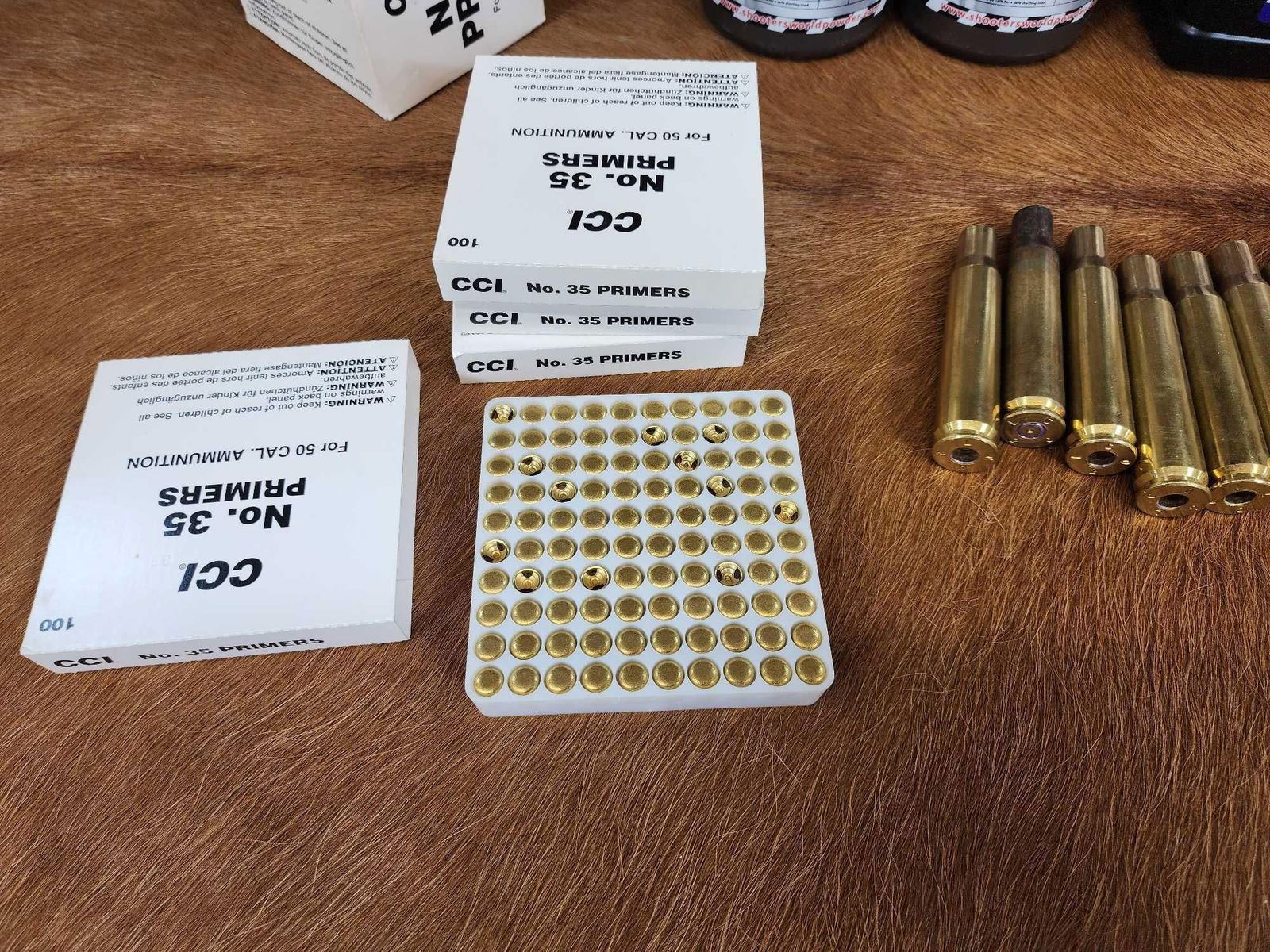 55.5 Includes 3 Unopened bottles of powder , 400 Primers, 19 pcs of brass NOTE: THIS LOT IS PICKUP OR DELIVERY ONLY we will NOT ship this via usps ,ups ,or FedEx We do have delivery drivers available if we can get you on their route should be inexpensive to deliver
