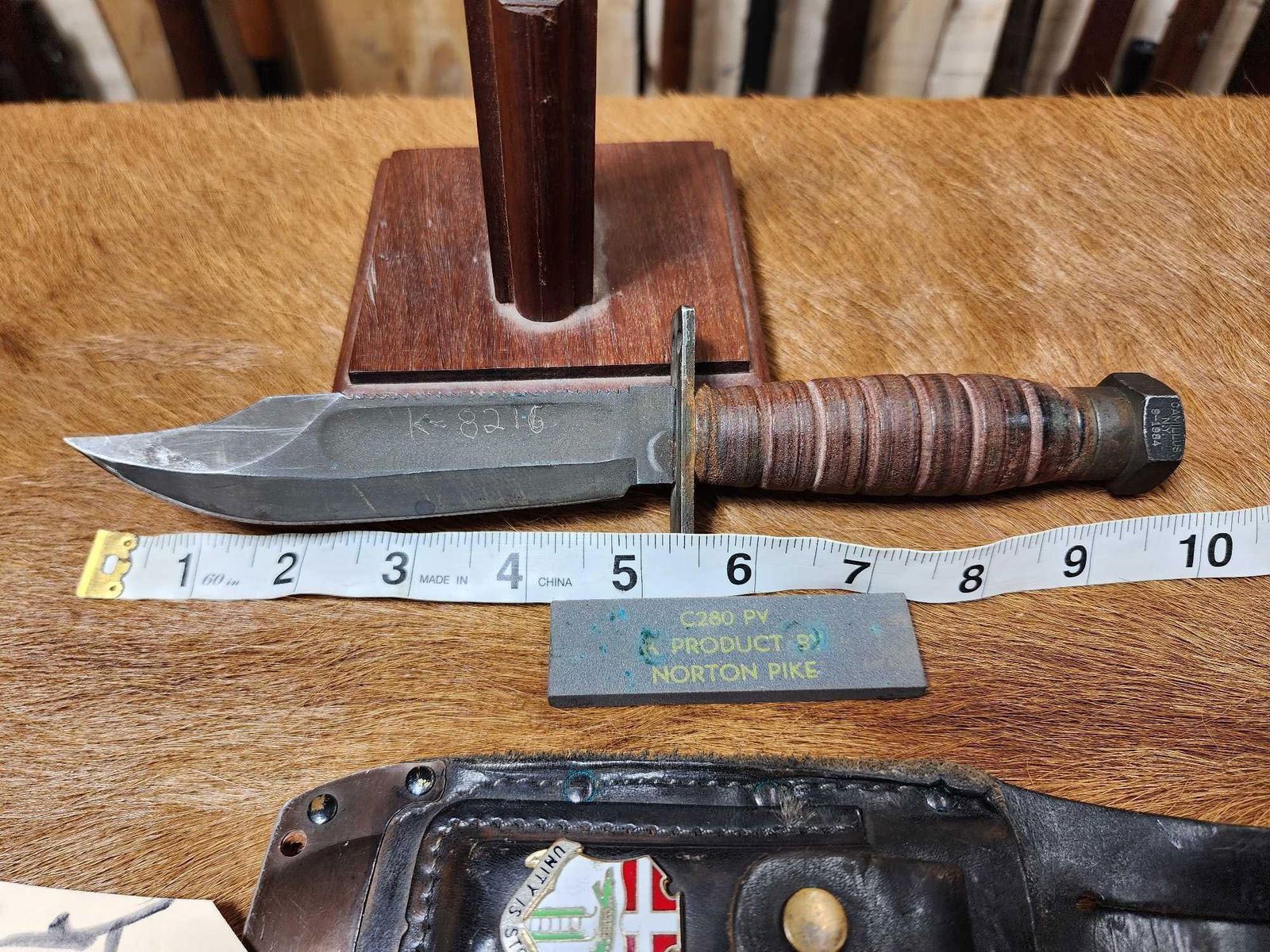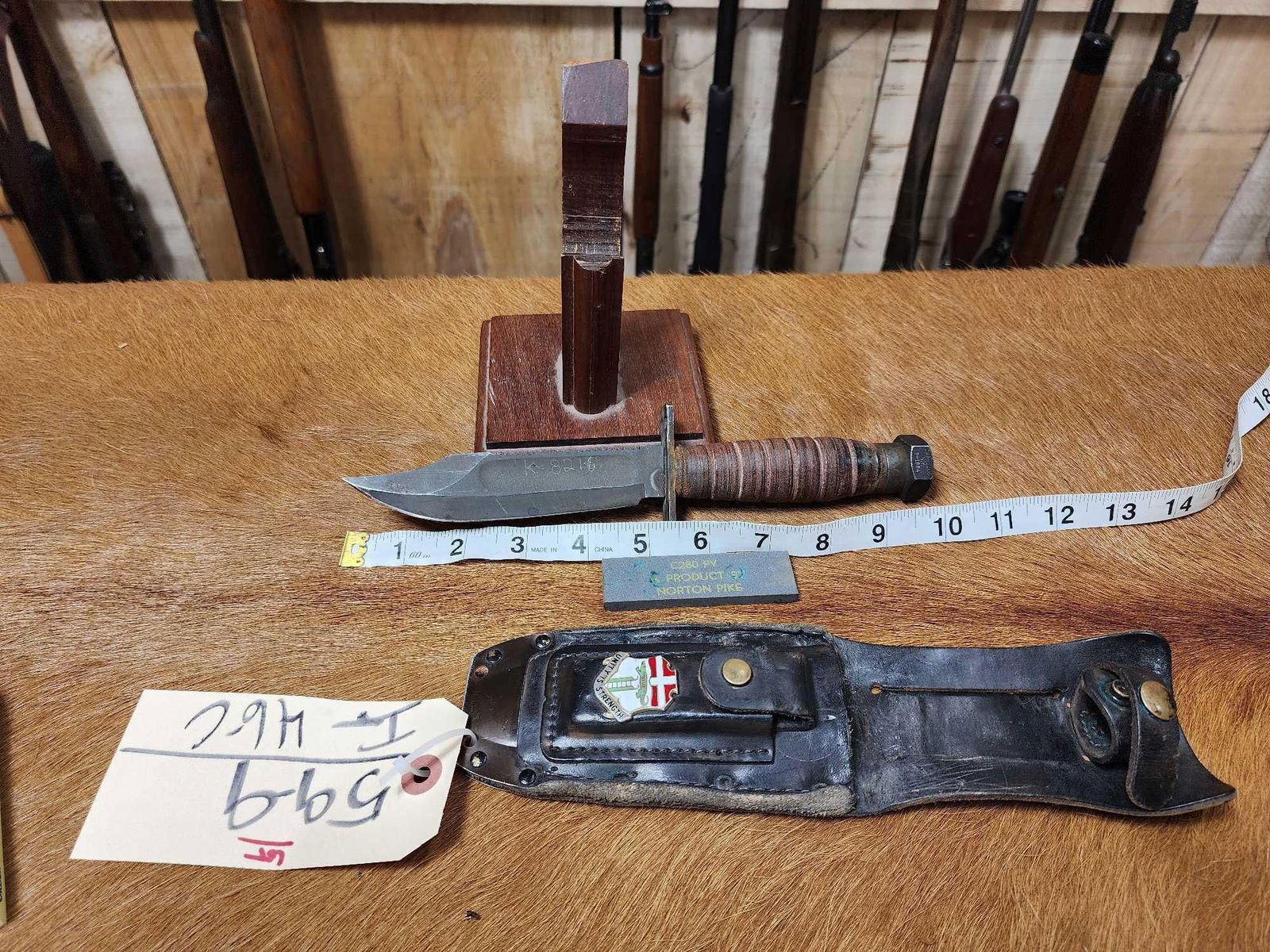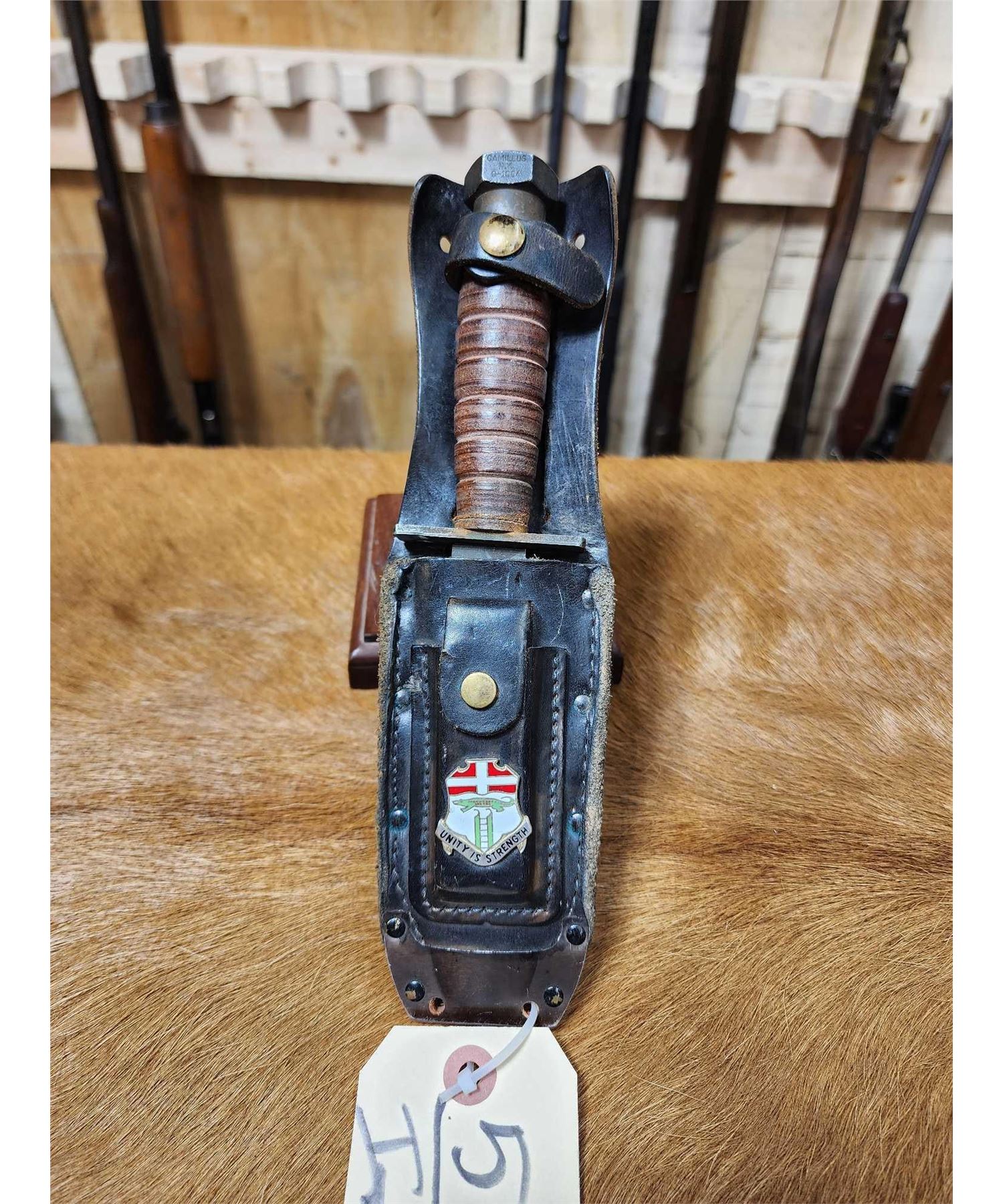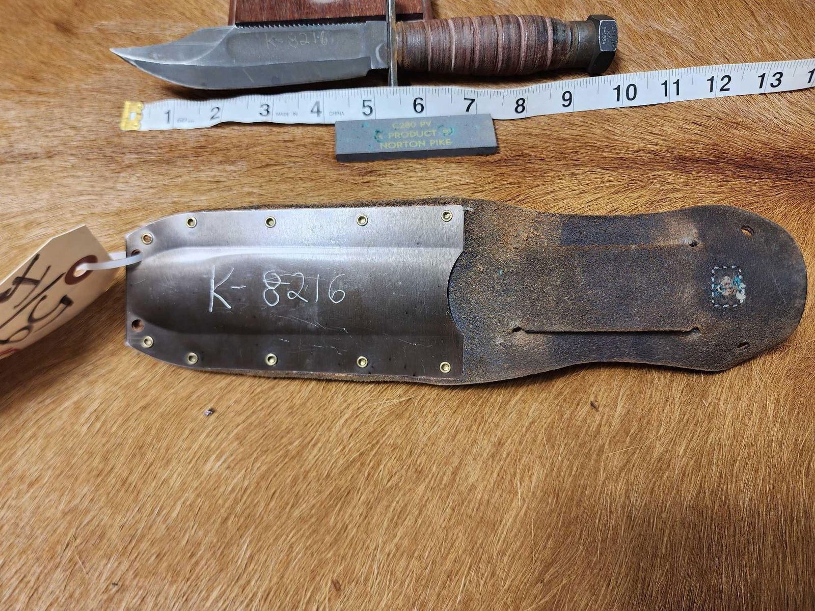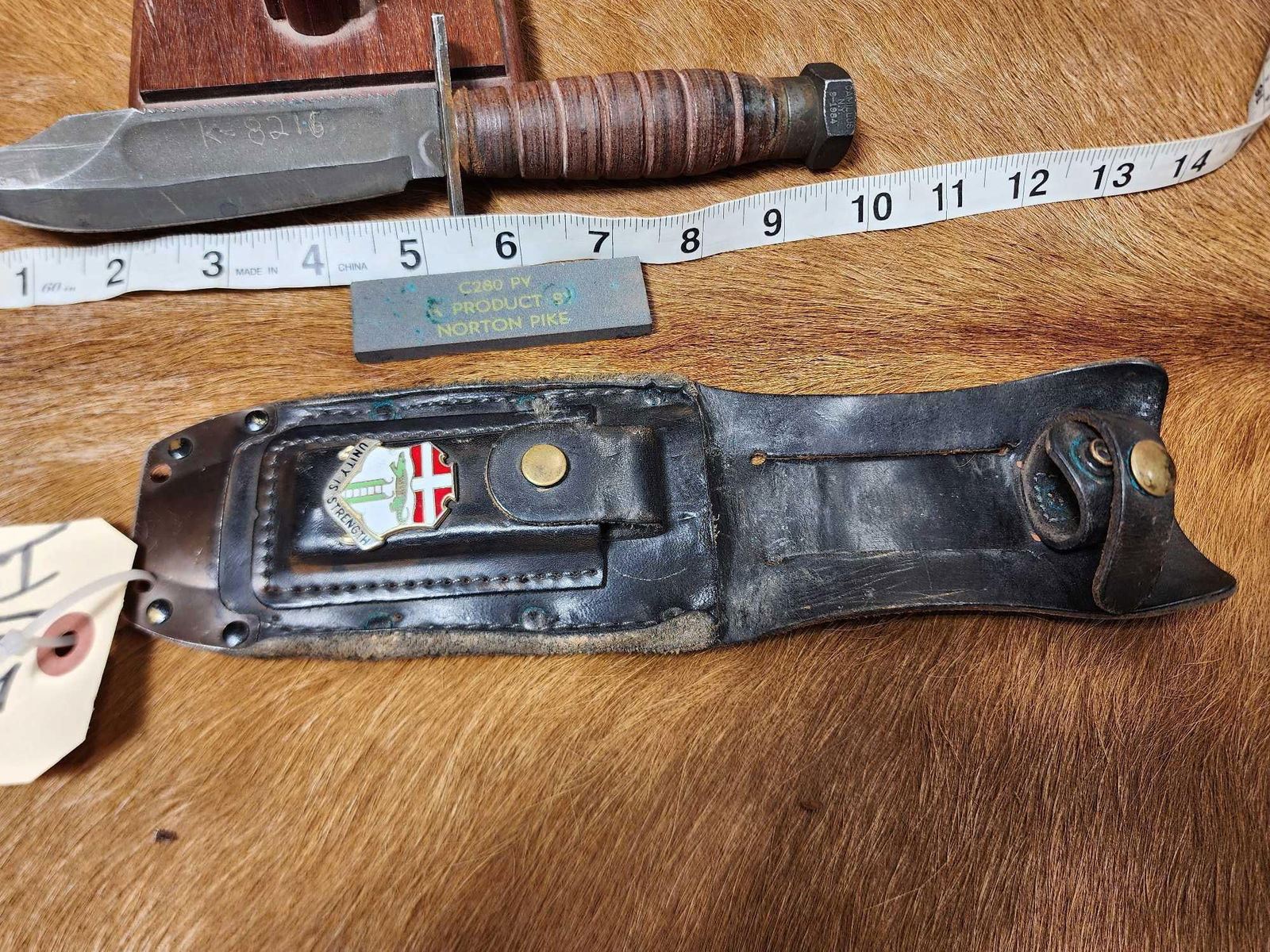 59.9 Knife scabbard have matching numbers scabbard displays 6th Infantry Regiment US Army Crest with sharpening stone