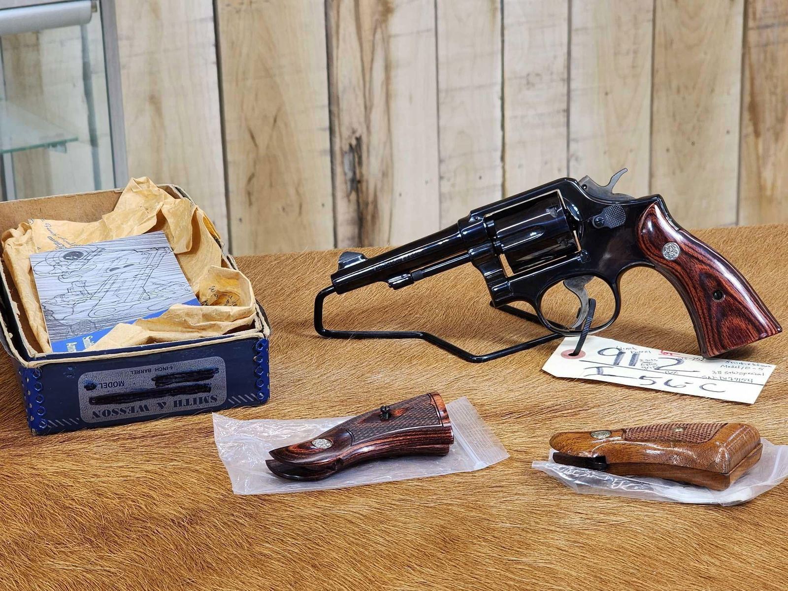 91.2 Great condition vintage gun 4" barrel Shiny bore good rifling has seen very little use locks up tight pretty finish with box 2 extra sets Of grips SN D179154