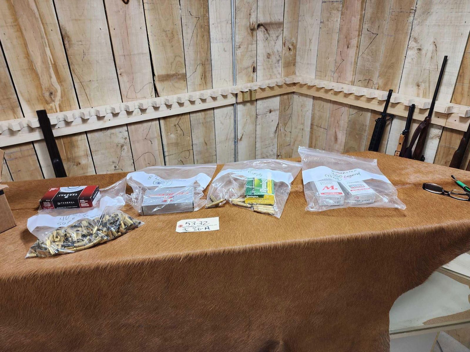 53.32 Includes 40 rounds Of 350 legend , 8 Rounds Of. 270 Win with 11 brass , 17 Rounds Of 8mm mauser , 50 rounds Of. 40 SW with 195 brass