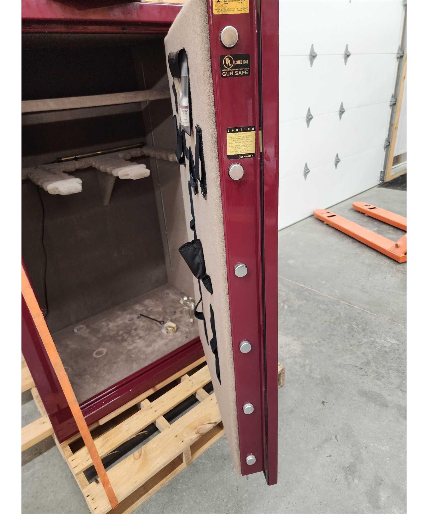 76.84 Holds 40 long guns with plenty of room for lots of hand guns accessories great condition with built-in dehumidifier bar comes with key combination This is local pickup or can be delivered for a feeNote : straps pallet not included they are just there for the safety of attendees productsOverall dimensions about 60.5" tall x 28" deep x 39" wide