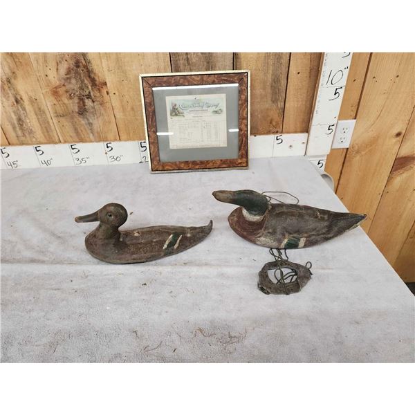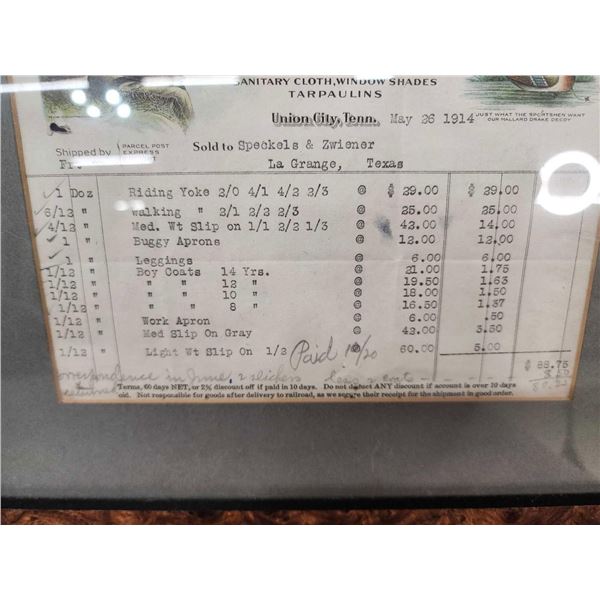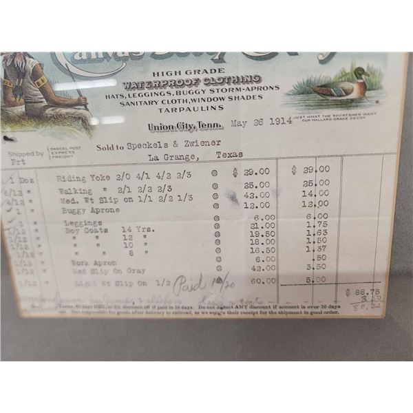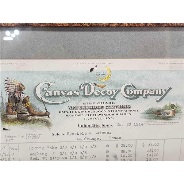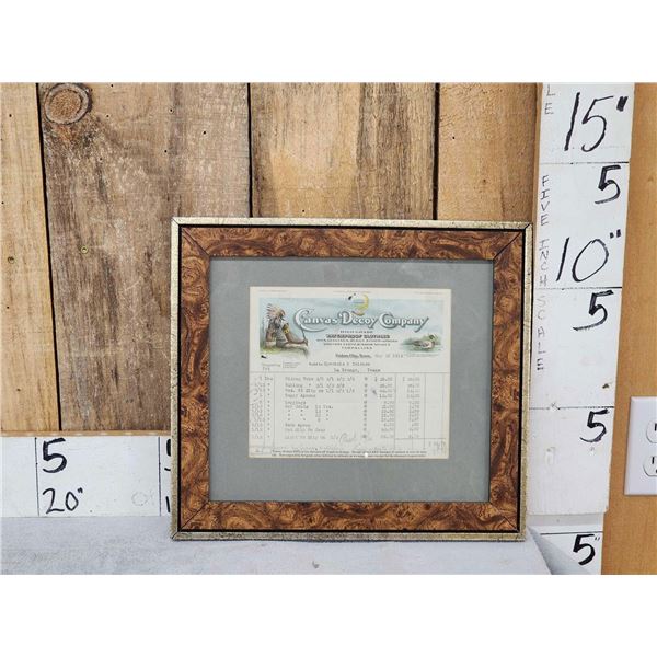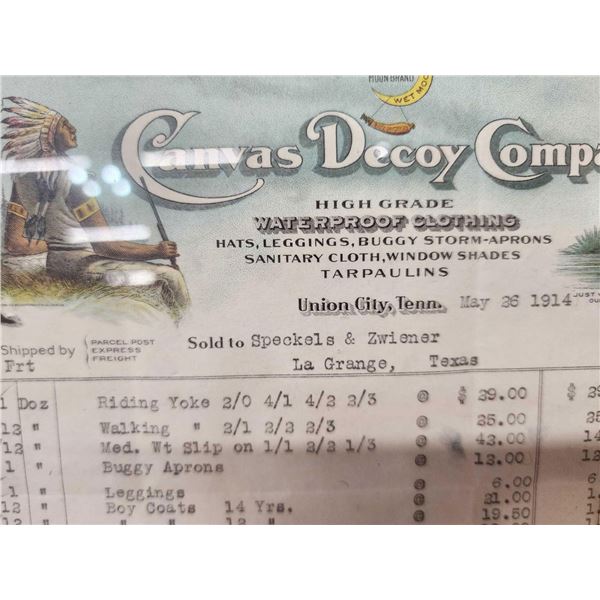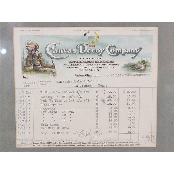 73.28 Includes 2 Canvas decoys a shipping receipt from The Canvas Decoy Company Union City Tennessee dated 1914 solt to Speckels Zwiener La Geange Texas