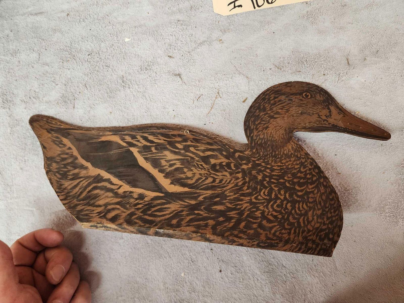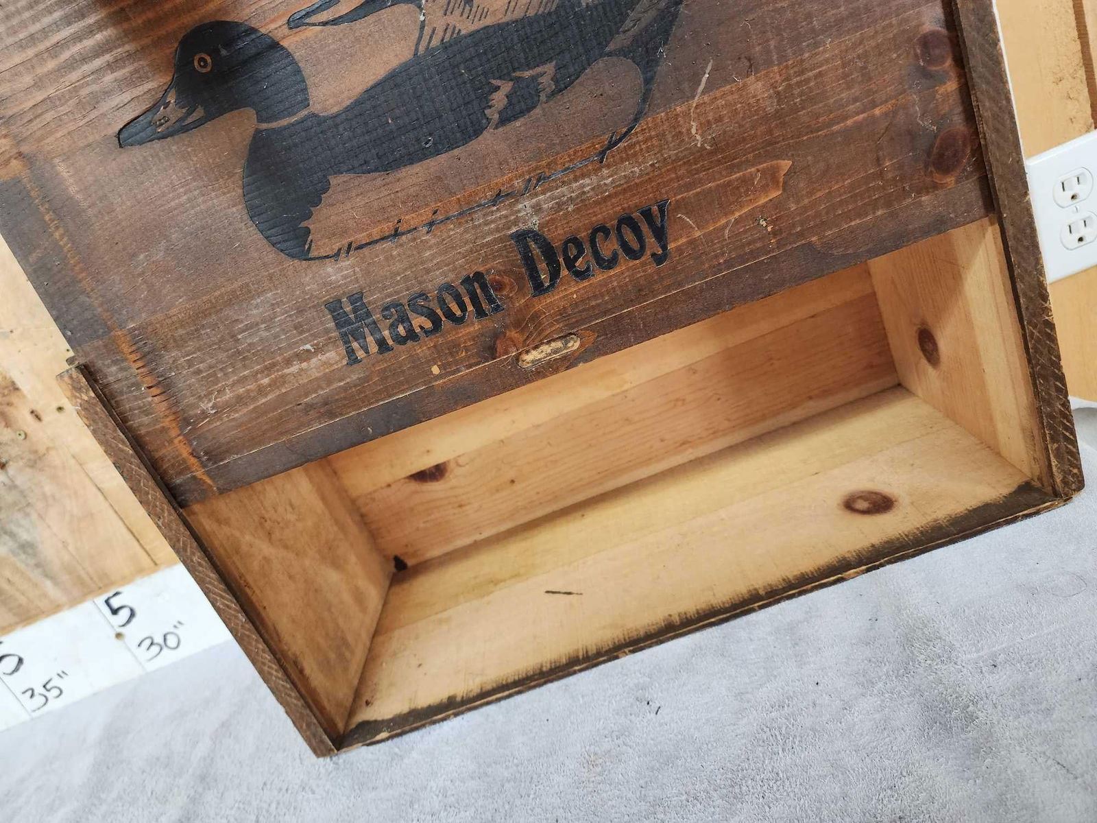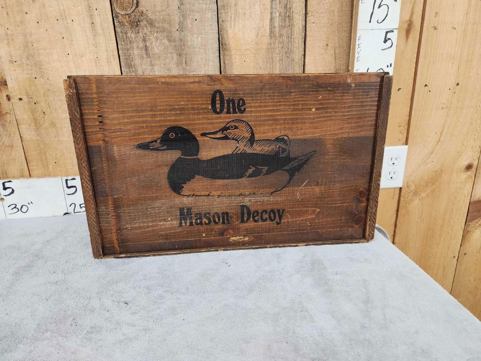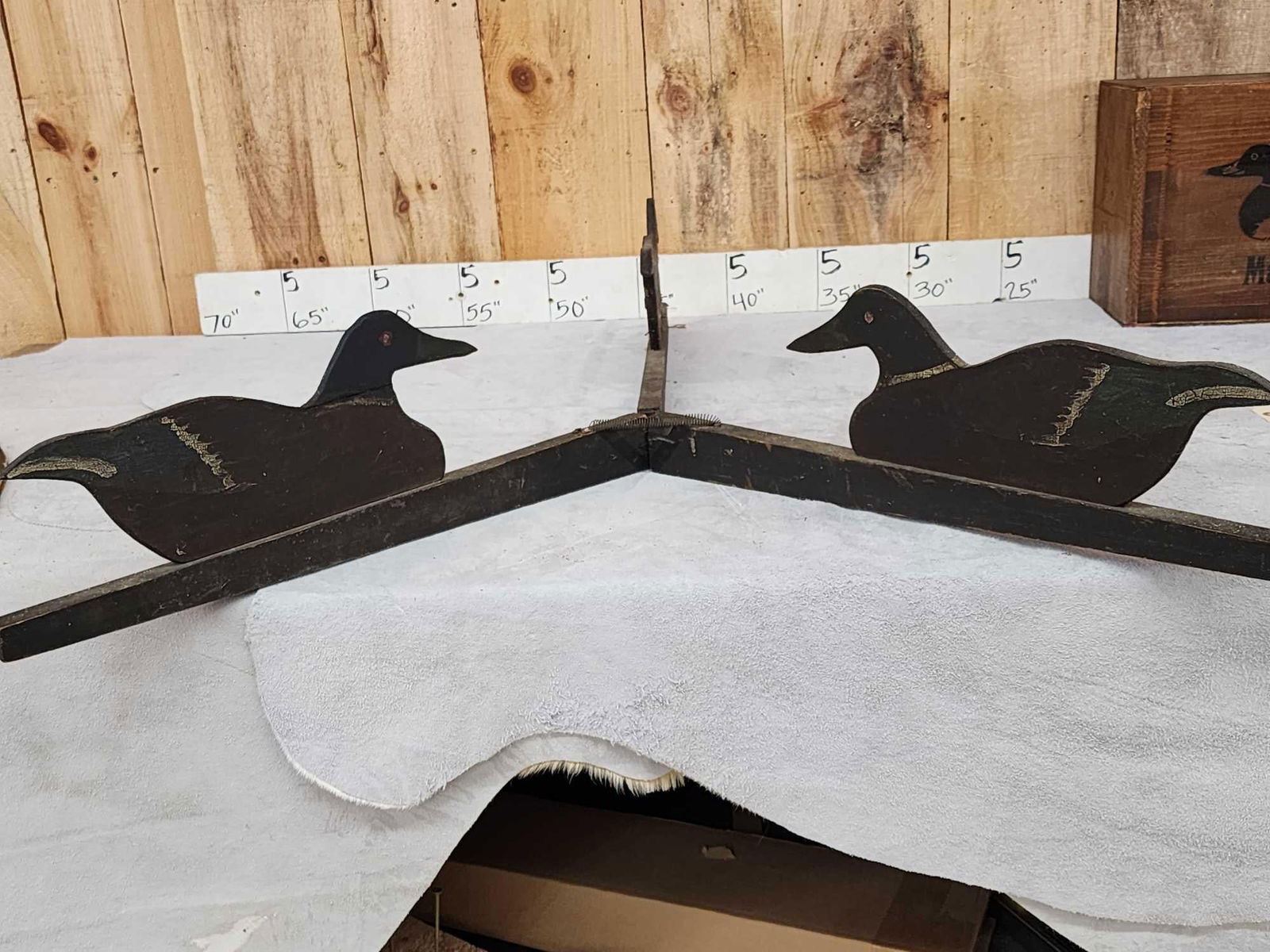 73.32 Includes 2 Johnson's folding fiber board folding decoys , Folk art triple folding decoy Mason Decoy wooden box