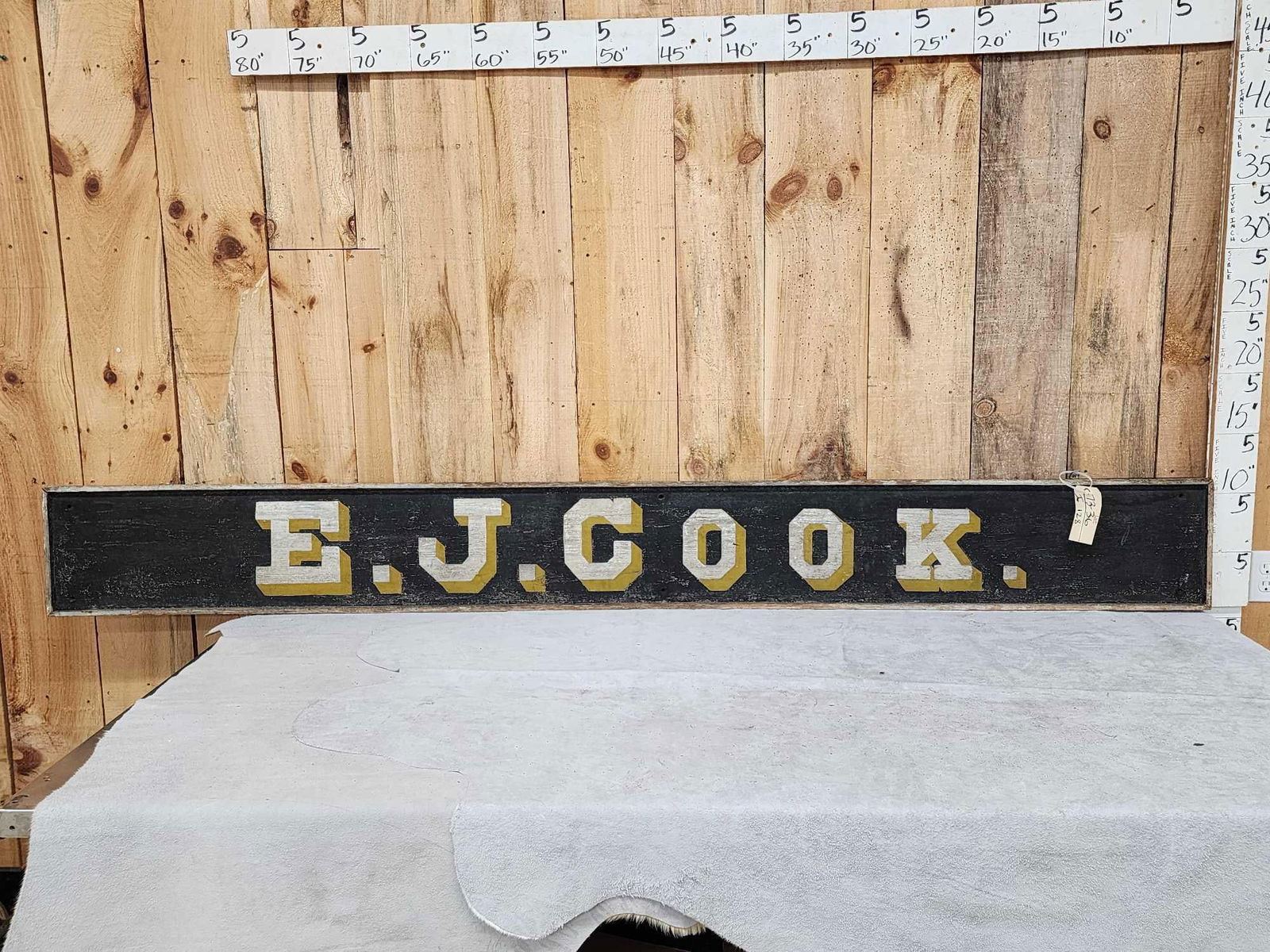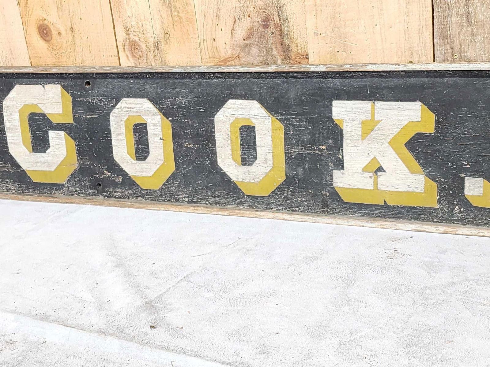 Lot 128 Vintage 97" E.J. Cook Wooden Advertising Sign