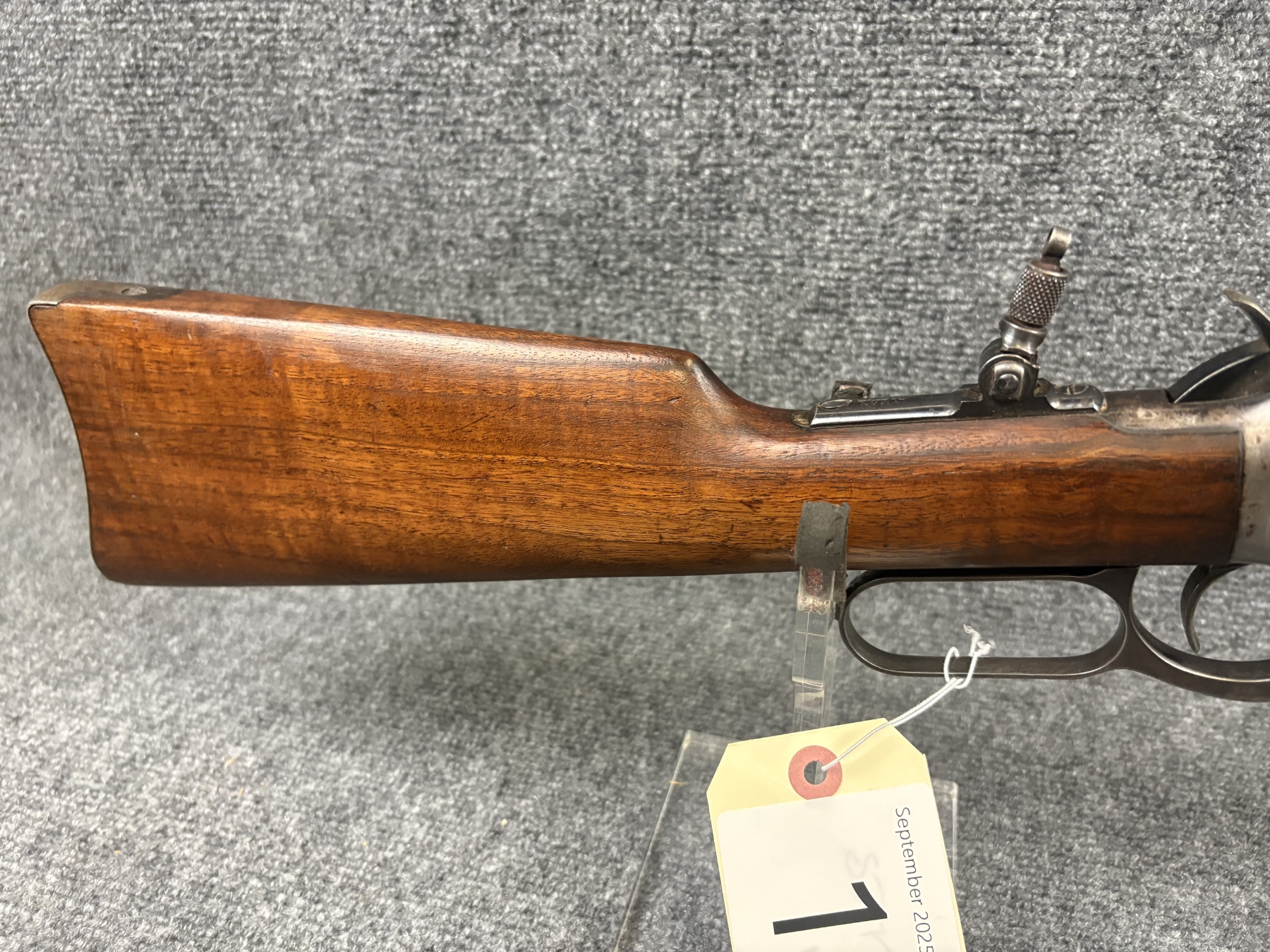 Expected carry wear on the receiver. No rust. Some very shallow handling marks. Lyman Middlefield tang sight. Appears front sight has been replace. Made 1923