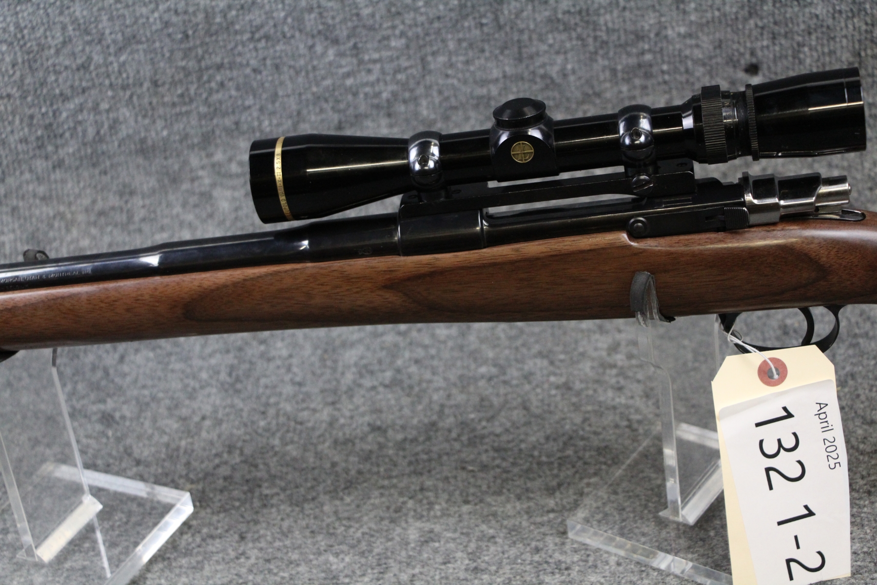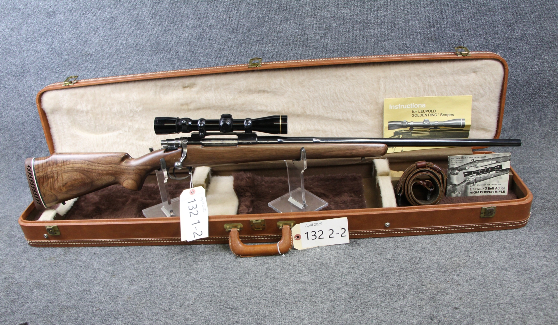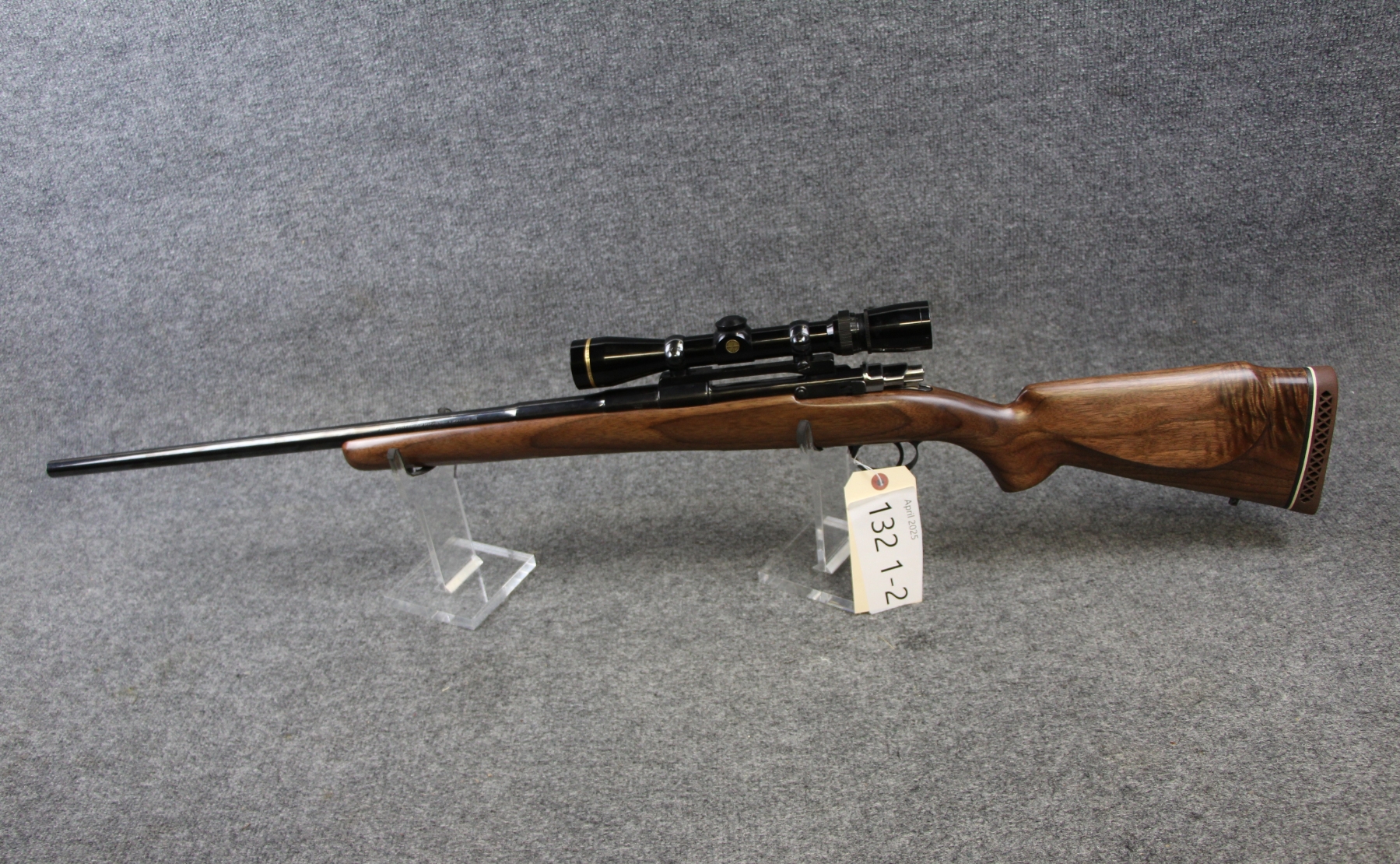 Condition excellent. Not a mark on this gun. Barrel length 24". Cal. 300 Win. Mag. Recoil pad, Leupold VariX-3 2.5-8x scope. Comes with custom case and sling. Made in 1972.