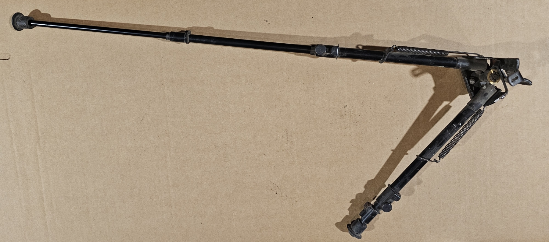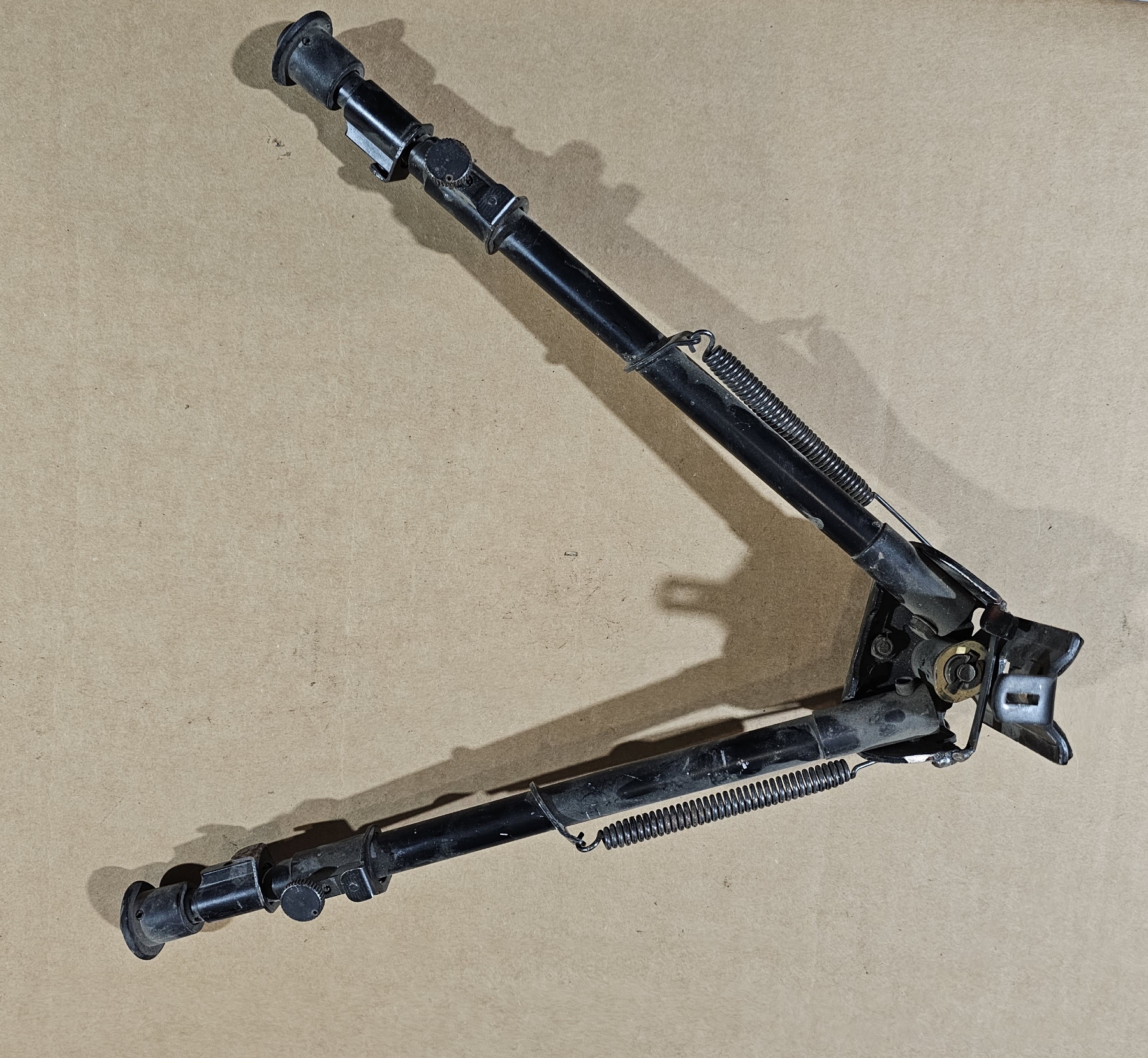 missing the clip that attaches to the sling swivel. legs extend to about 29''. 12'' when closed.