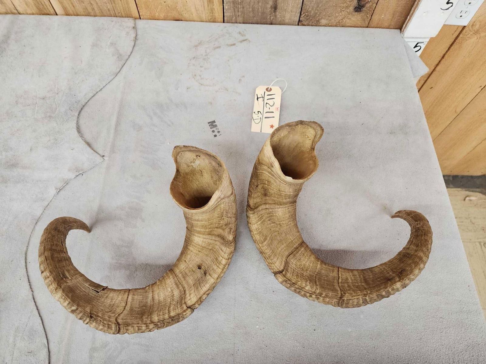 112.11 Awesome color great for carving , crafts, or decor Right horn length about 32 7/8" 13" base Left 32 4/8" with a 12 7/8" base