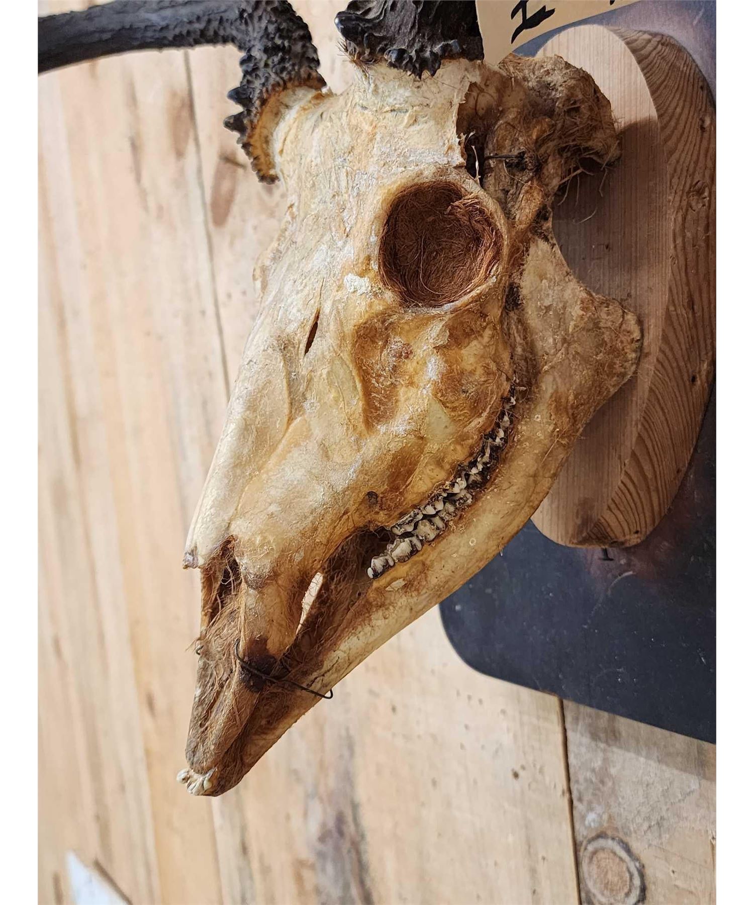 32.15 Unusual piece to find 159" gross with correct patina for its age on full skull Salvaged from an antique mount this is the way Taxidermy was done back then using the full skull. Comes with original glass eyes square nails saved back from the old mount great piece for the antique Taxidermy collector