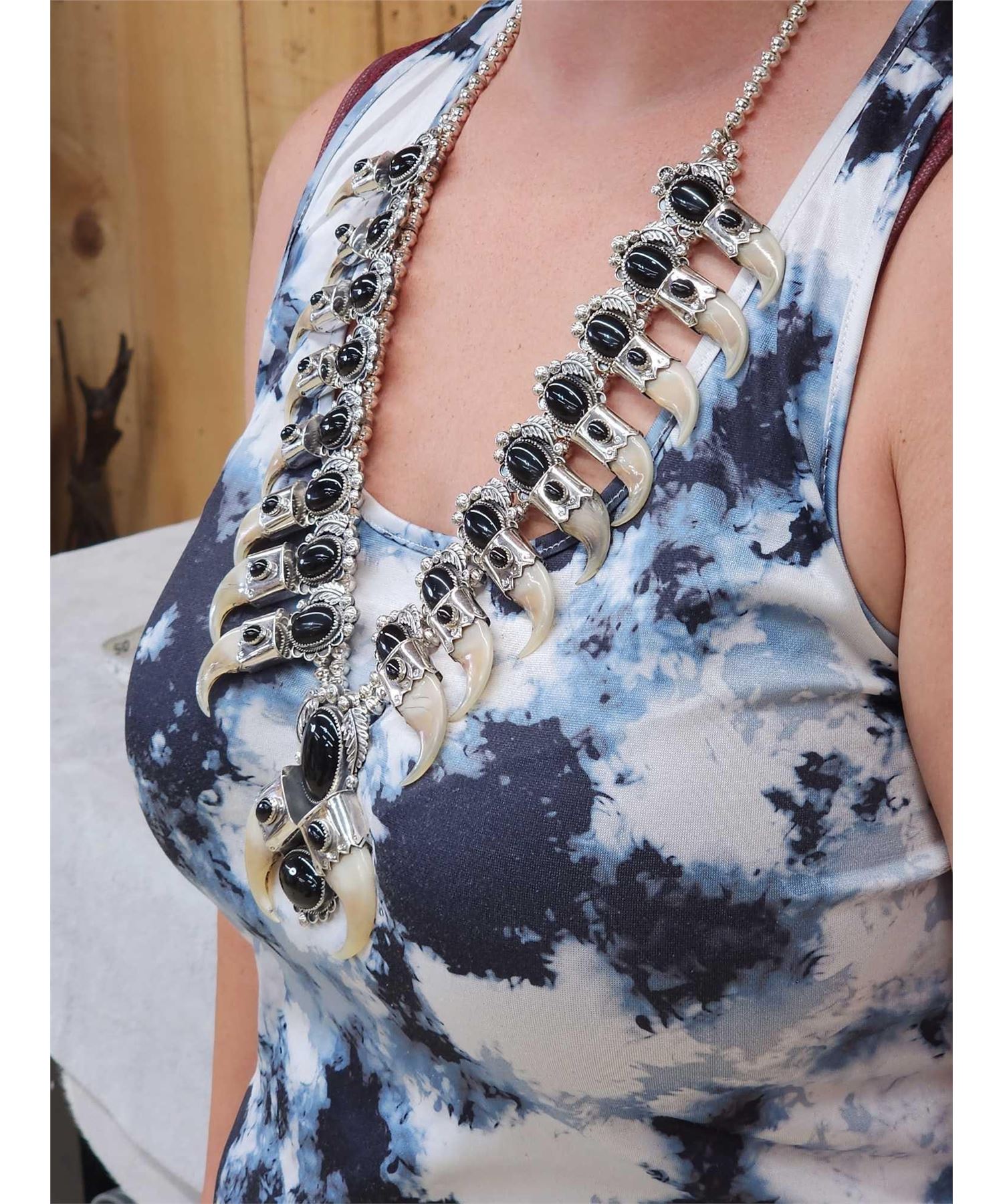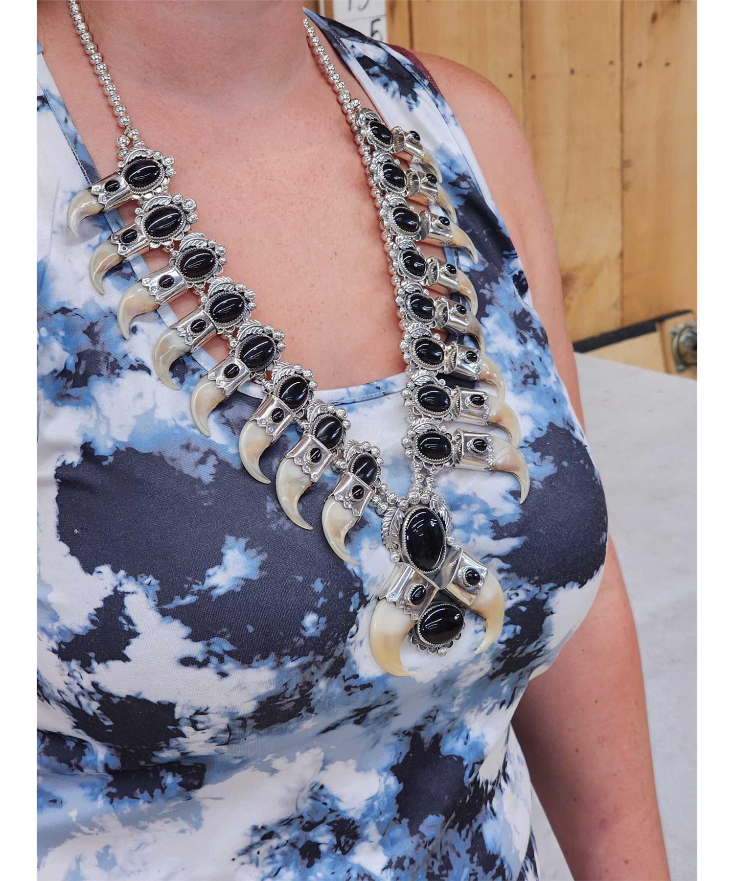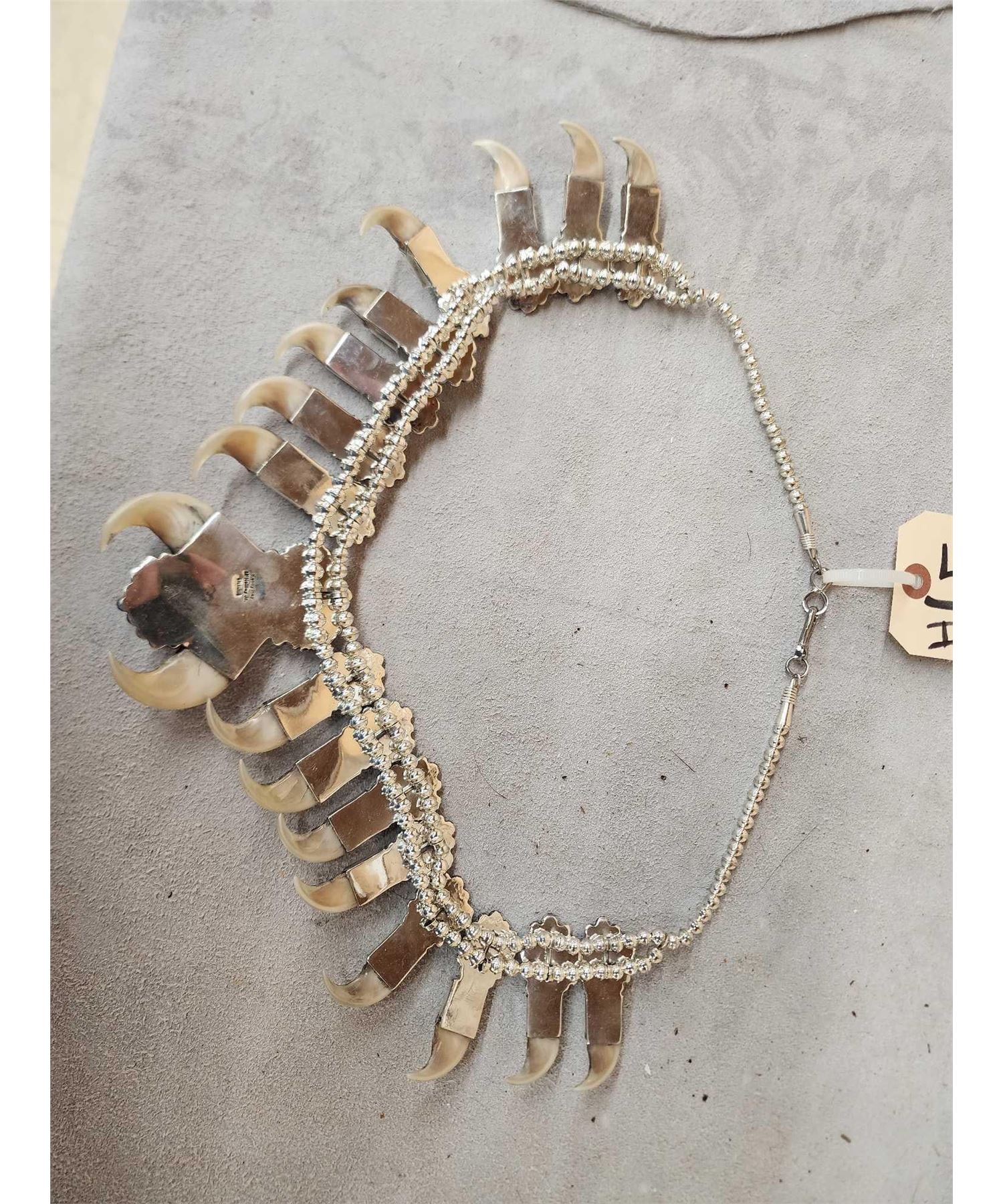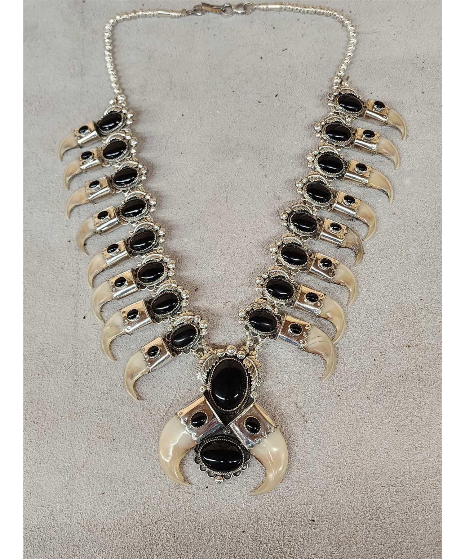 Lot 43C Spectacular Navajo Sterling Silver Squash Blossom Mountain Lion Claw Necklace