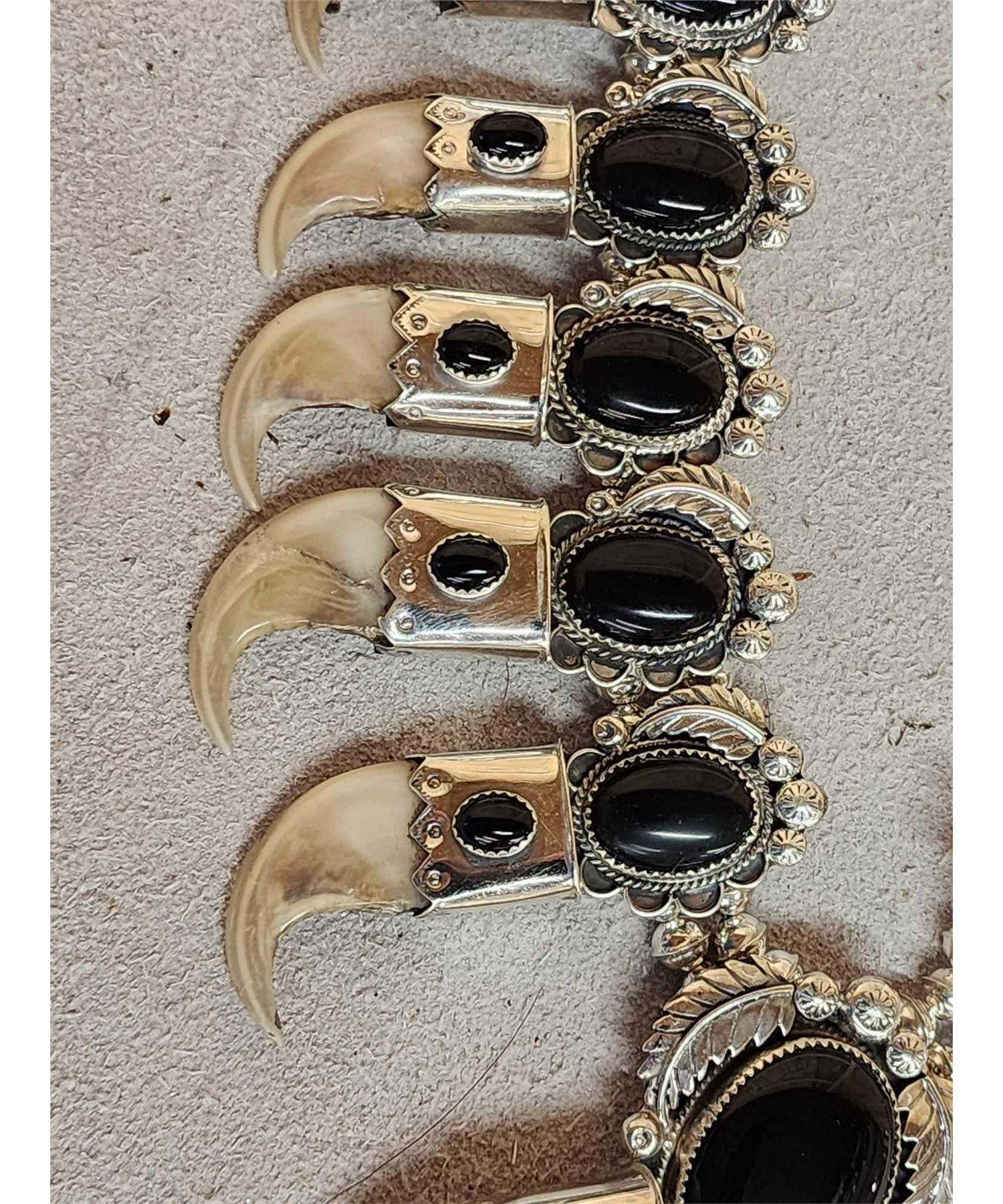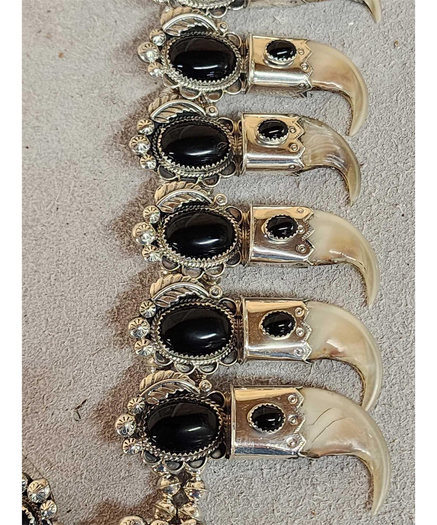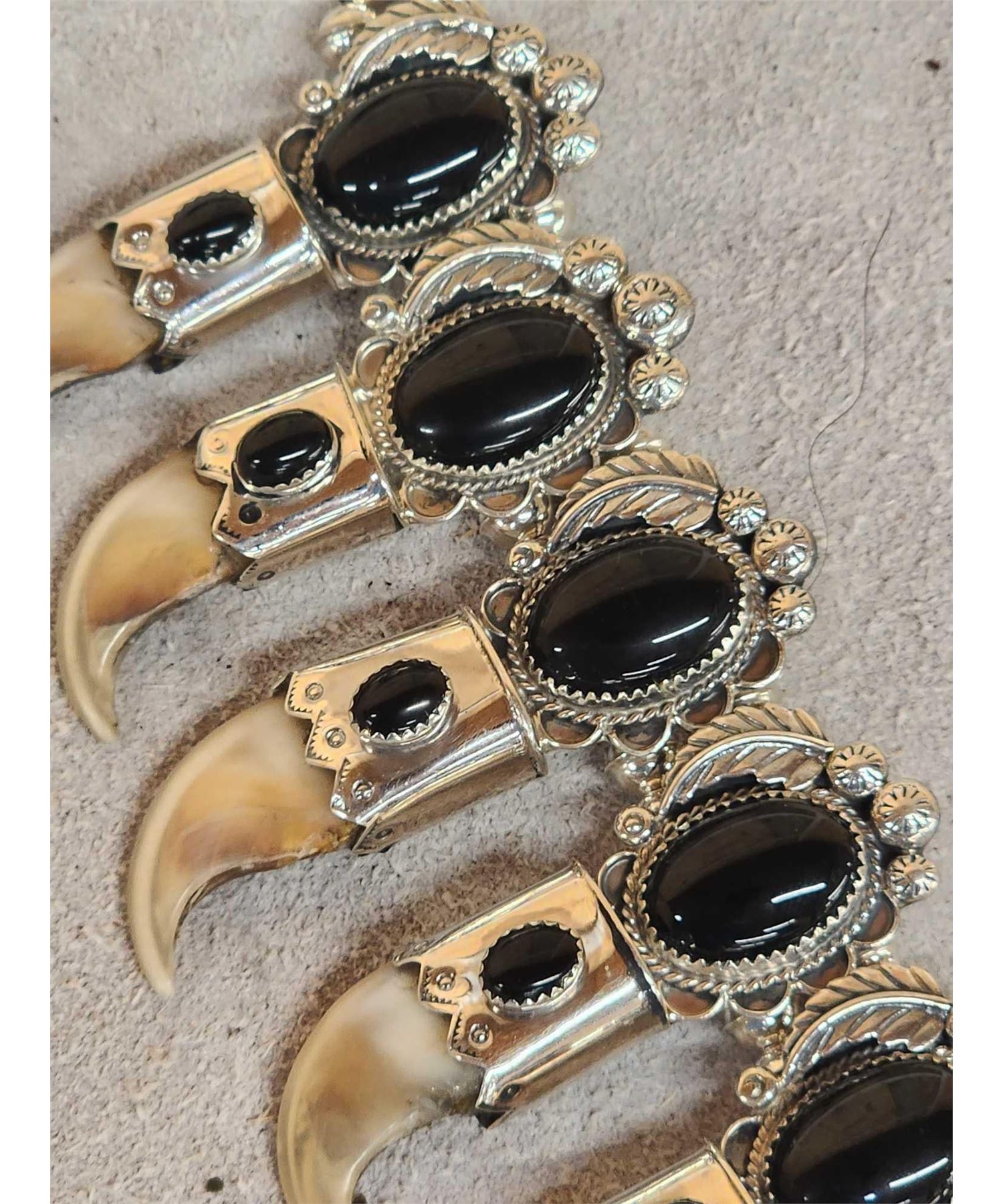 45.31 Finely tooled sterling silver with 18 authentic Mountain Lion Cougar claws decorated accented with Black Onyx stones polished to a high sheen signed by the famous artist /Silver Smith Kenny Ray McNeilly Jr