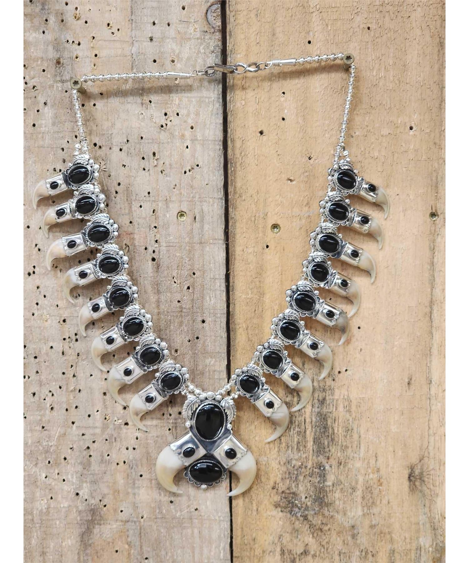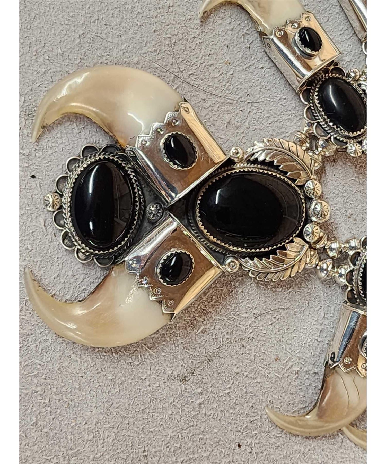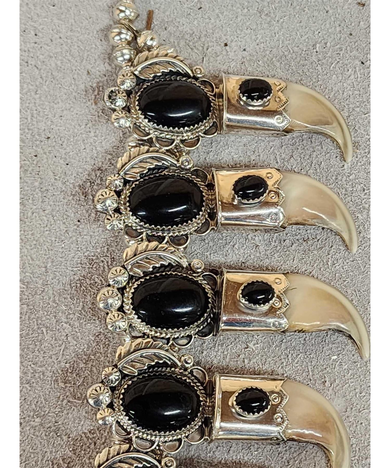 45.31 Finely tooled sterling silver with 18 authentic Mountain Lion Cougar claws decorated accented with Black Onyx stones polished to a high sheen signed by the famous artist /Silver Smith Kenny Ray McNeilly Jr