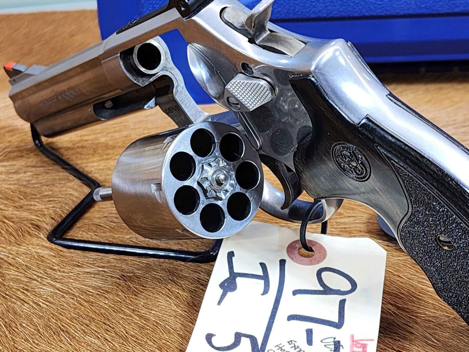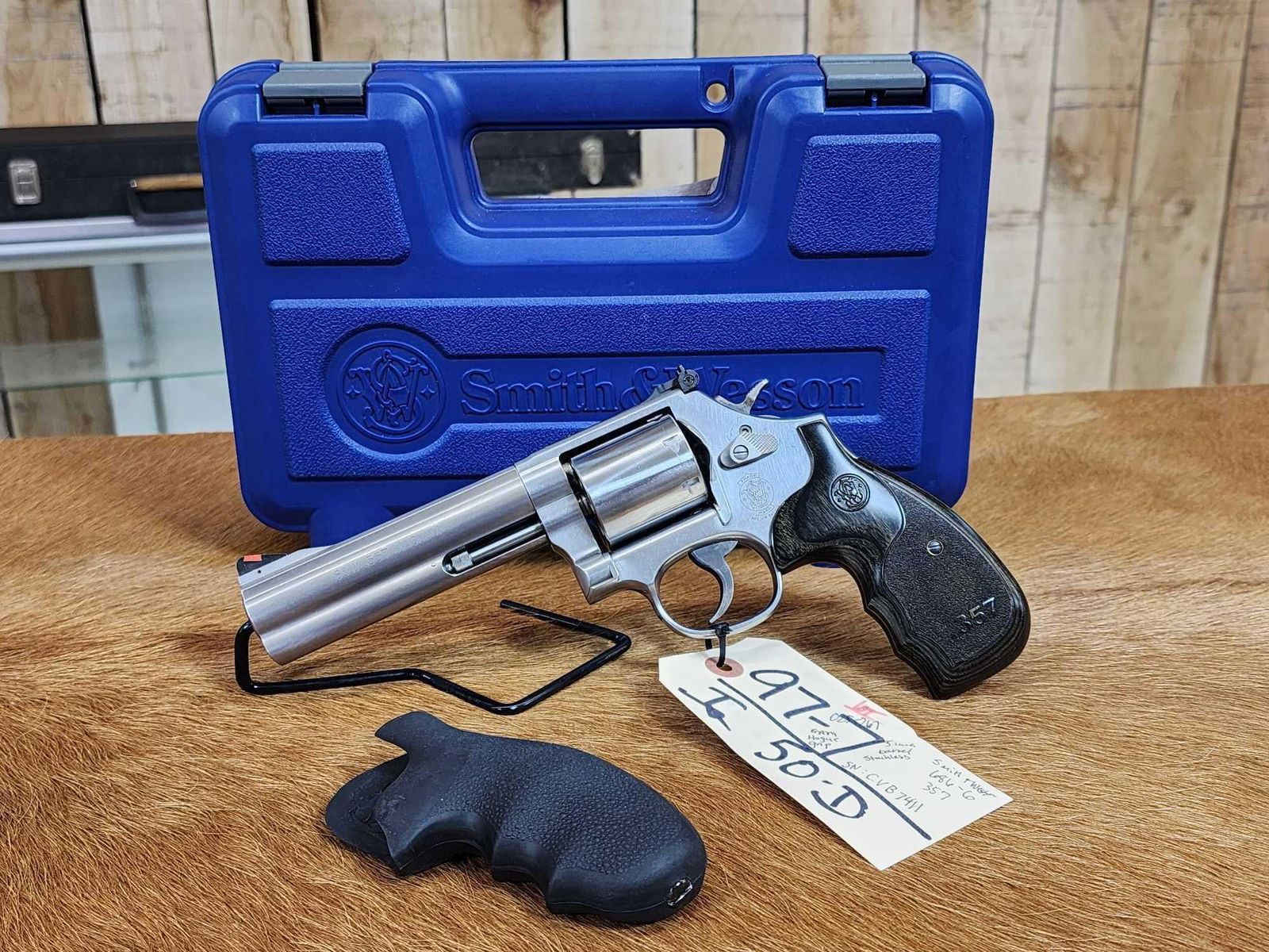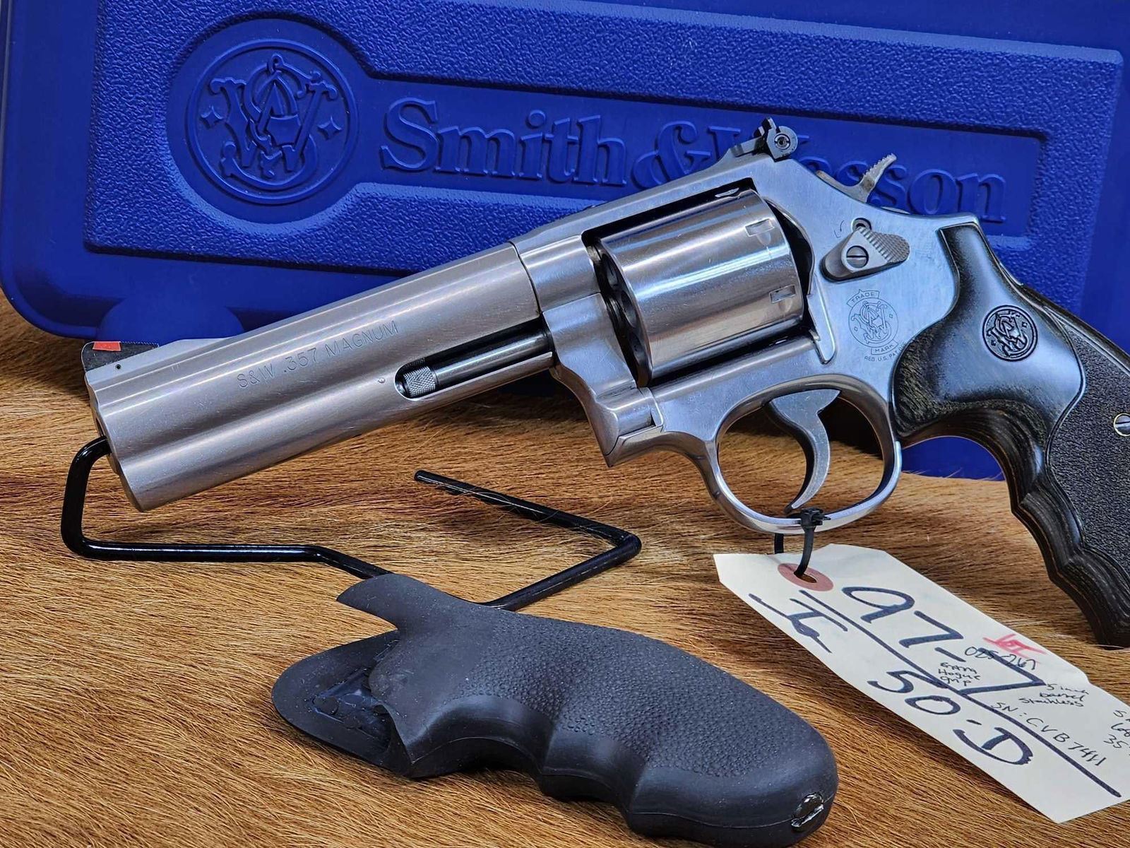 97.7 Nice gun Deluxe model with non fluted 7 shot cylinder 5" barrel Shiny bore good rifling with extra Hogue grips hard case SN CVB7411