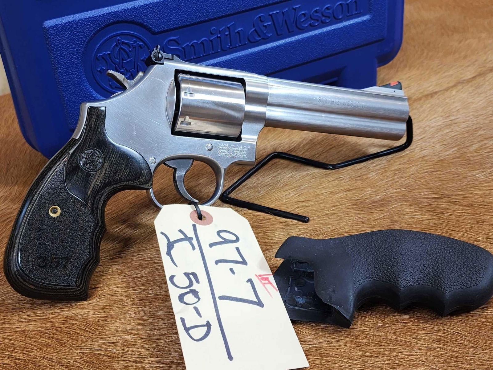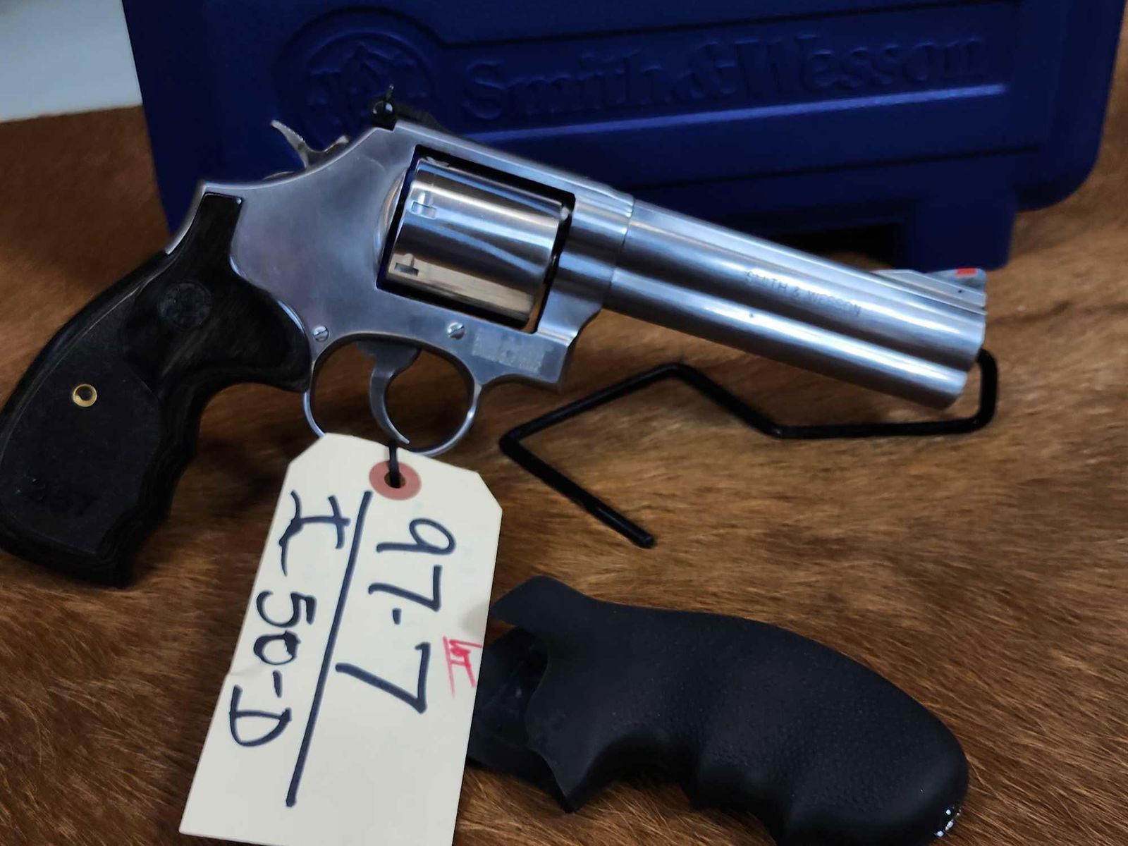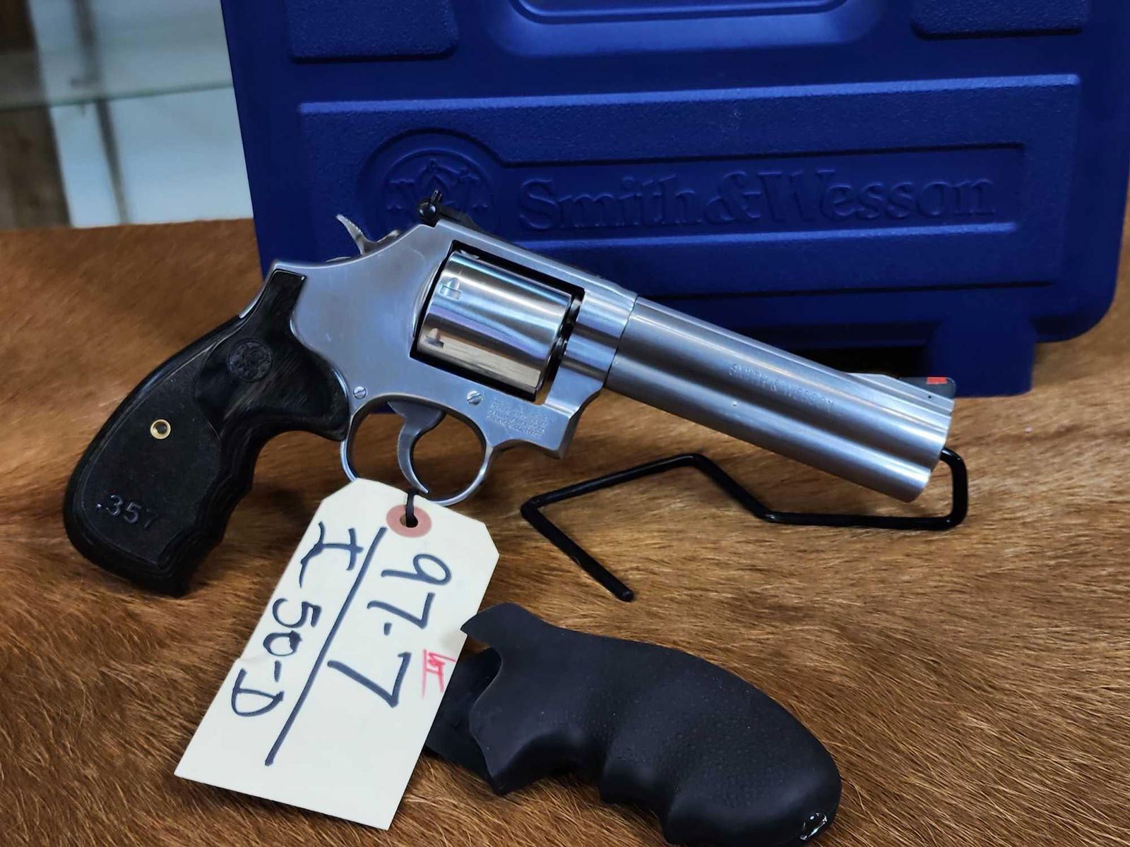 97.7 Nice gun Deluxe model with non fluted 7 shot cylinder 5" barrel Shiny bore good rifling with extra Hogue grips hard case SN CVB7411