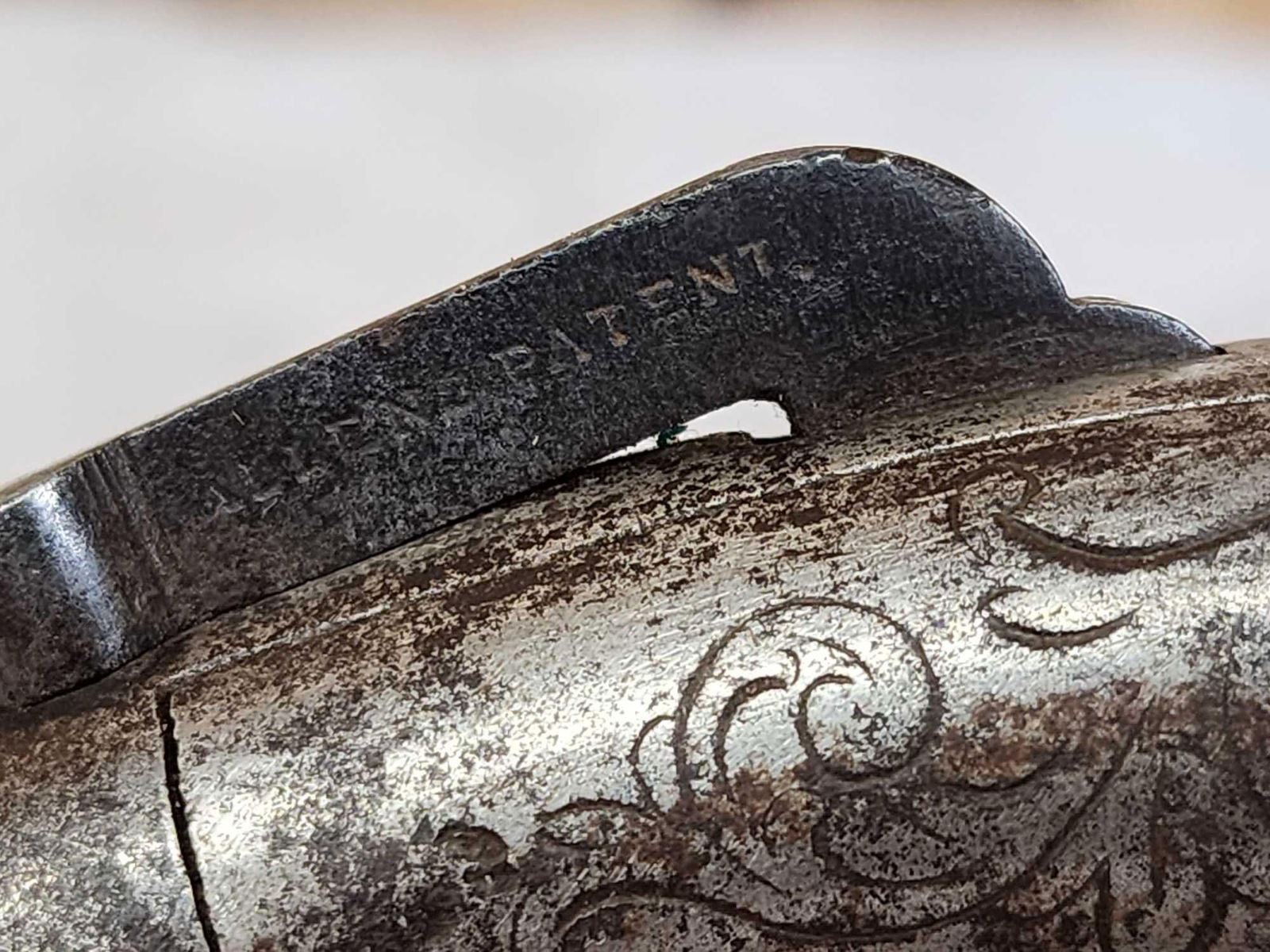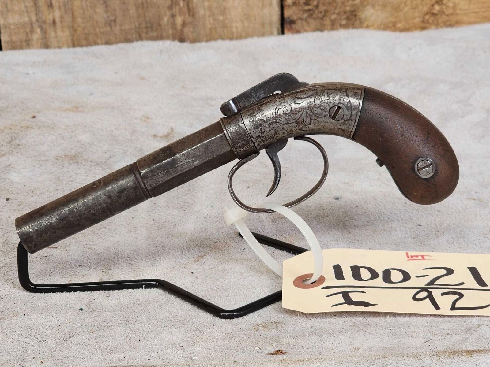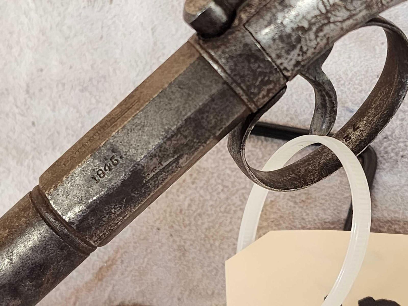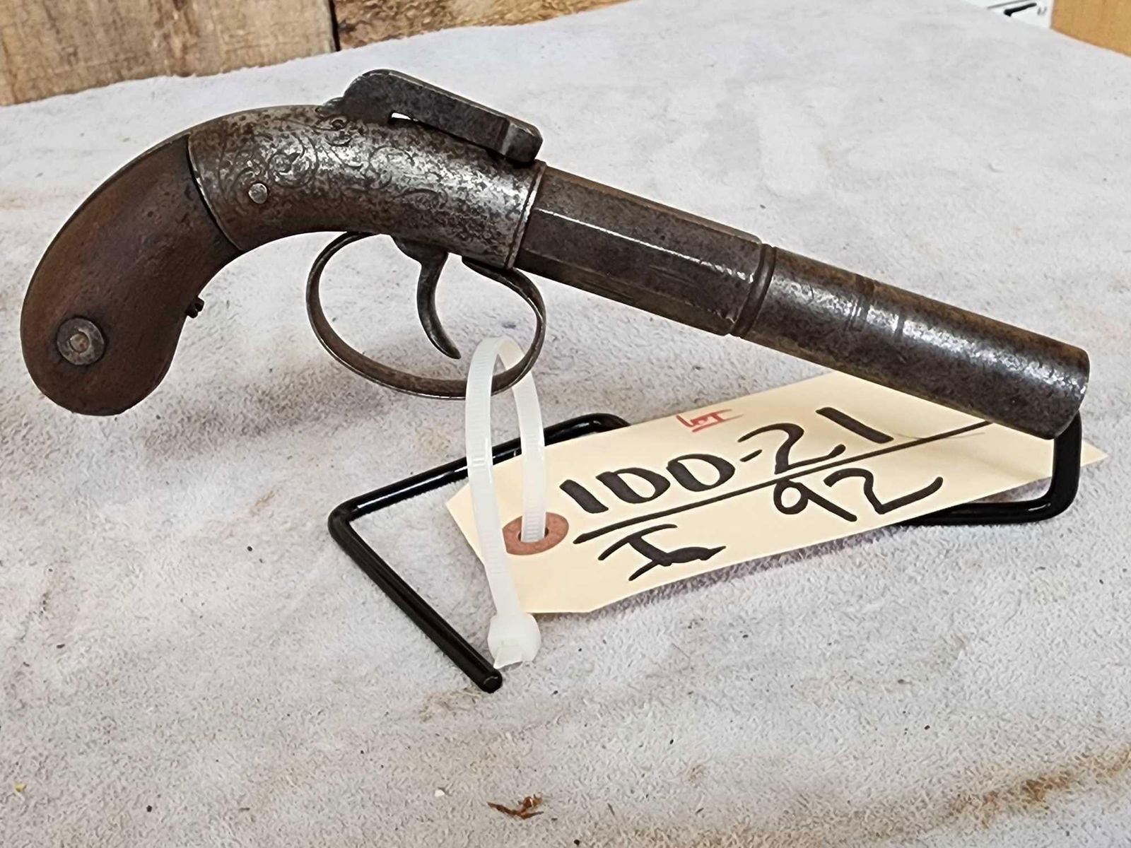 100.21 Half round half octagon barrel double action flat top hammer engraved dated 1845 probably 36 cal