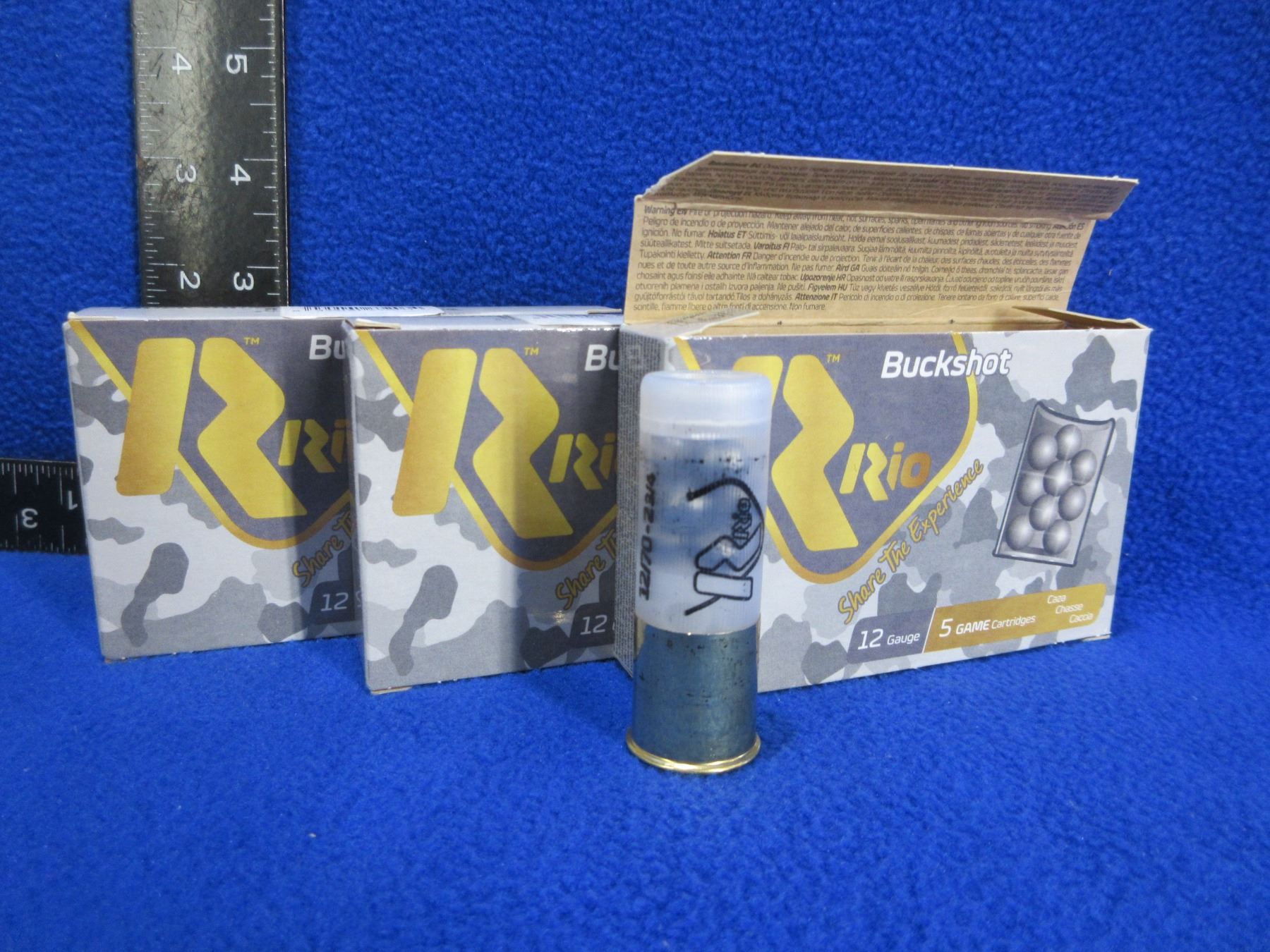 12 Ga. 2 3/4" 00 Buck Rio Shotshells (Pick Up or Ship by UPS Only) - 3 Boxes of 5